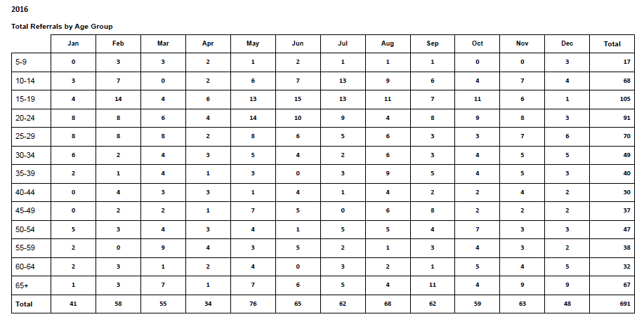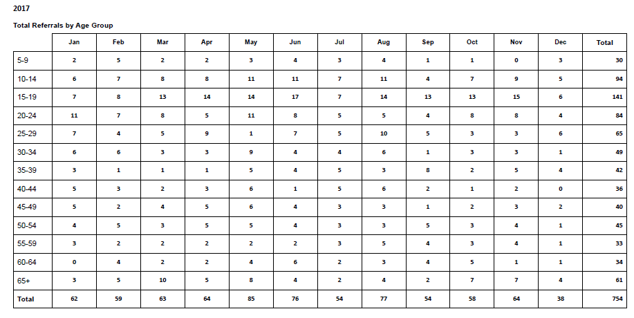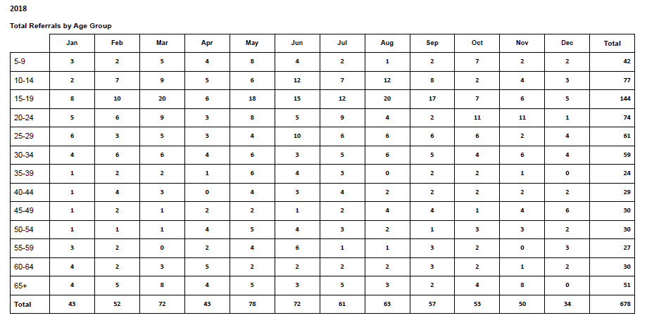 Appendix 2 (attached) for number of total new entries/cases per month, by age group (five-year