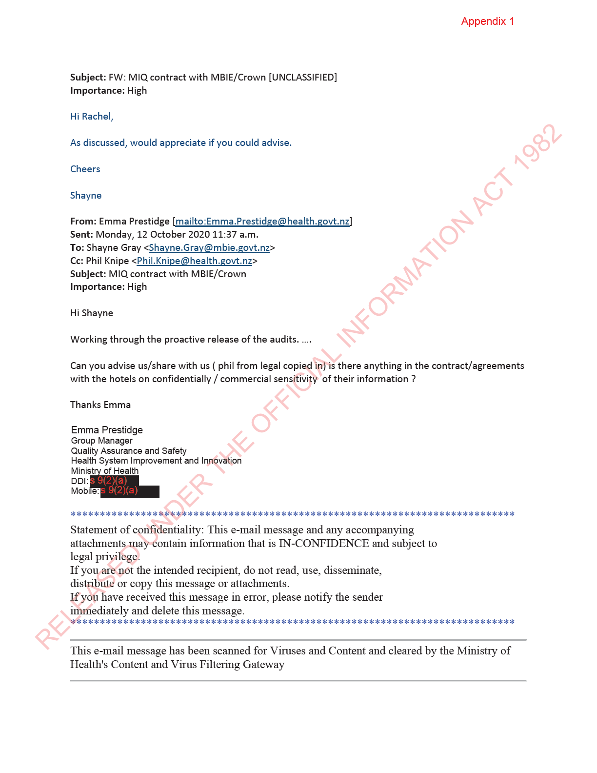 Subject: FW: MIQ contract with MBIE/Crown [UNCLASSIFIED]