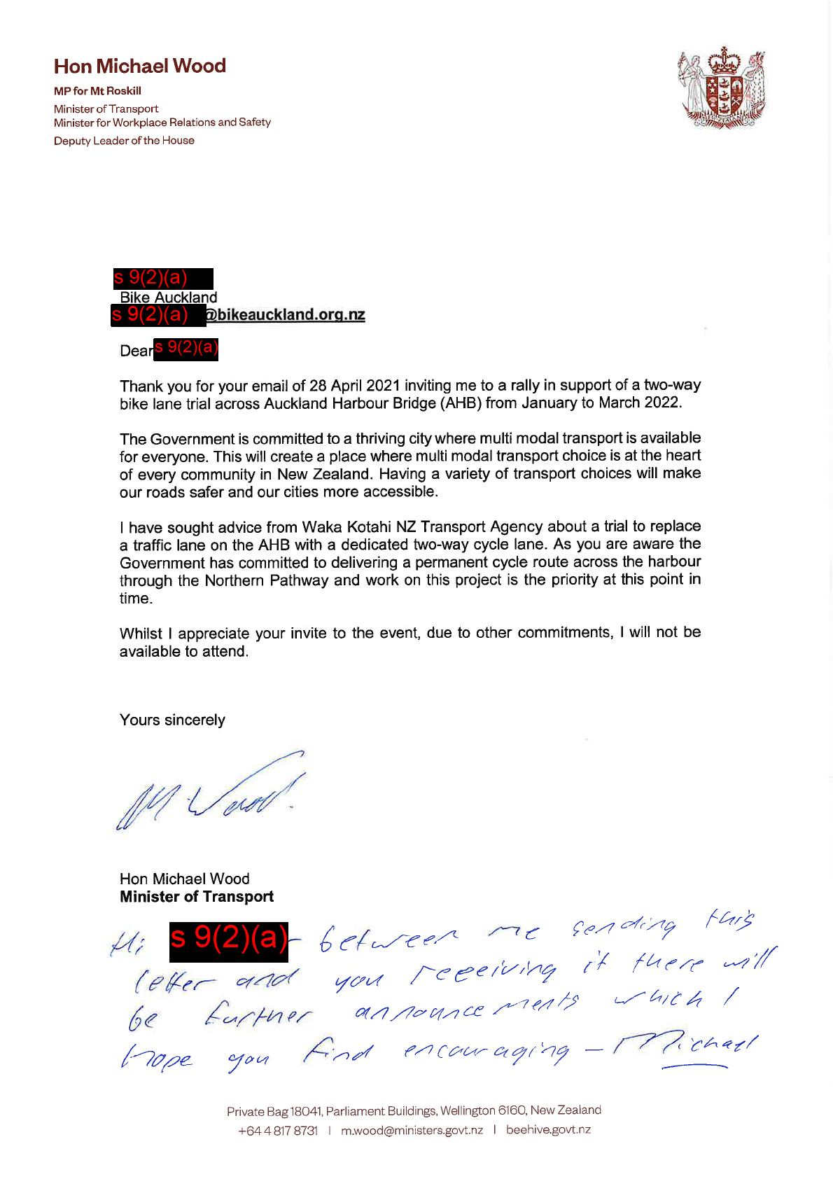 Minister of Transport & 30 May Incident on Auckland Harbour Bridge