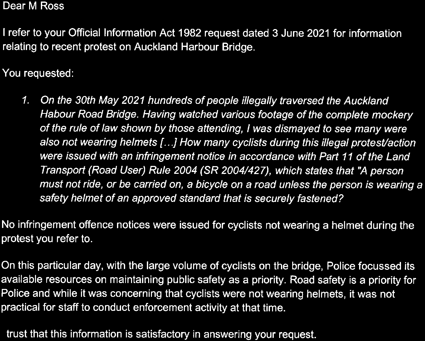 Number of cyclists fined for no helmet during Auckland Harbour Bridge Cycling Mockery.