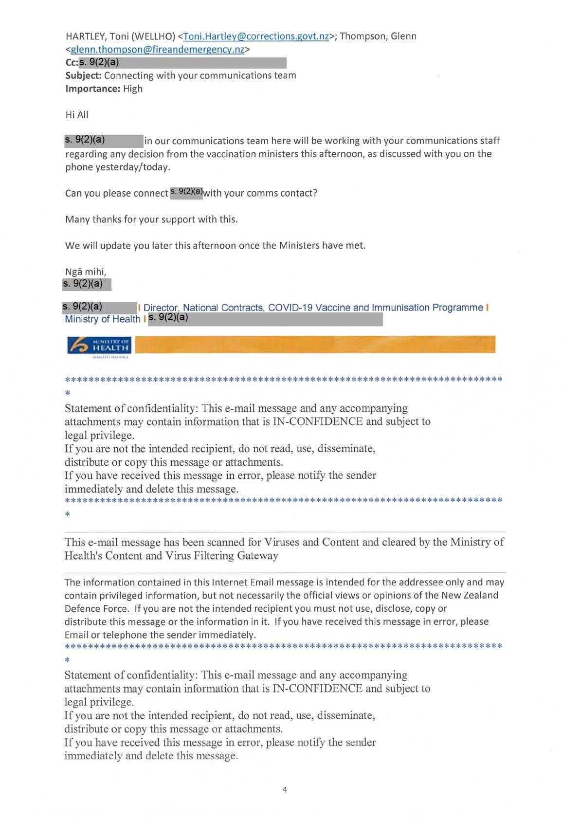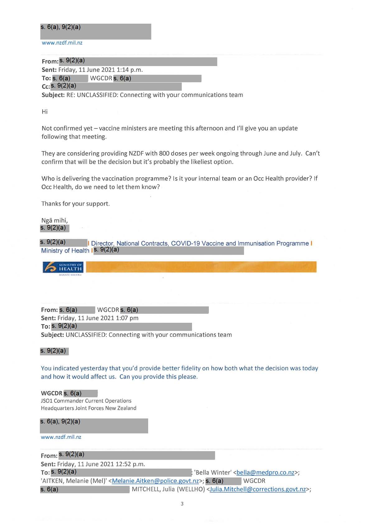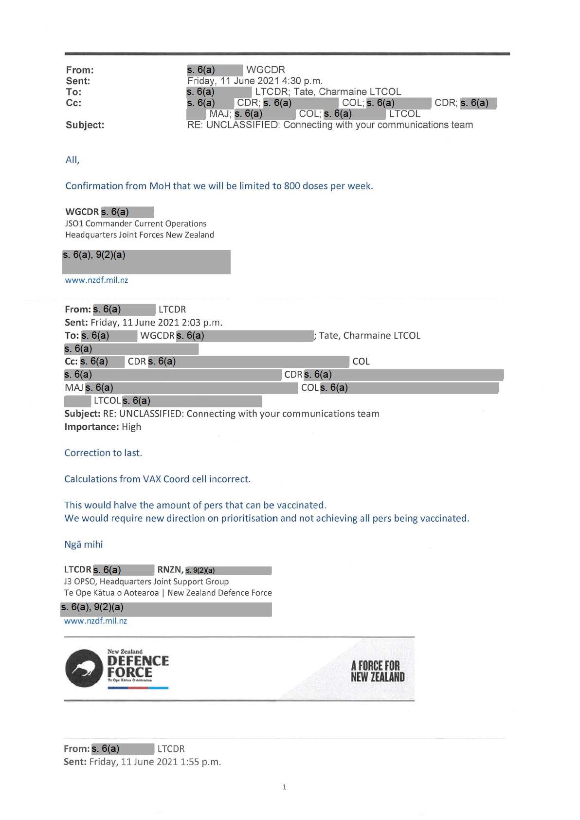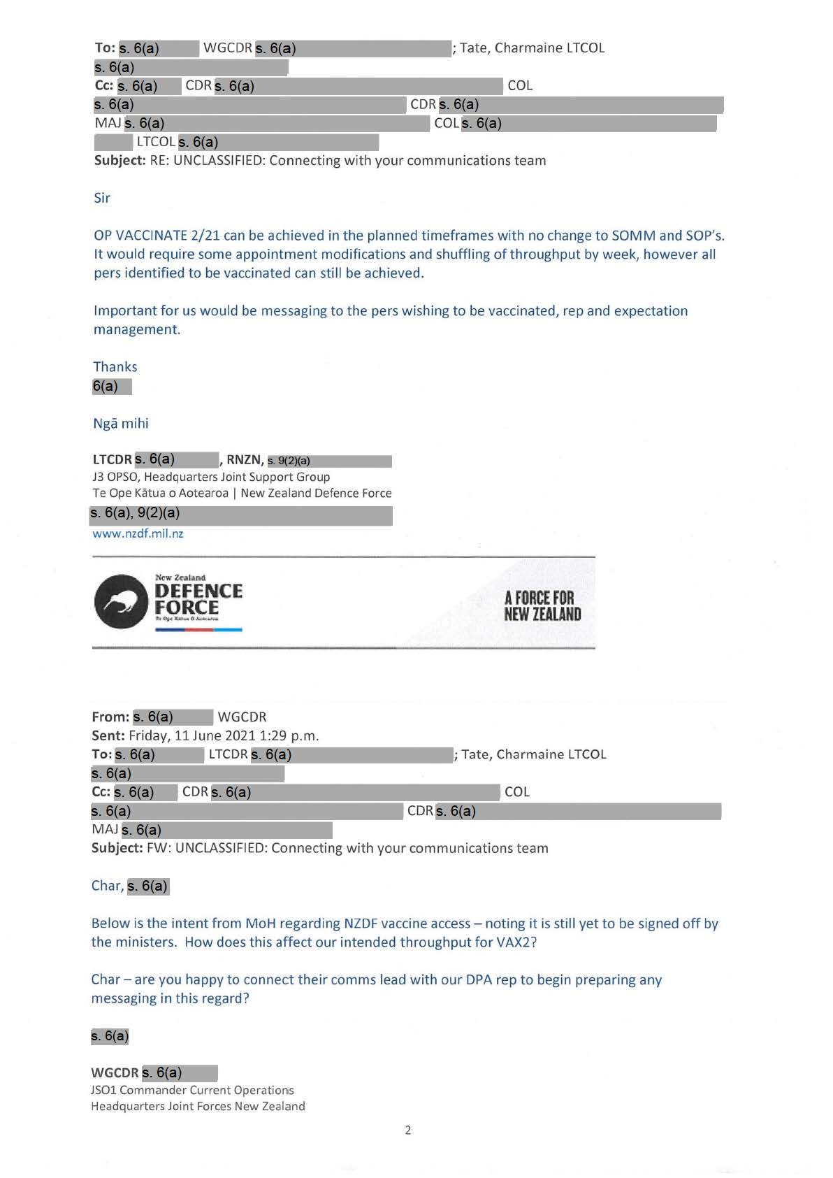 Forced Ministry of Health slowdown/cancelation of vaccinations to NZDF members this month.