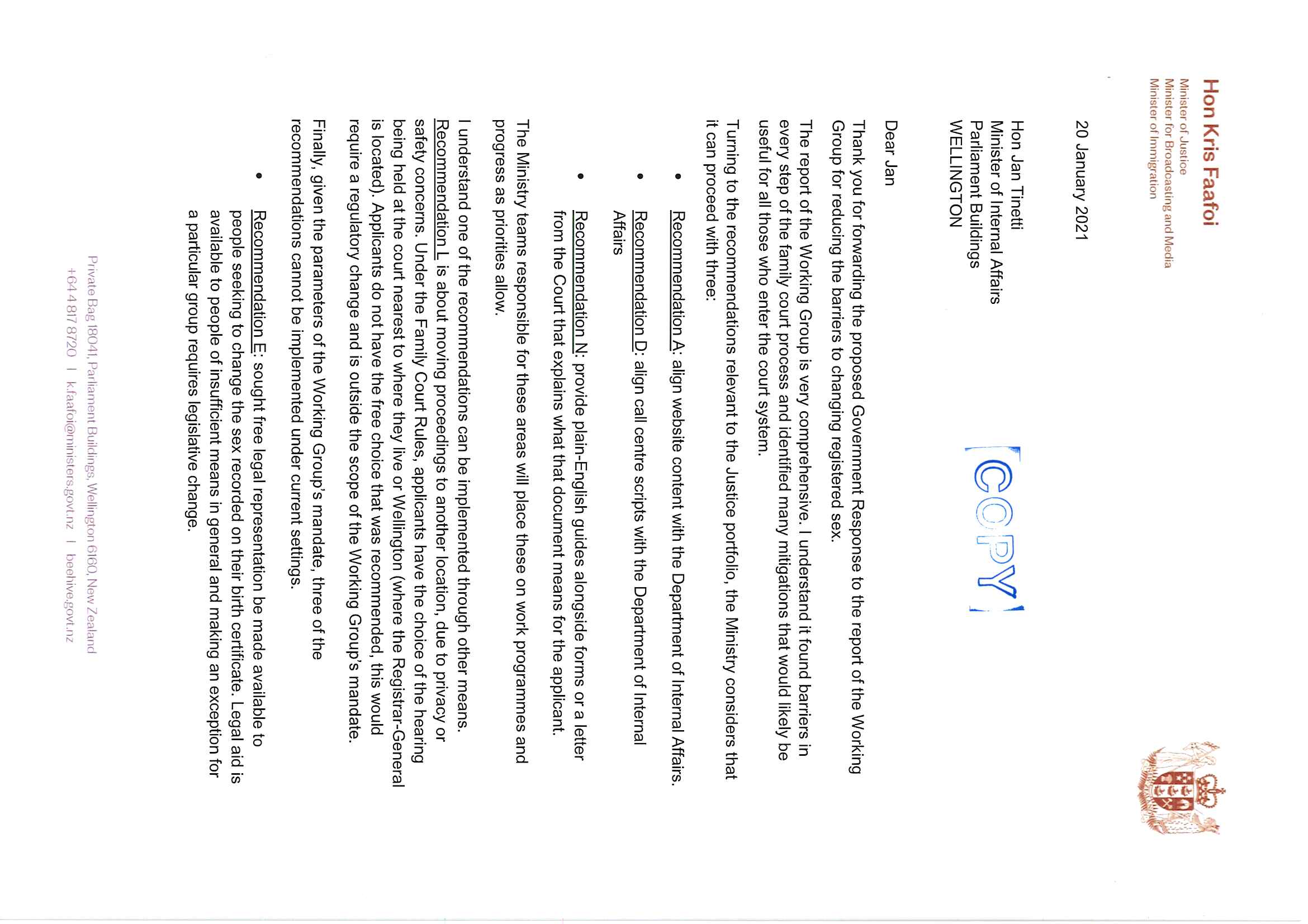 3.  Letter from Minister Faafoi to Minister Tinetti 20 January 2021