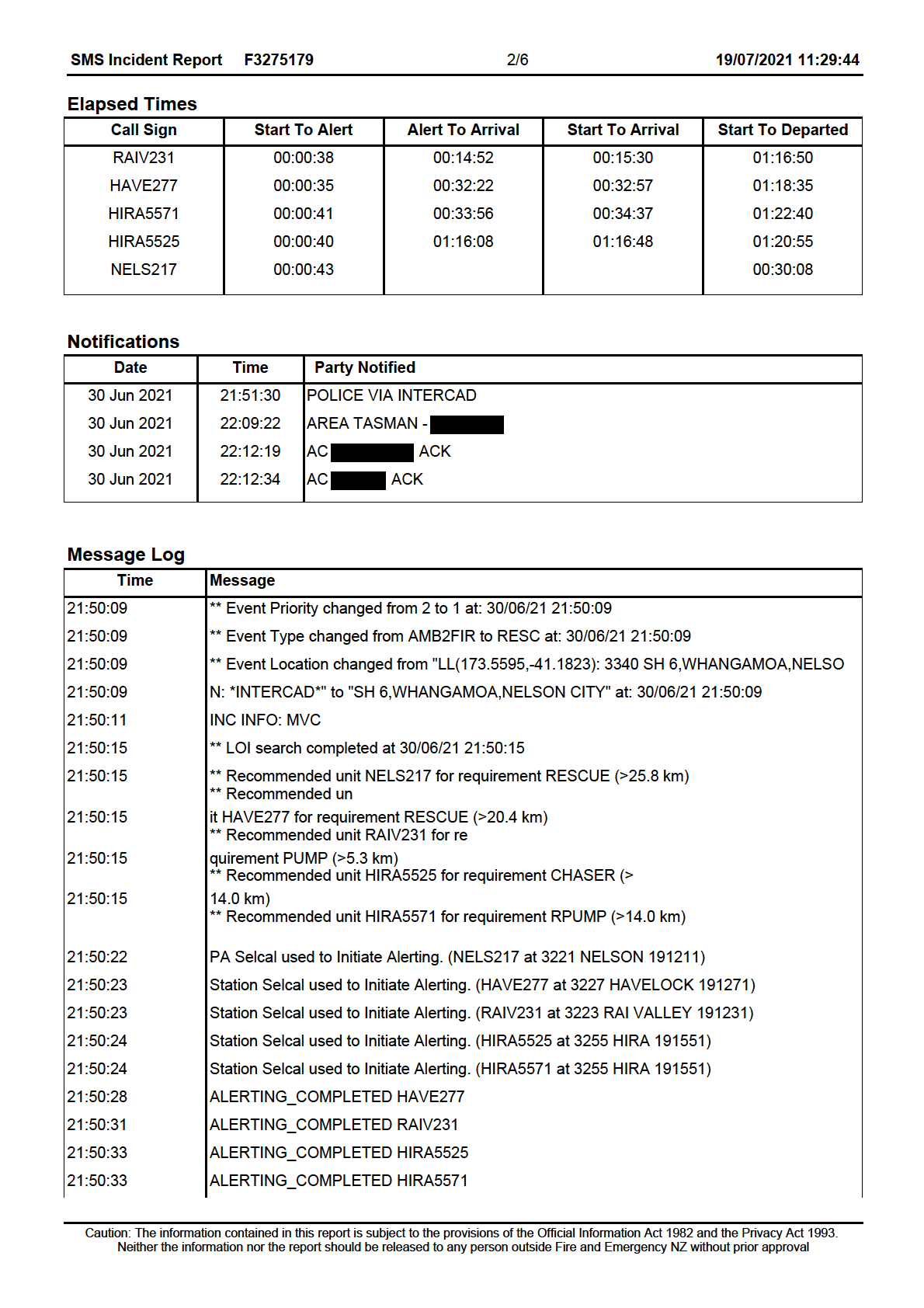 Caution: The information contained in this report is subject to the provisions of the Official Information Act 1982 and the Privacy Act 1993.
