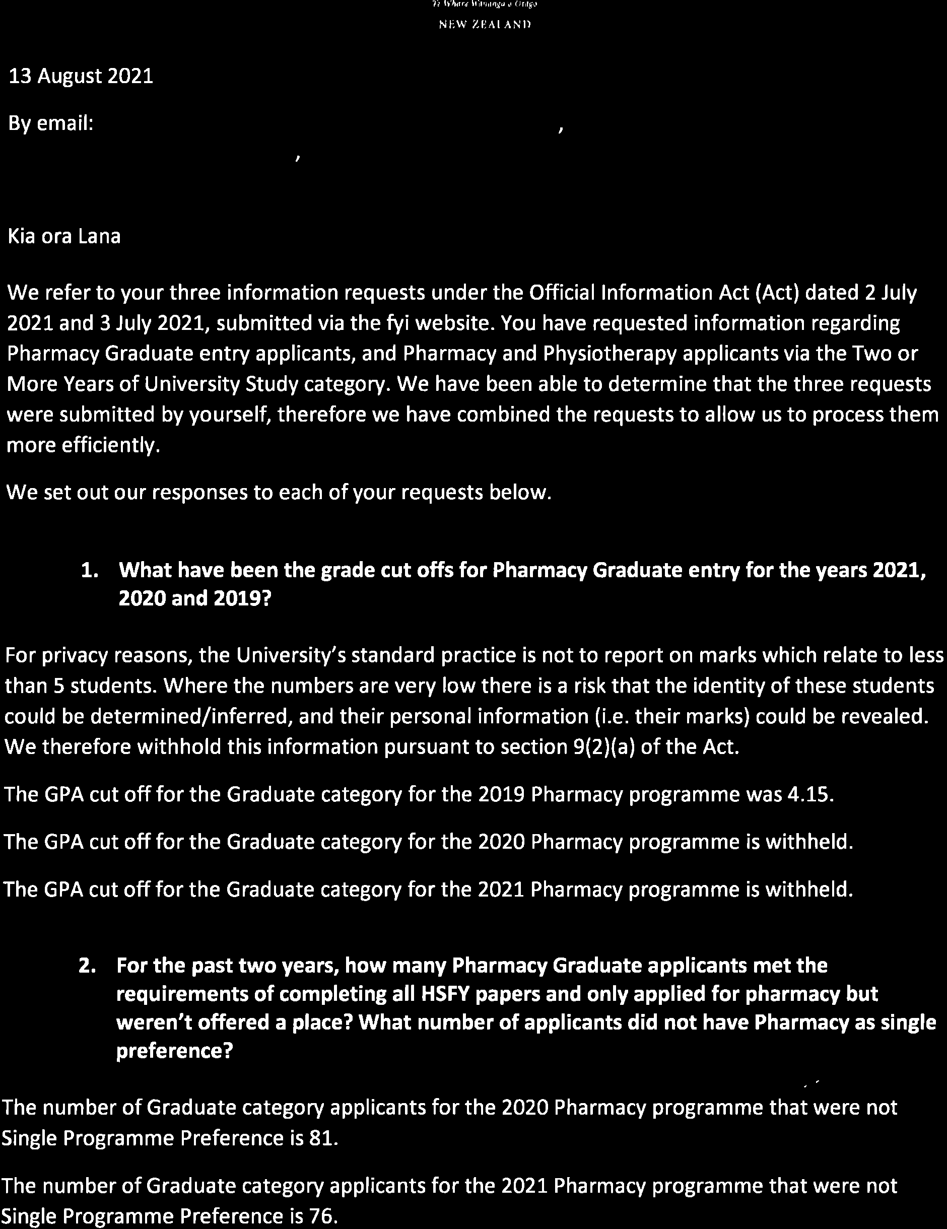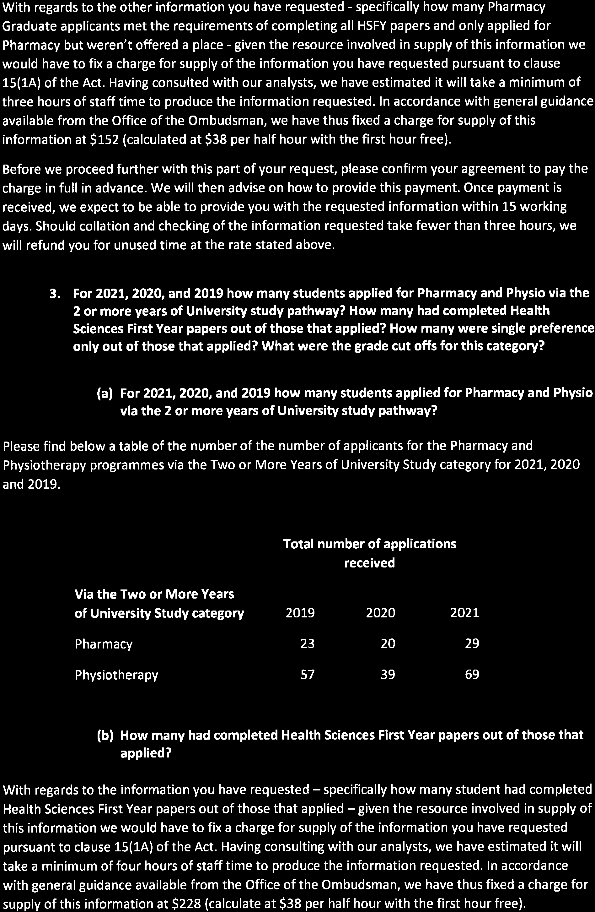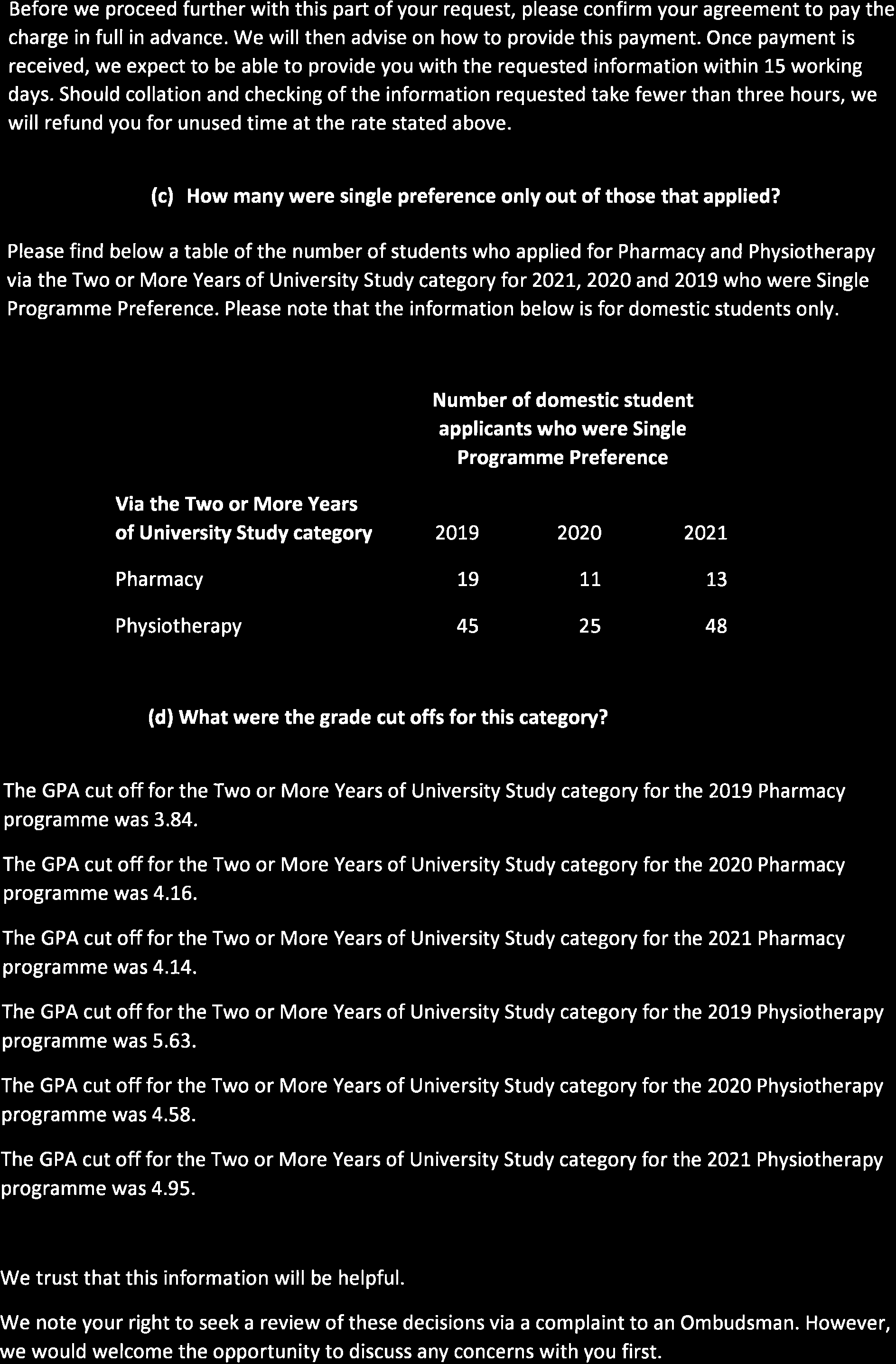 Pharmacy and physiotherapy entry via 2 or more years of university study statistics