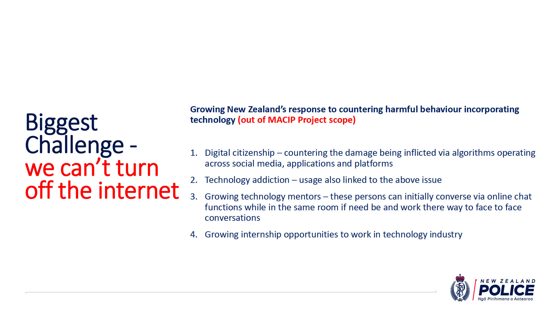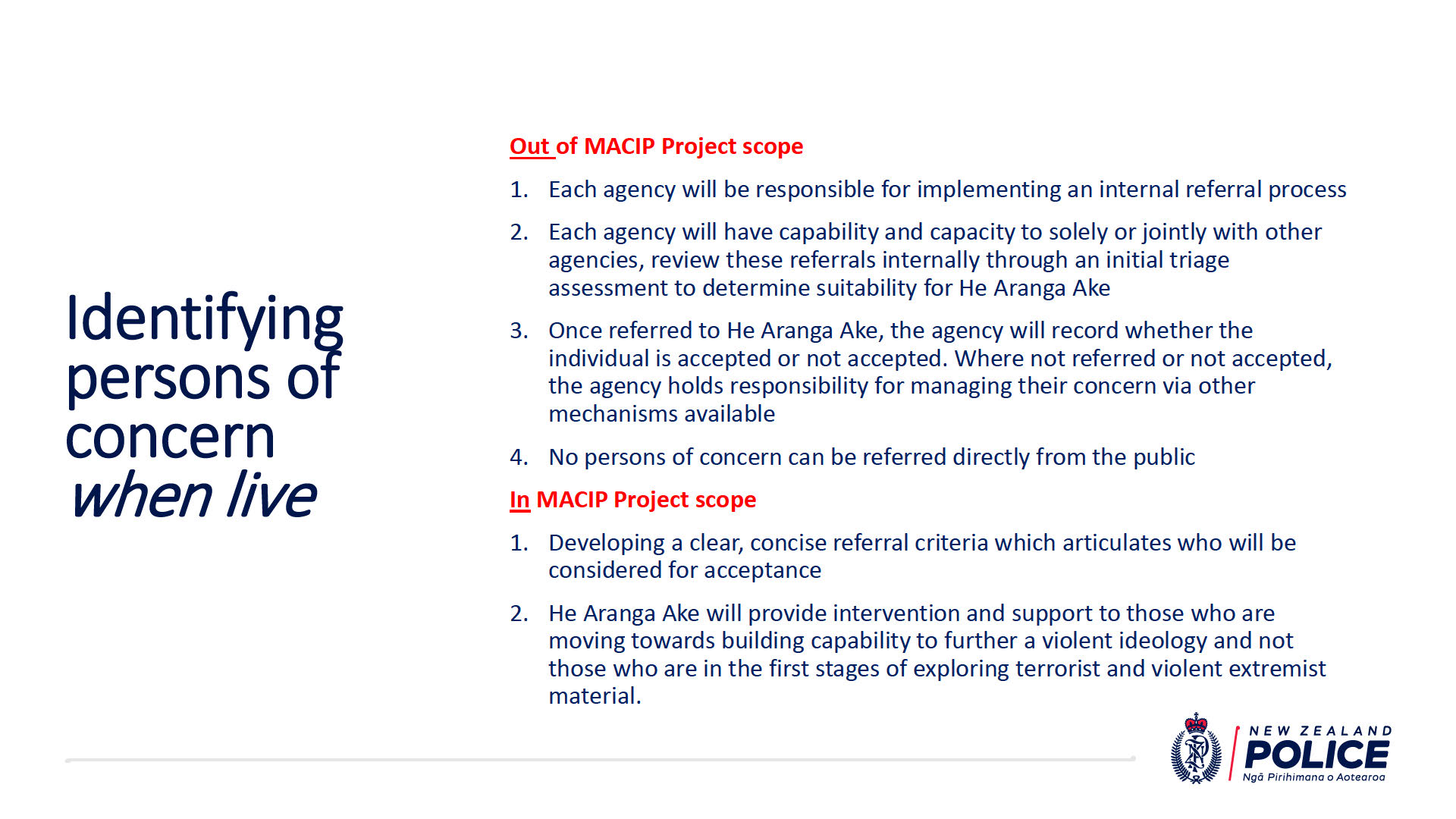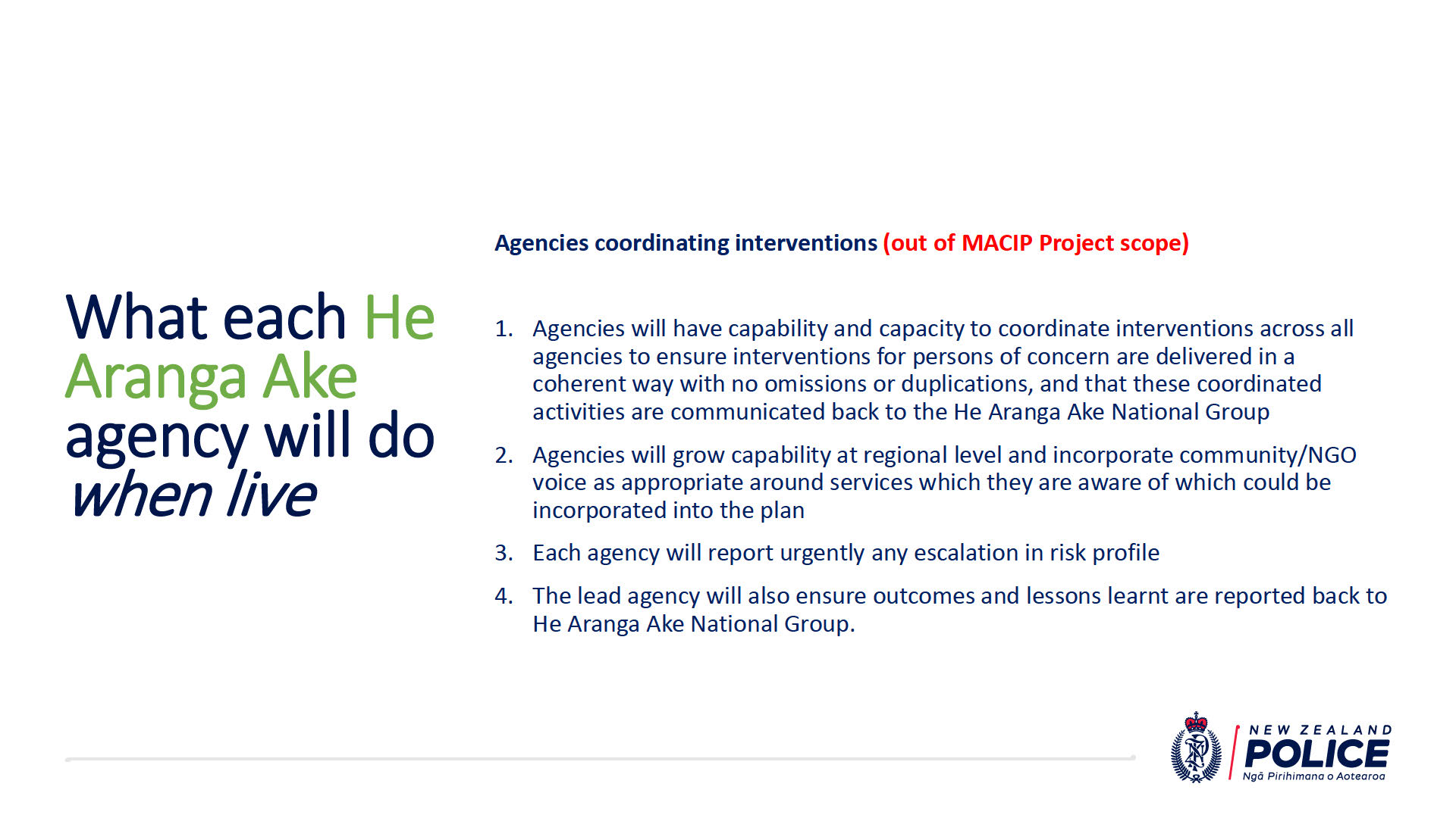 New Zealand Police is leading the development of MACIP, along with agency