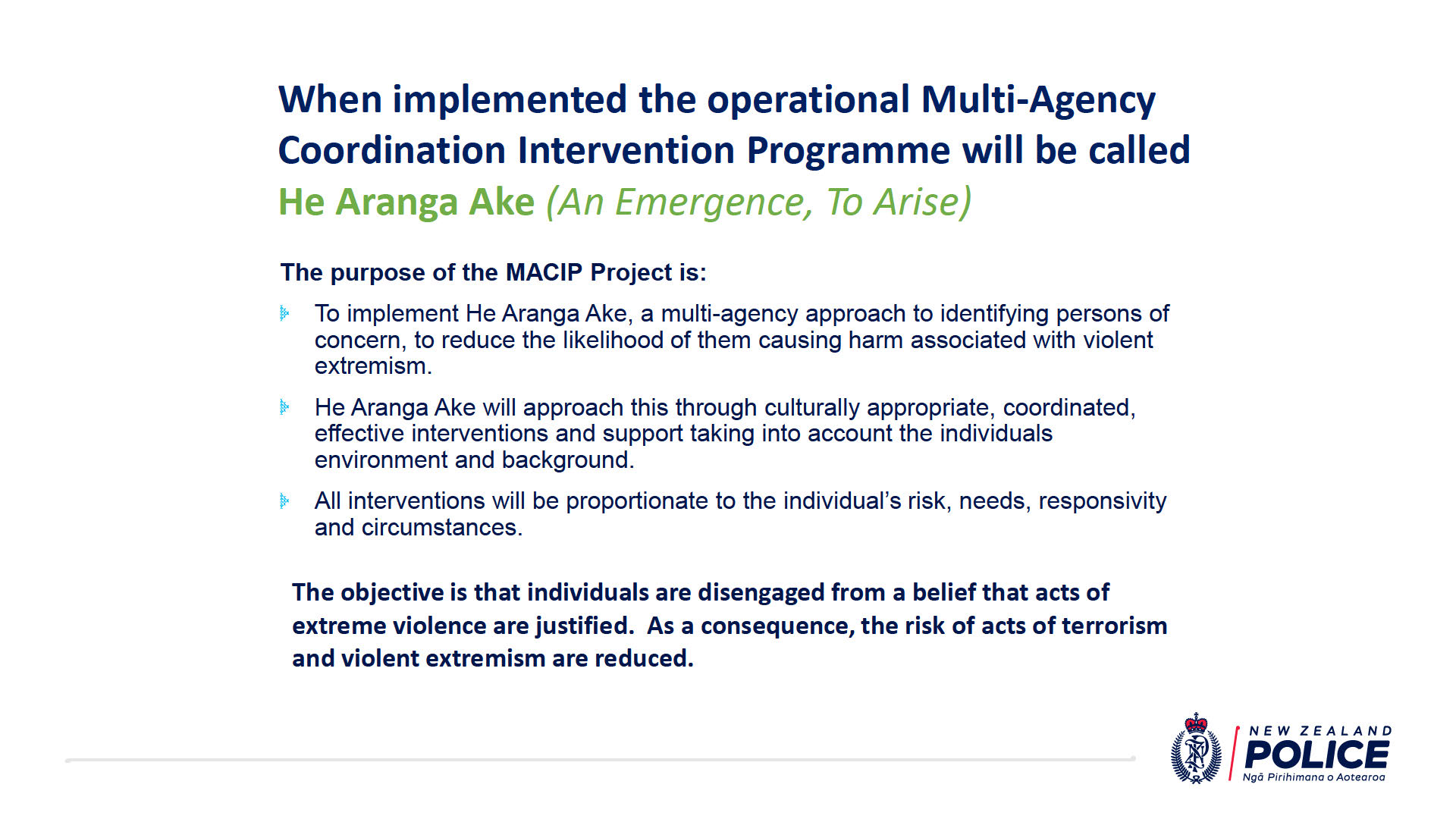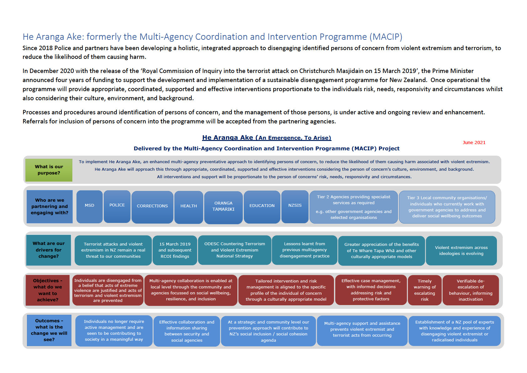 will note these documents also reference the new name for MACIP, He Aranga