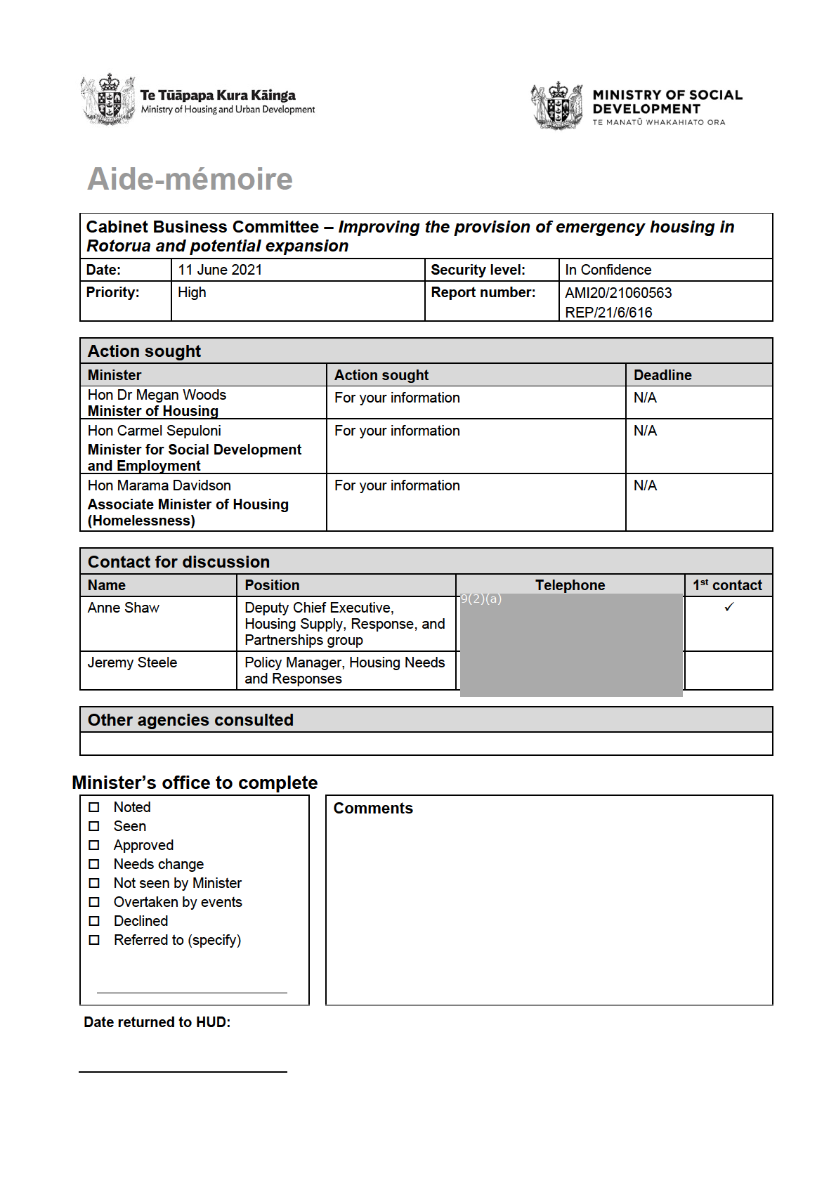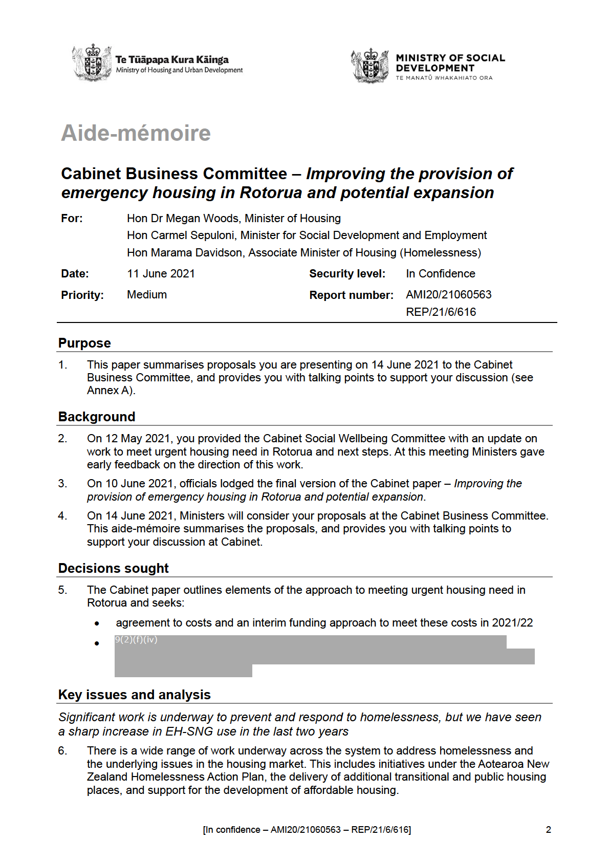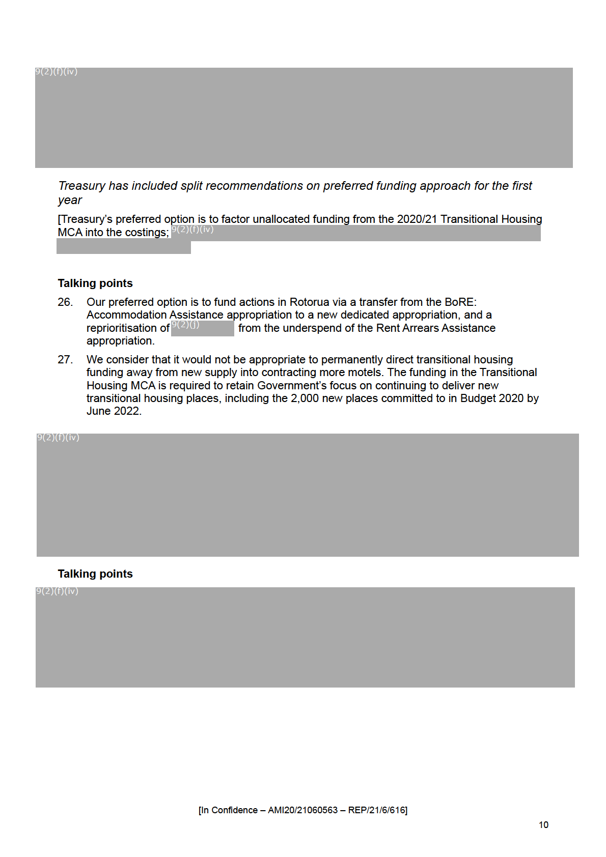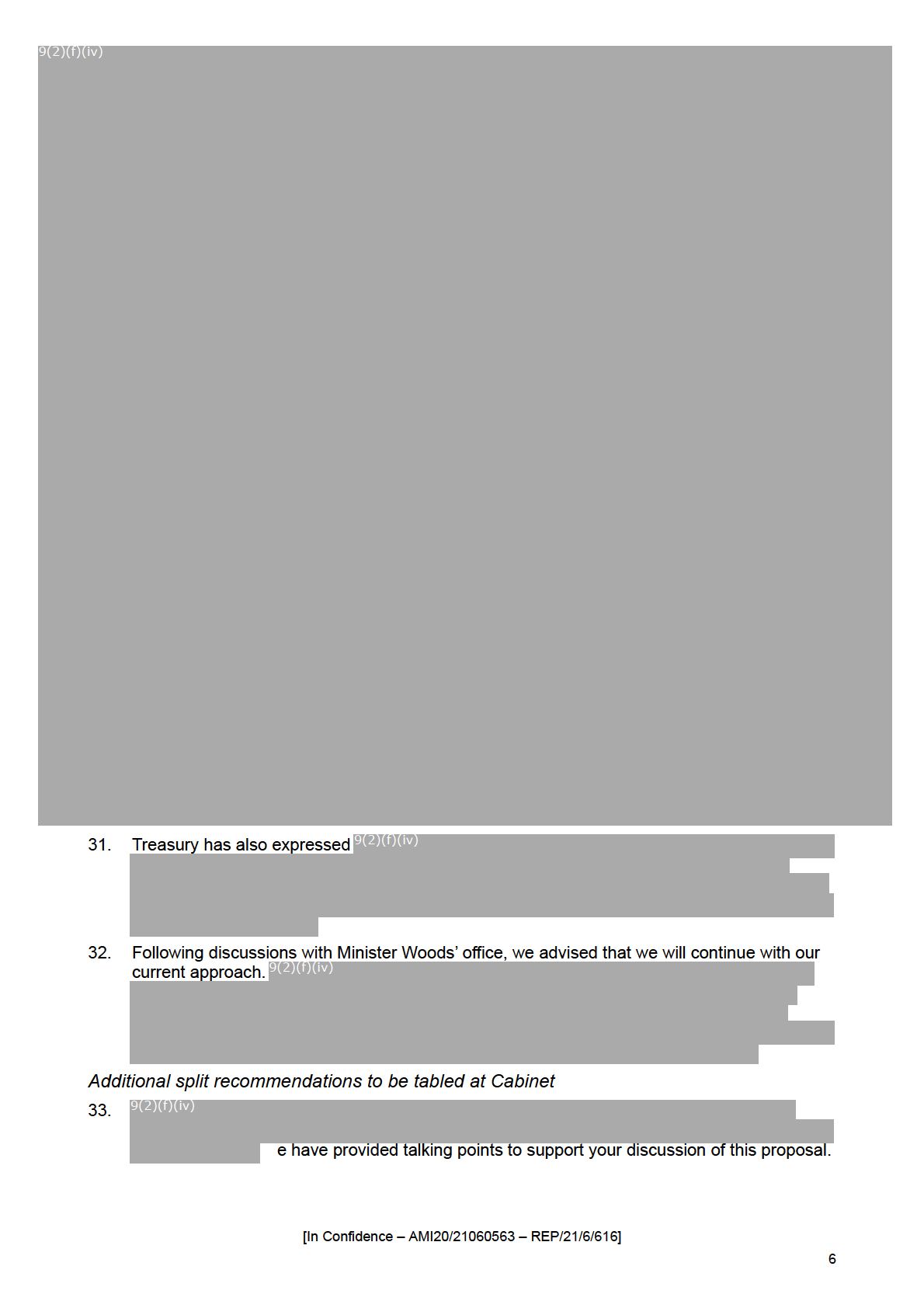 [In Confidence – AMI20/21060563 – REP/21/6/616]