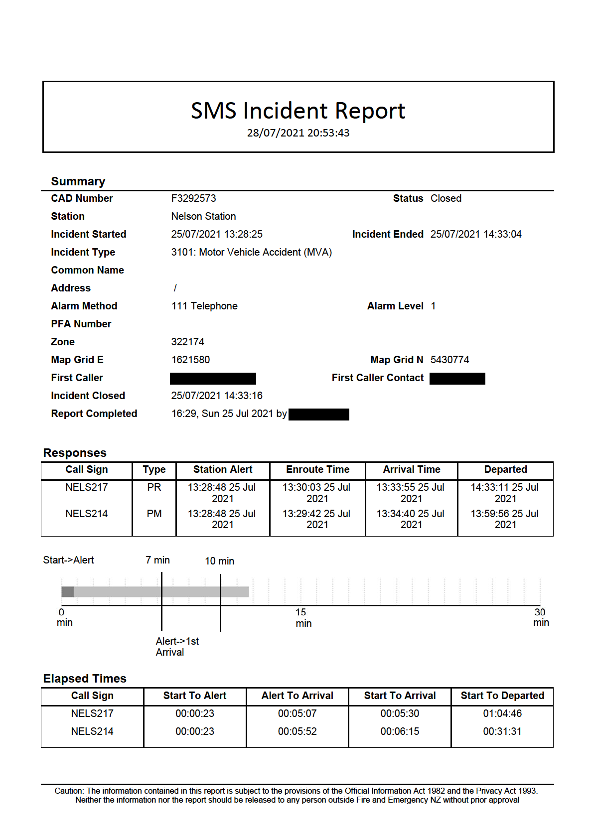 Neither the information nor the report should be released to any person outside Fire and Emergency NZ without prior approval