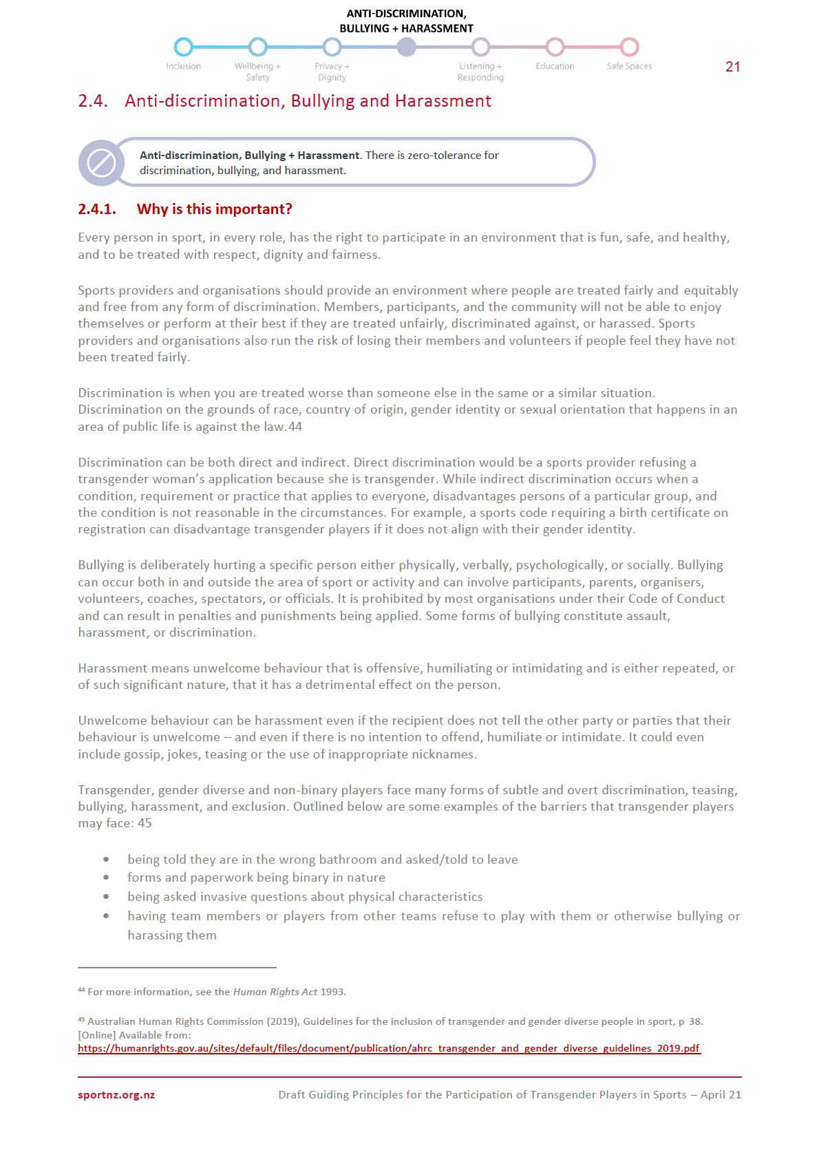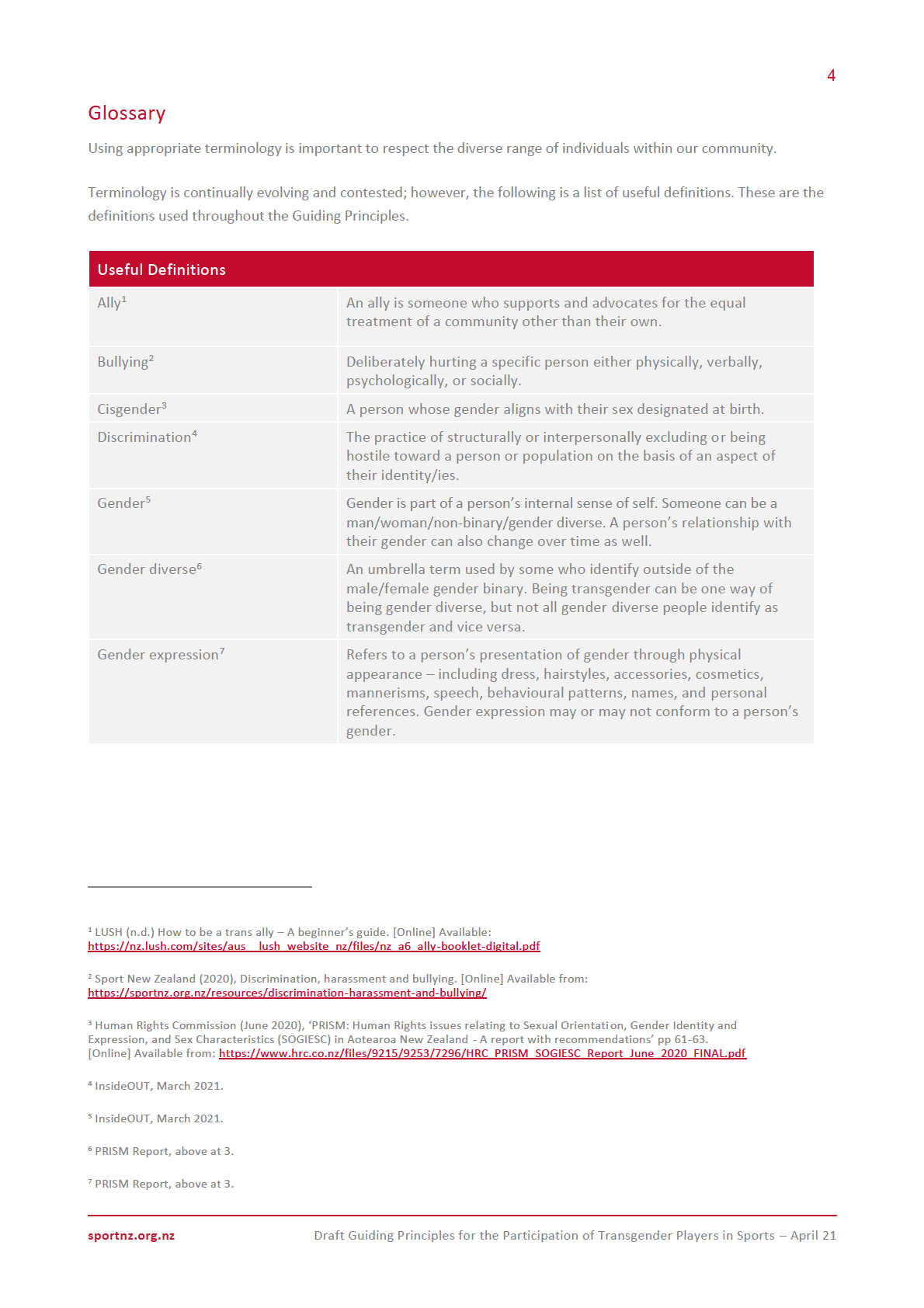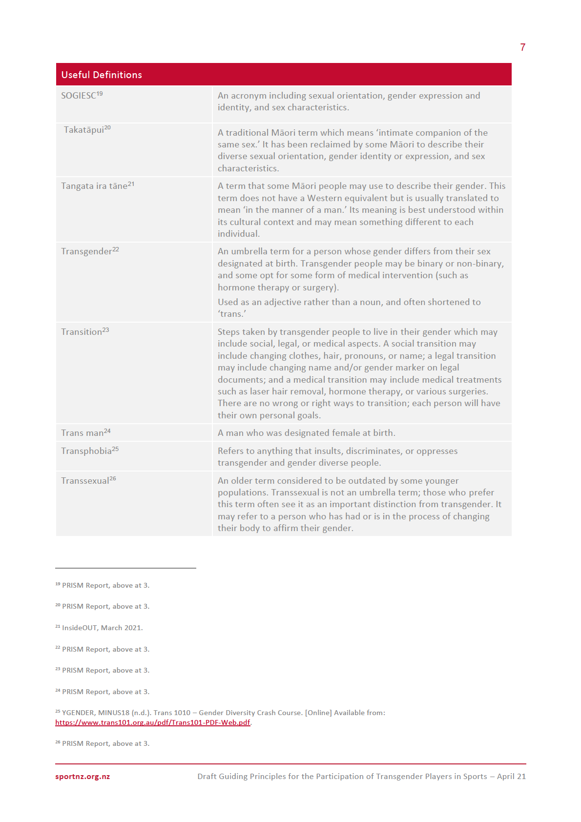 Draft Guiding Principles for the Participation of Transgender Players in Sports – April 21