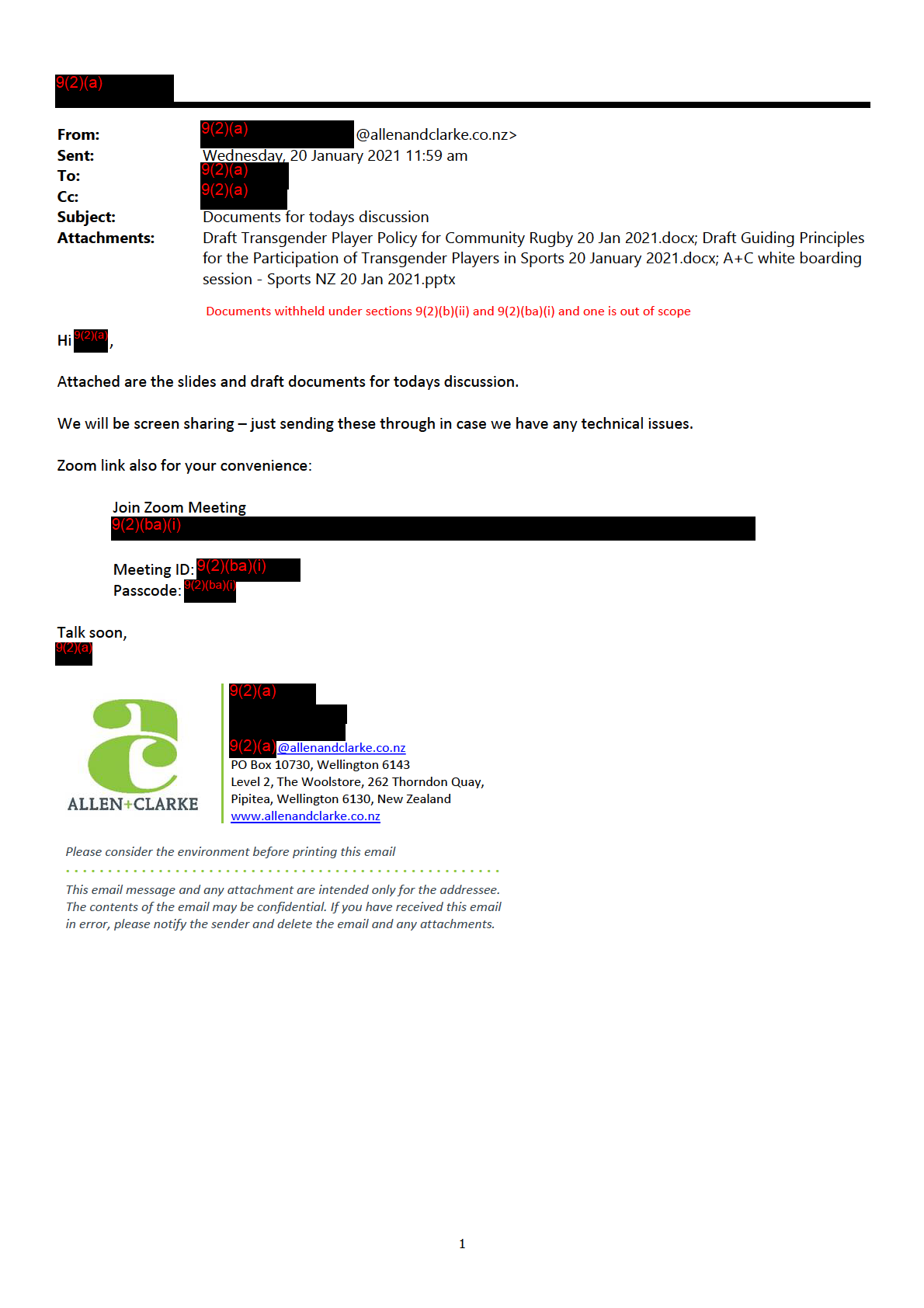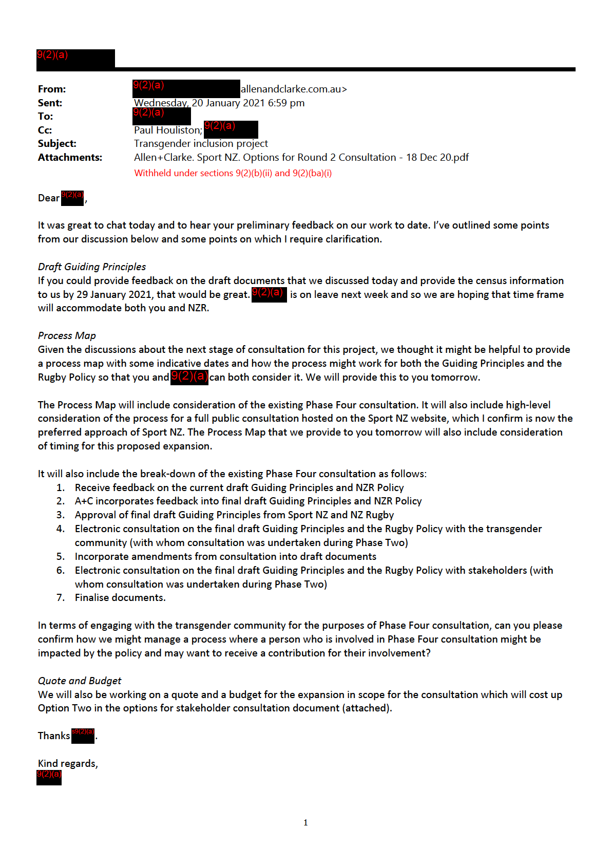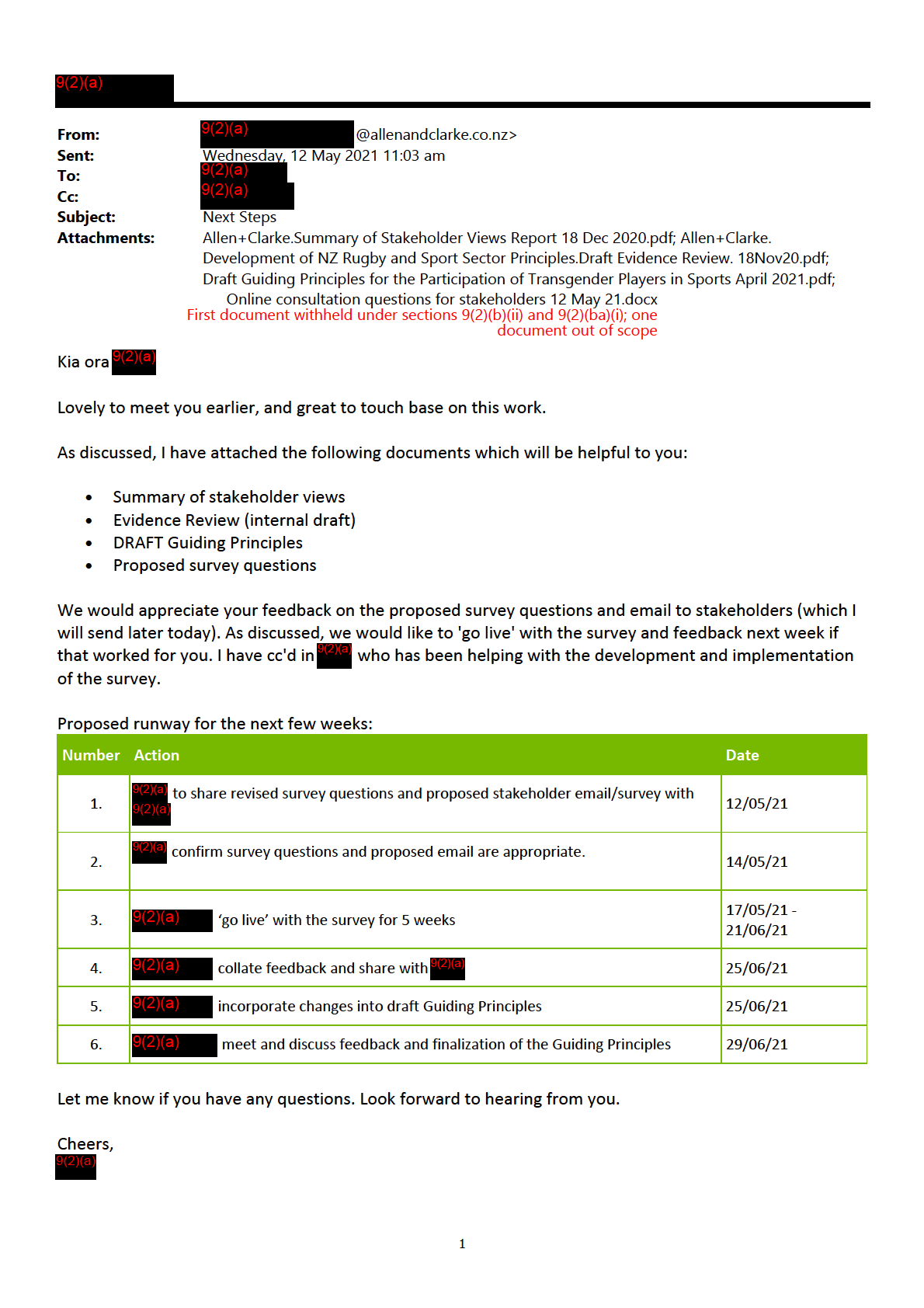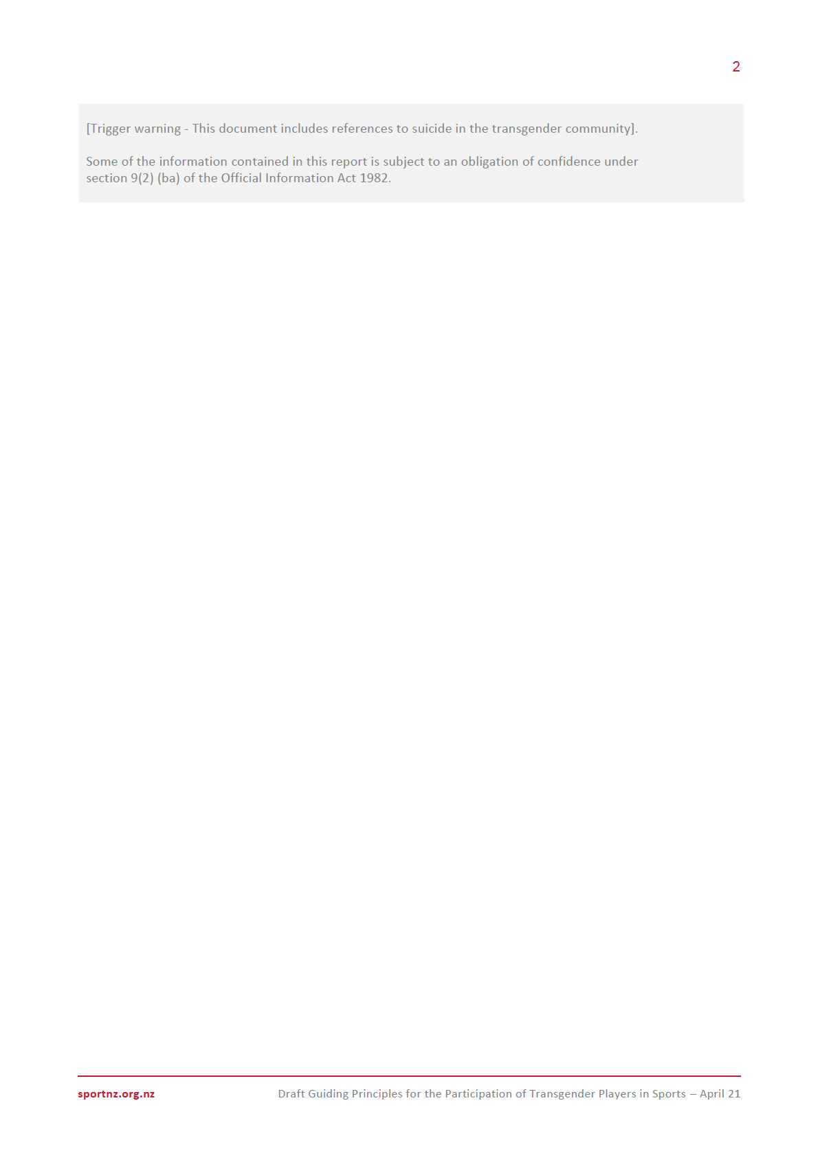 Draft Guiding Principles for the Participation of Transgender Players in Sports – April 21