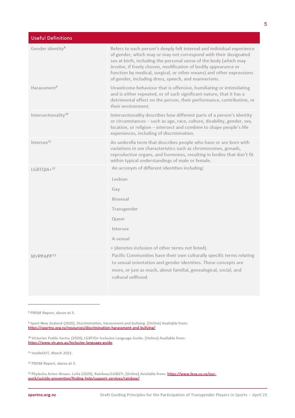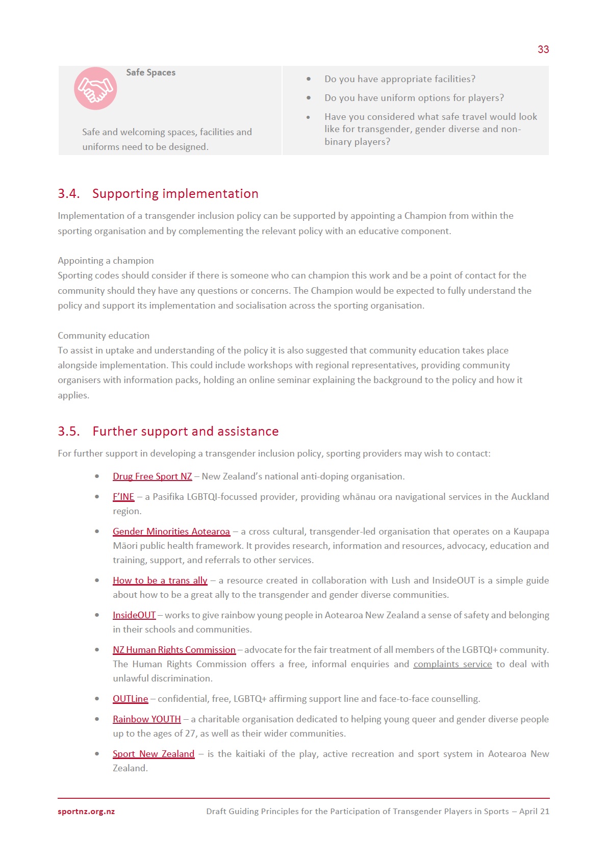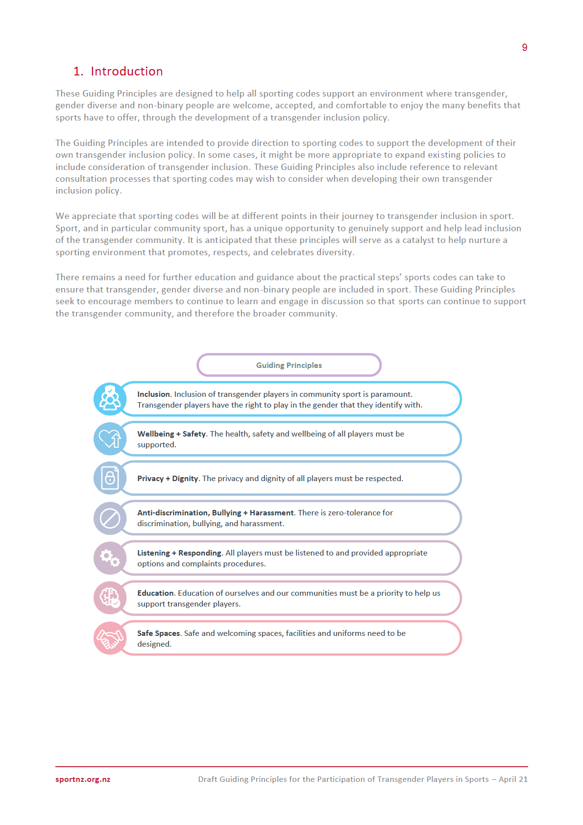 transgender and sporting communities, academics, researchers, and other advocacy groups. The Guiding