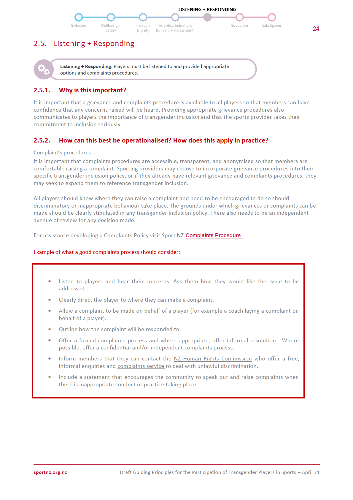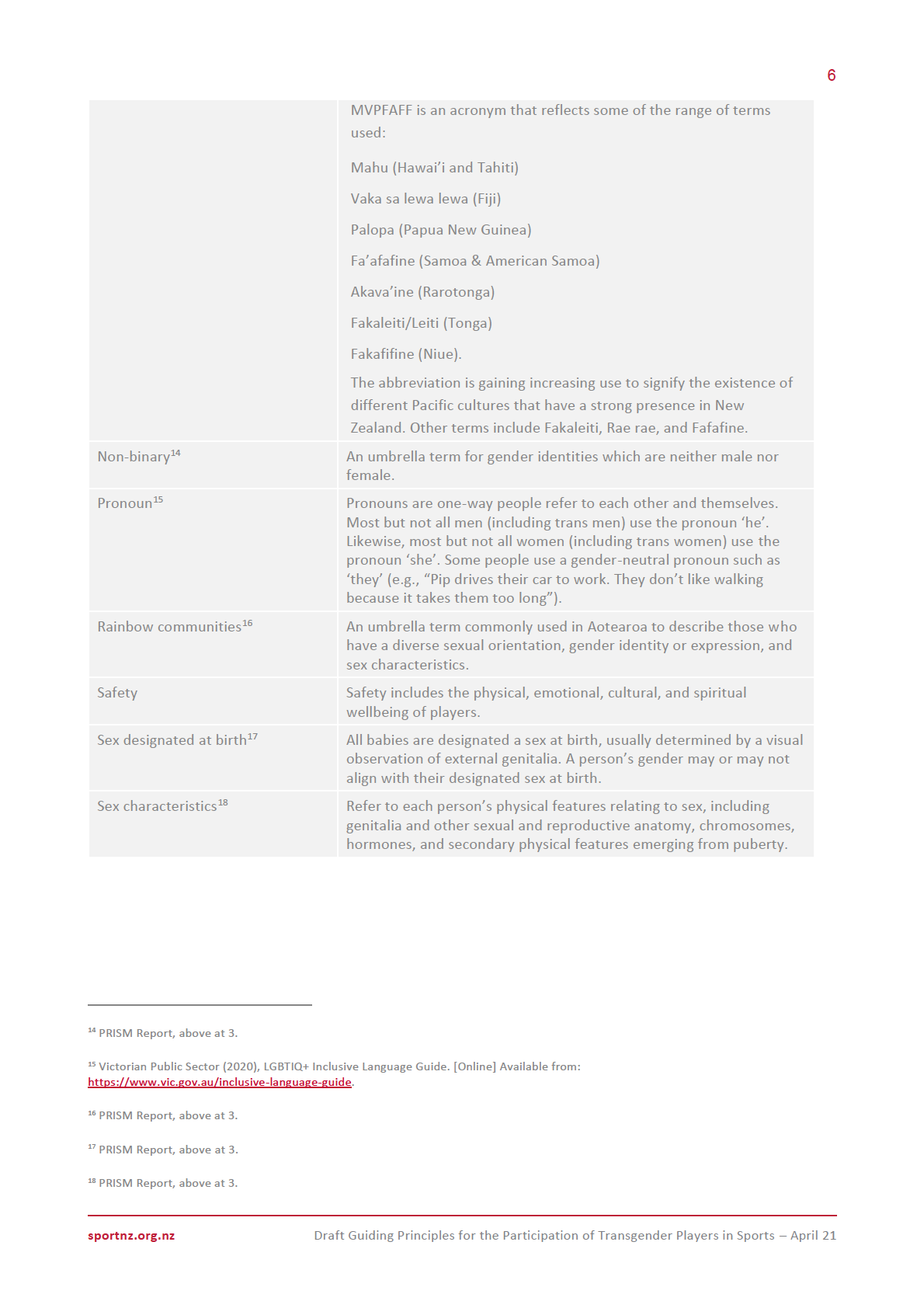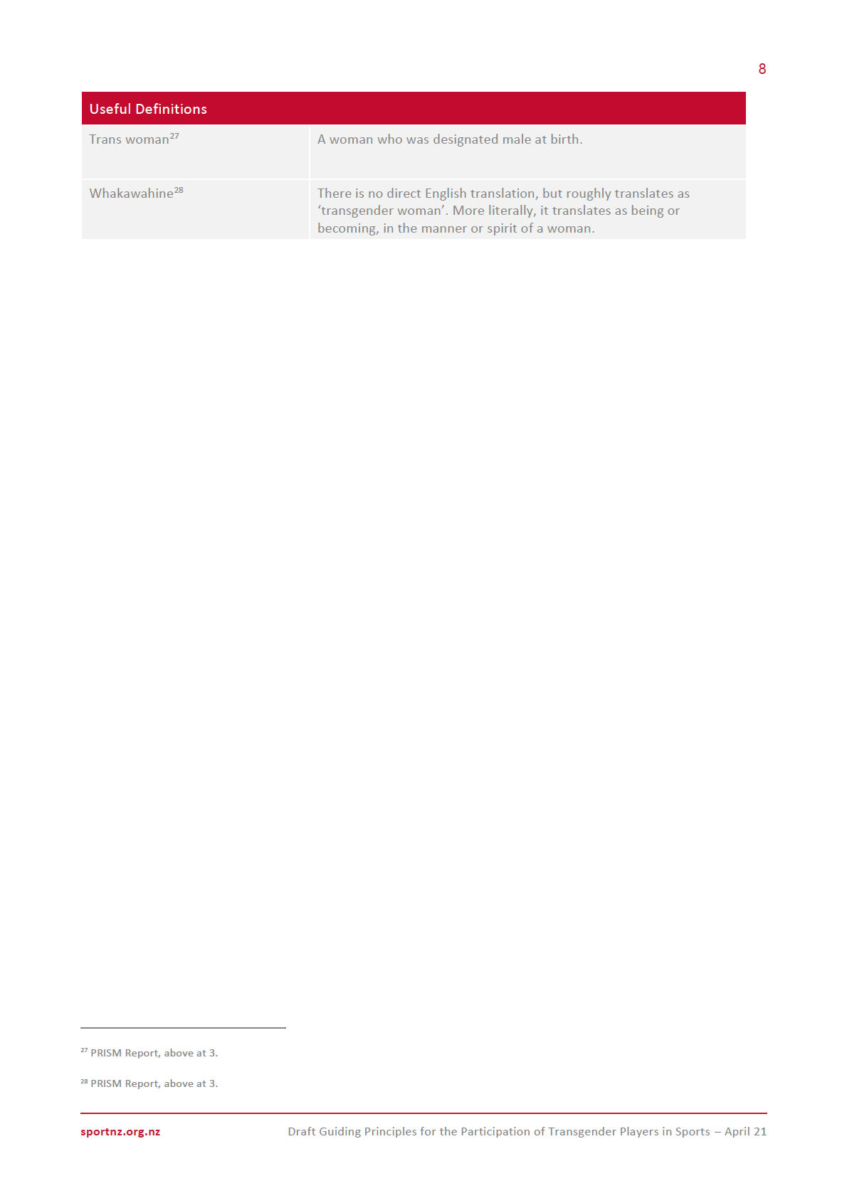 transgender and sporting communities, academics, researchers, and other advocacy groups. The Guiding