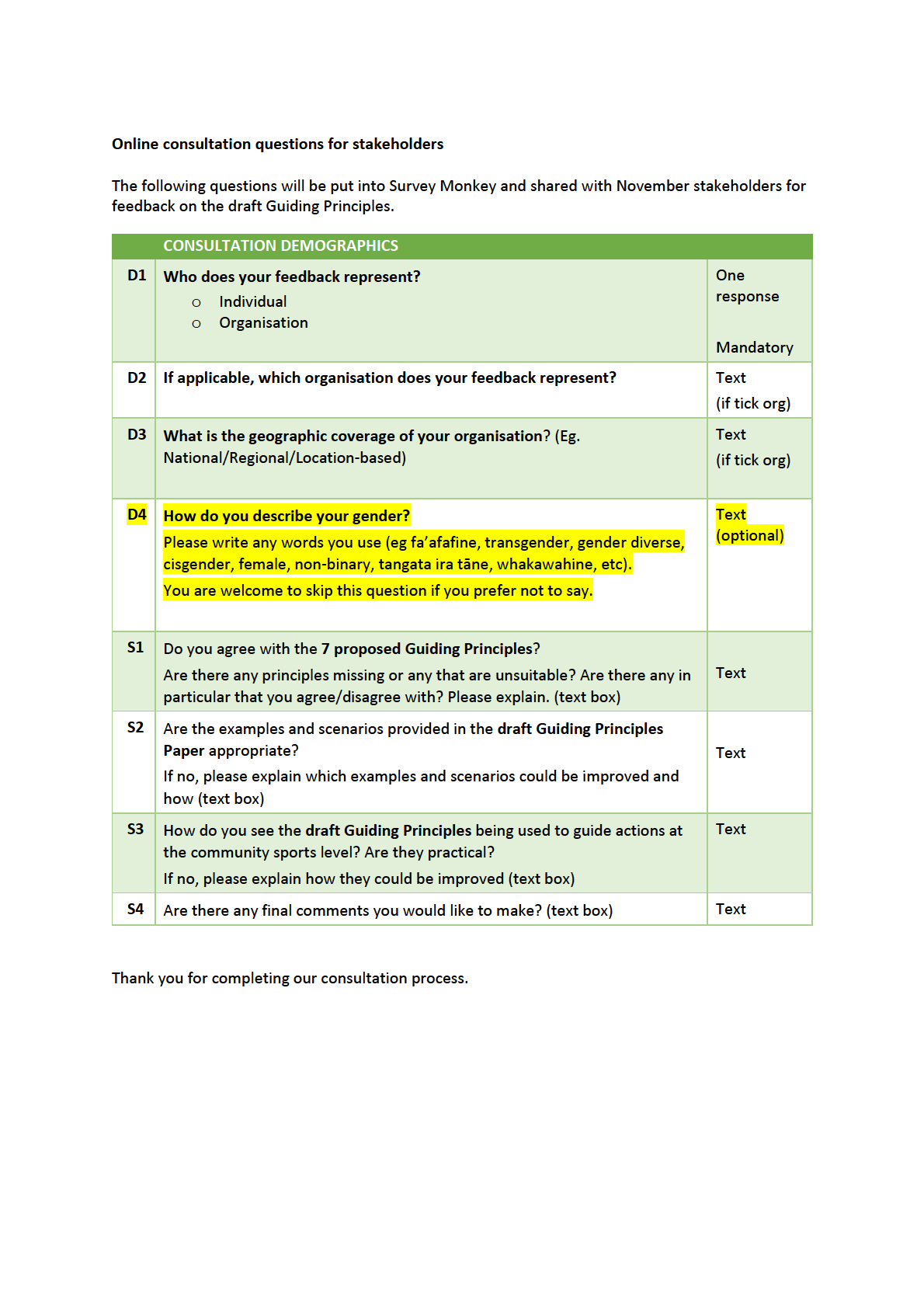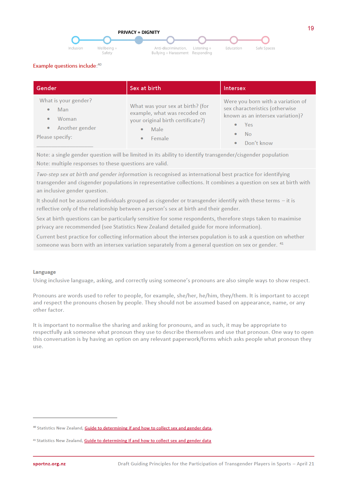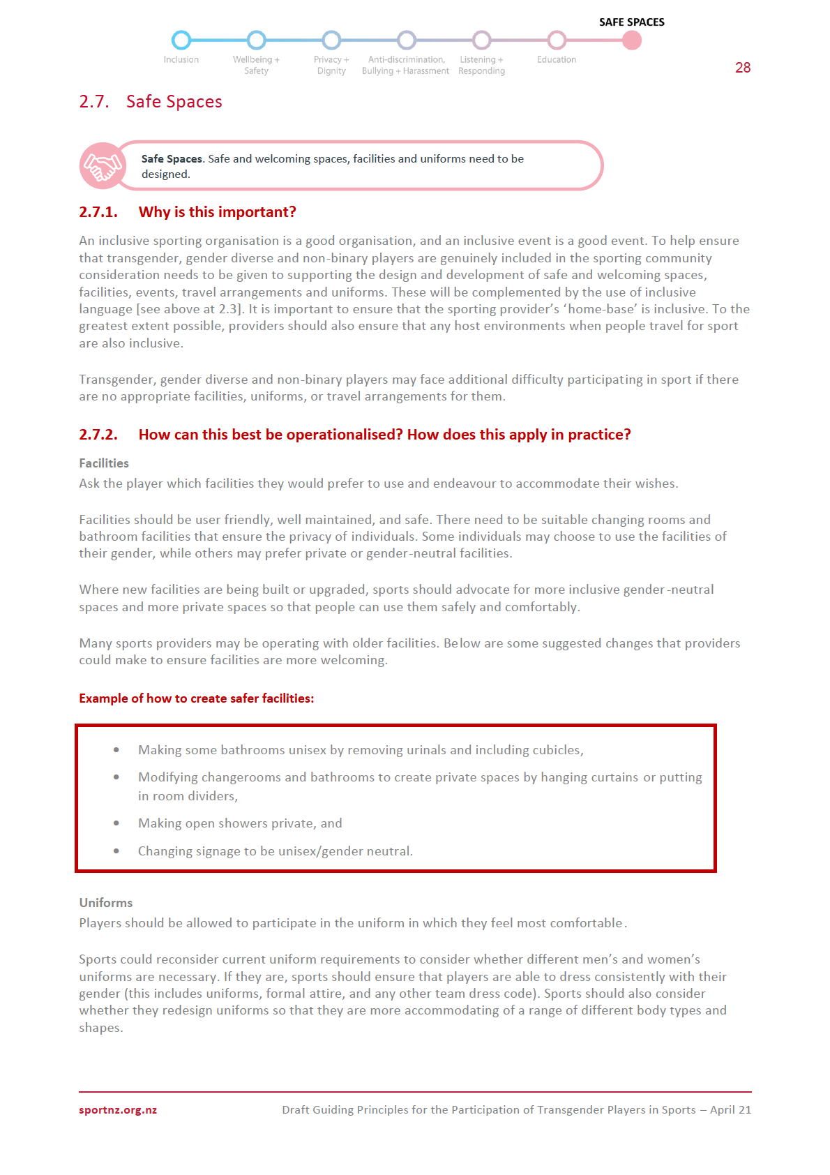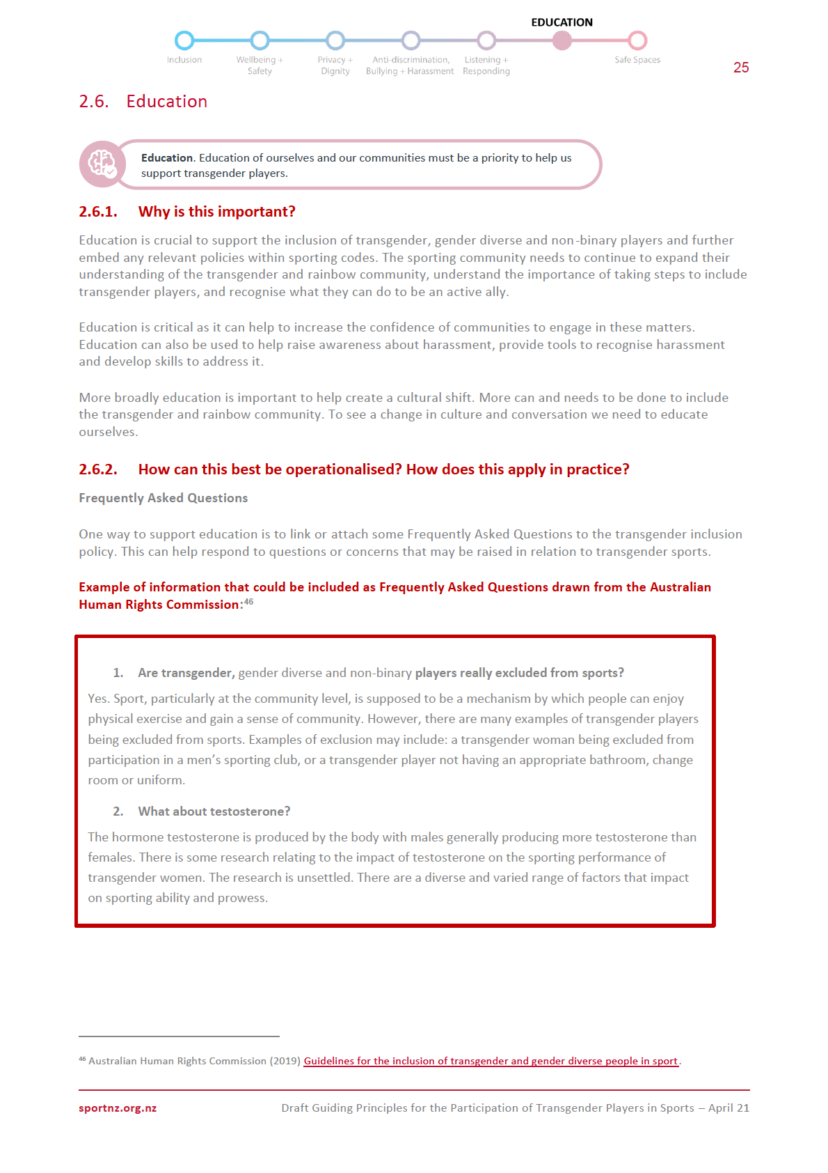 Principles have also been informed by international sporting policies that are transgender inclusive.