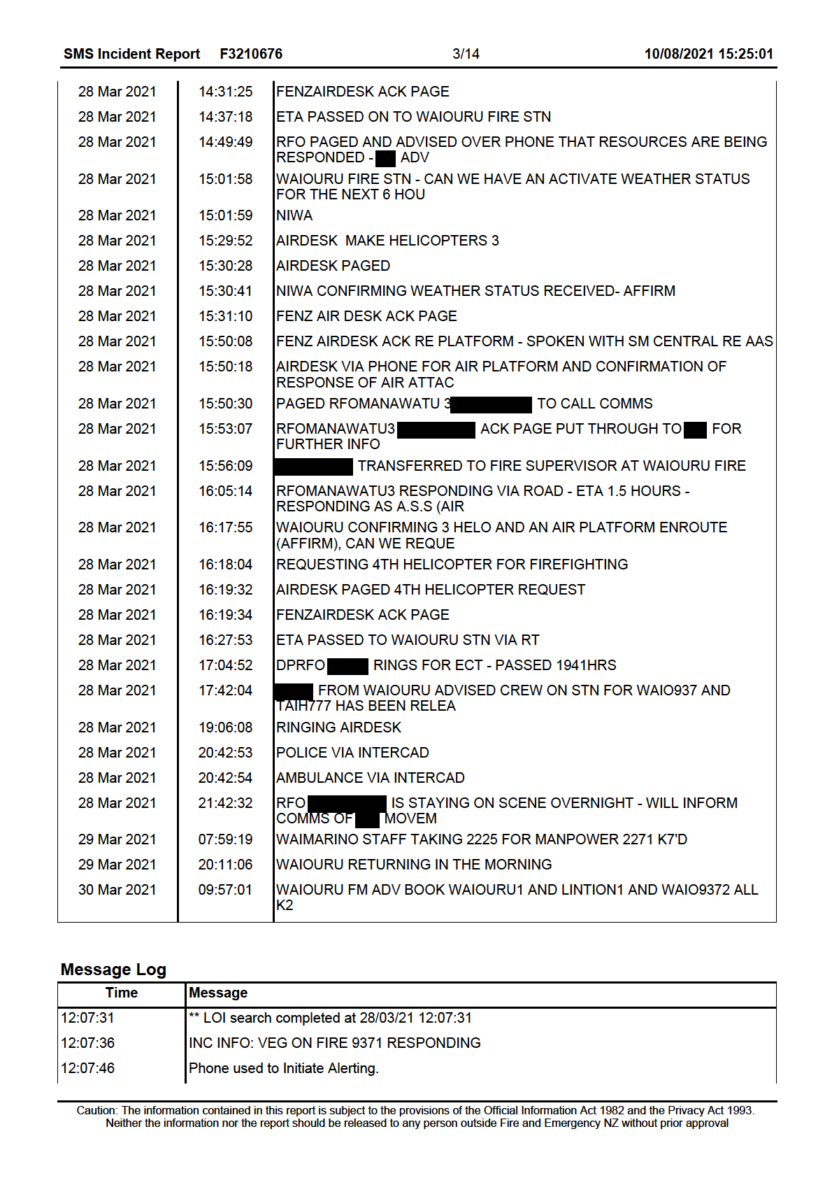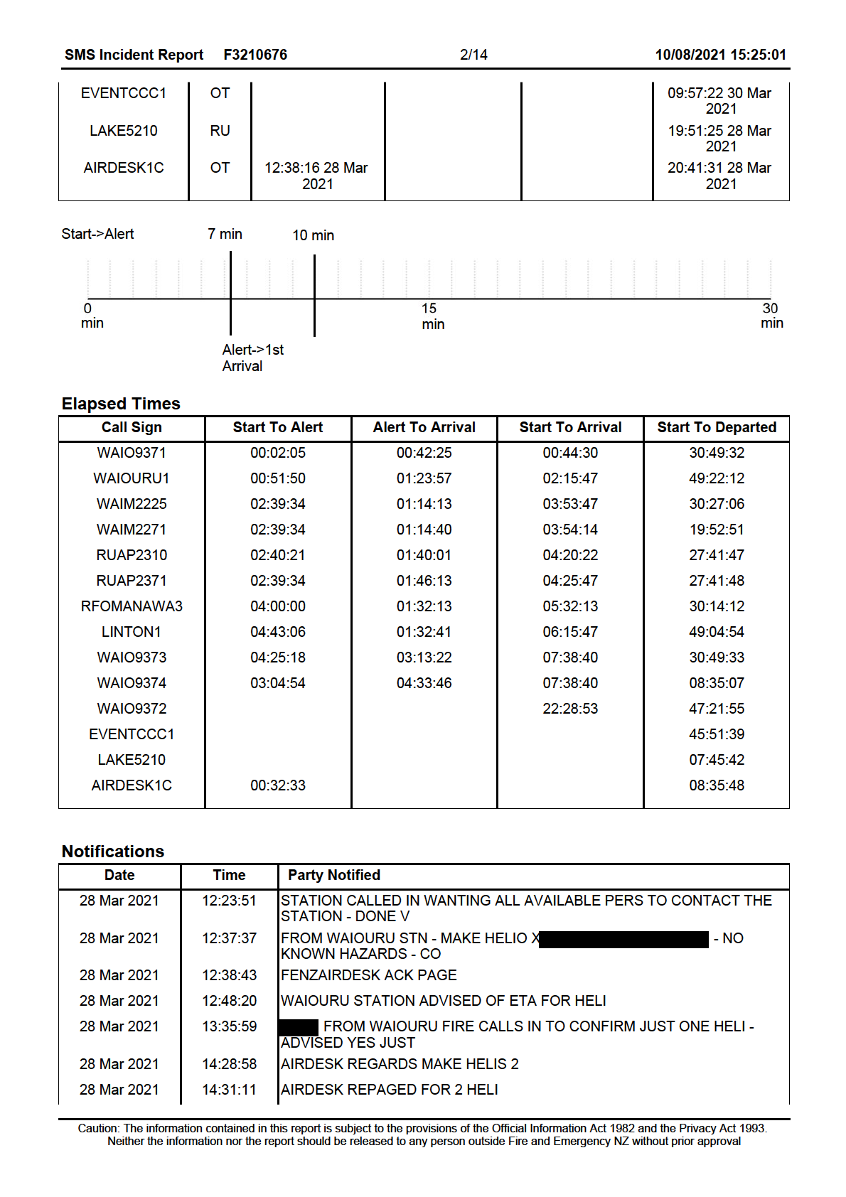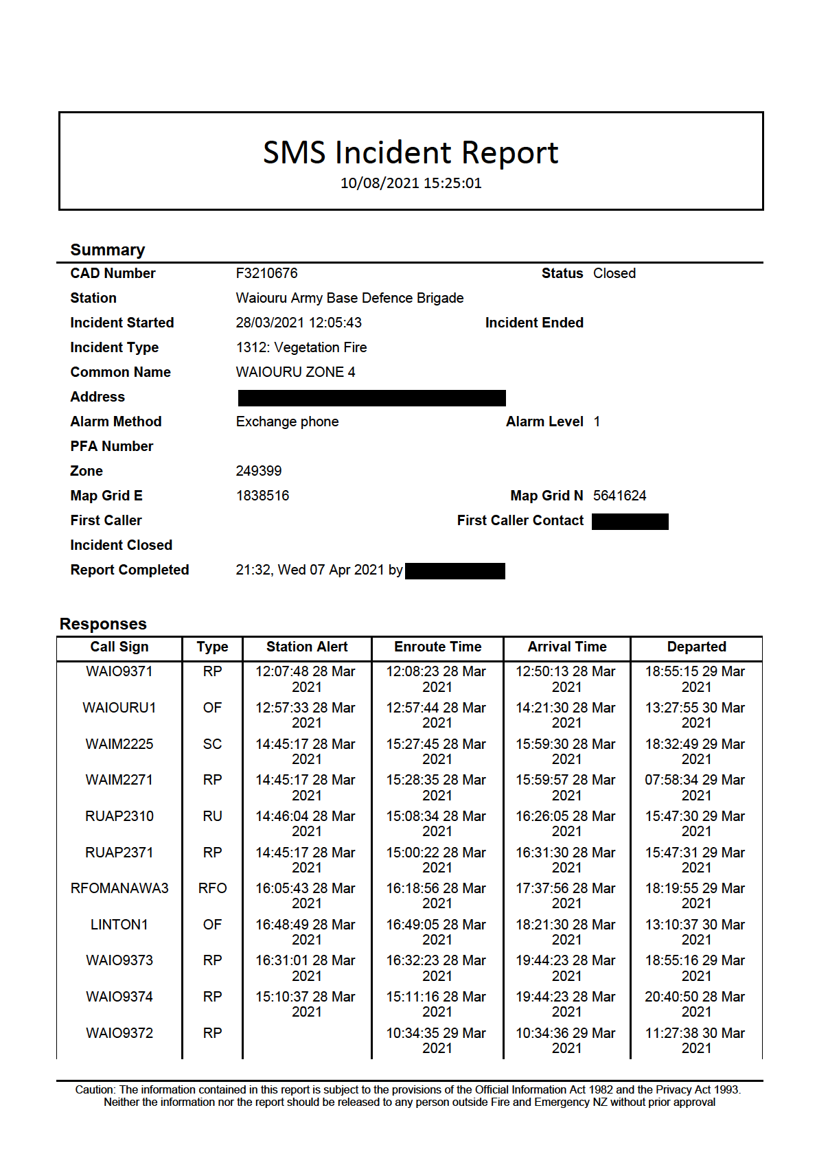 Neither the information nor the report should be released to any person outside Fire and Emergency NZ without prior approval