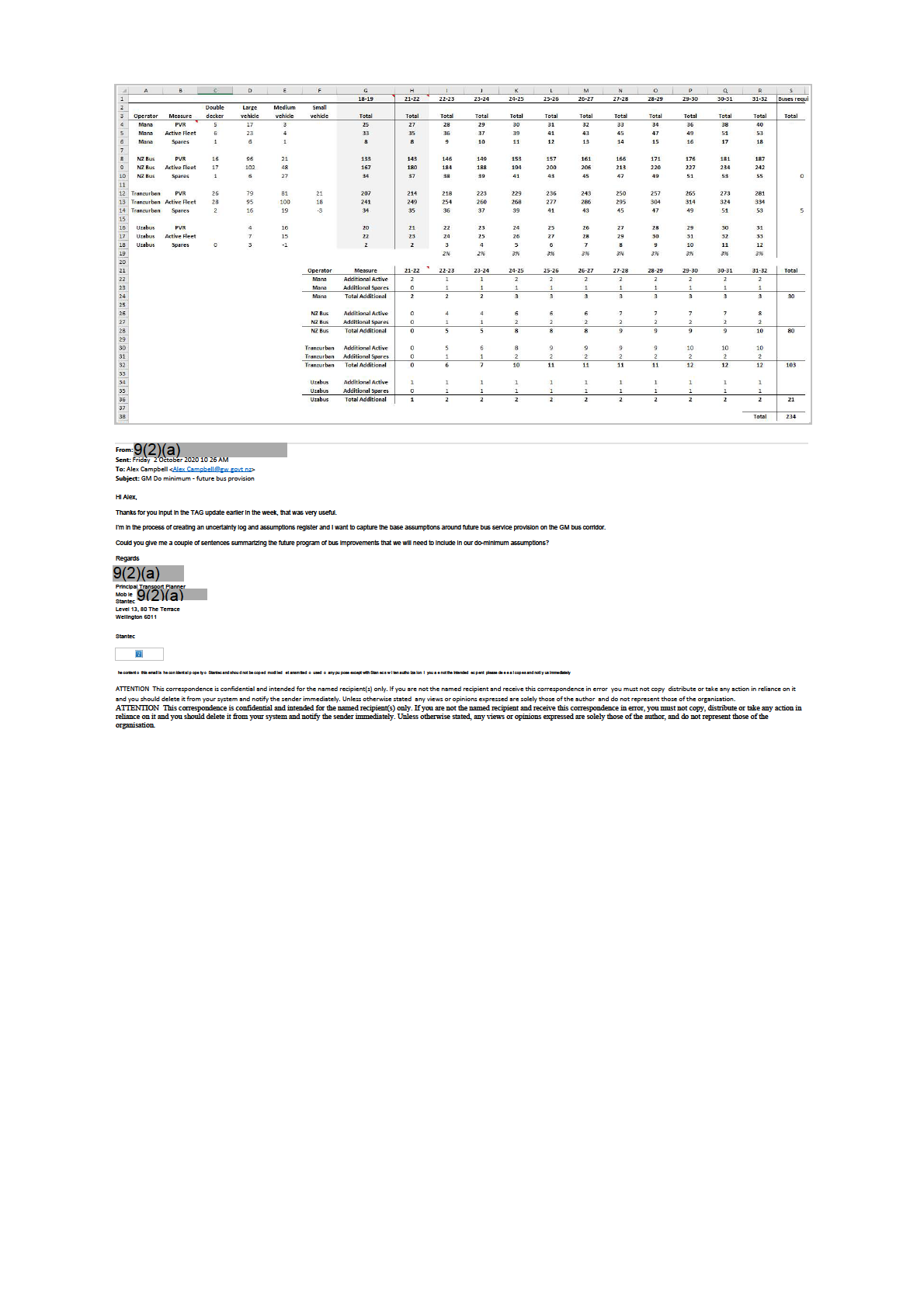 In terms of bus numbers below is a recent projection of additional PVR by bus company. Mana NZBus and Tranzurban expect almost all additional PVR to be in Wellington city so would result in an additional peak-of-the-peak service on the