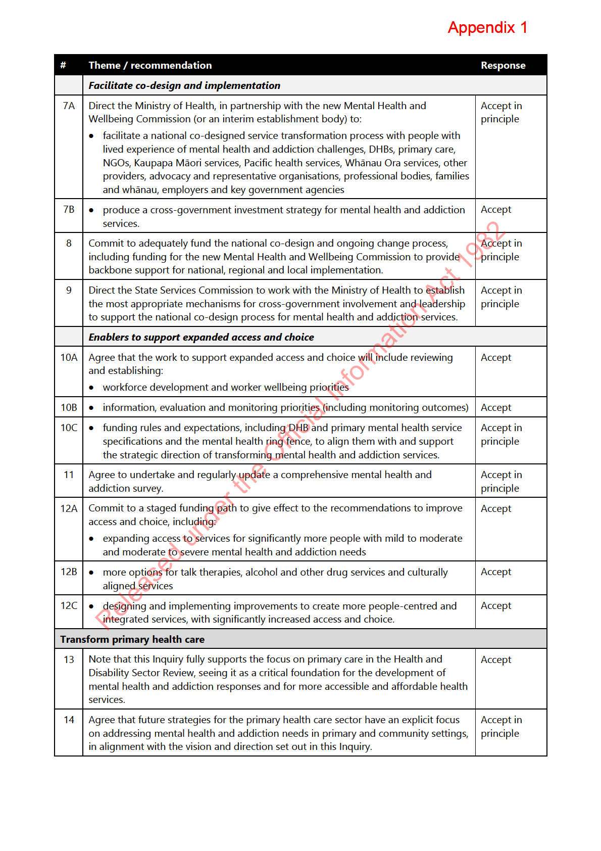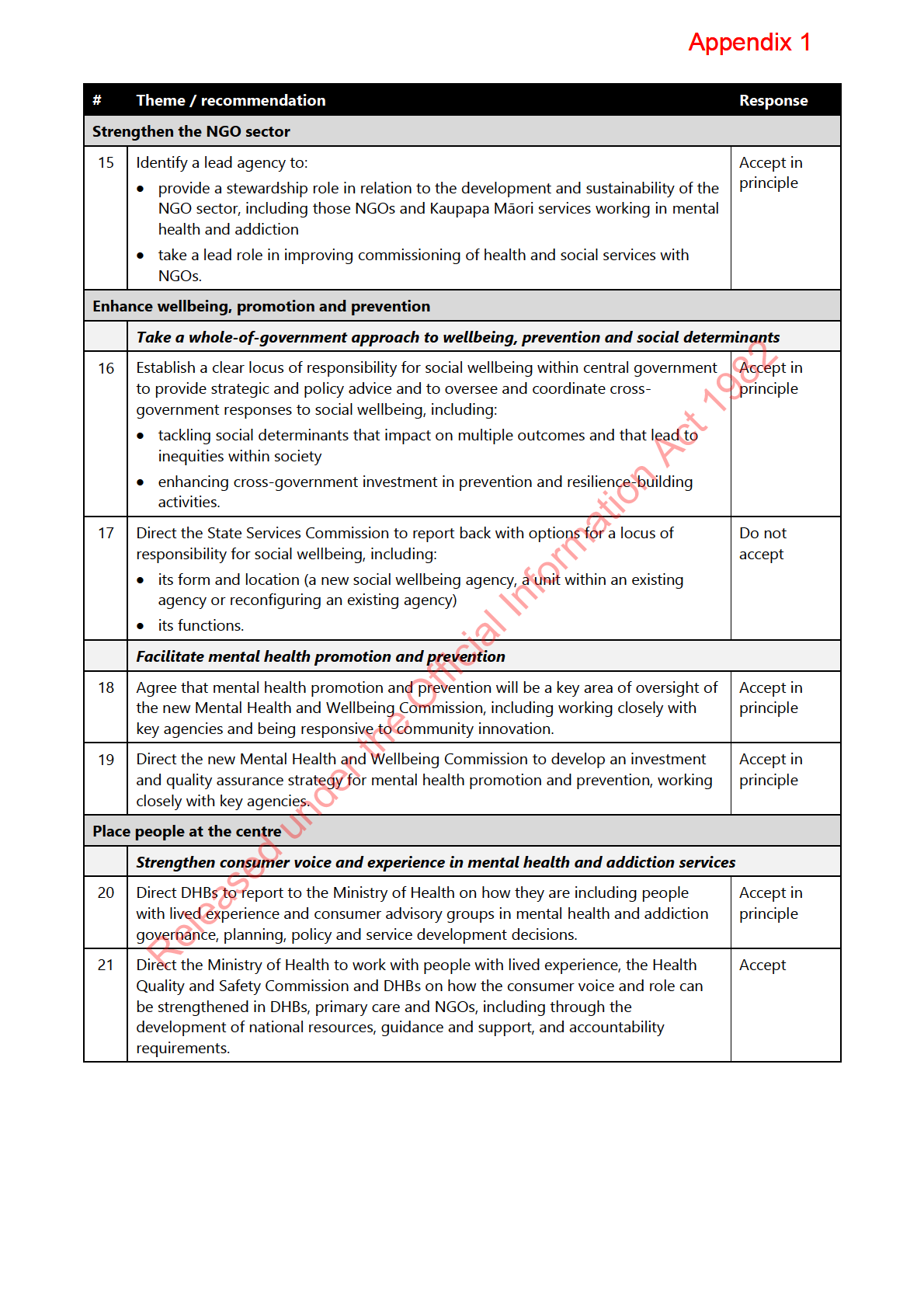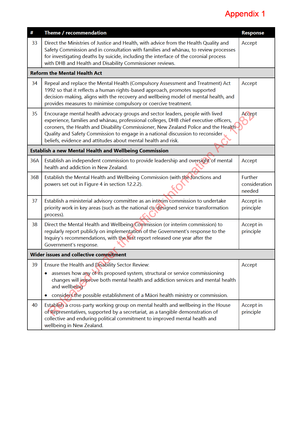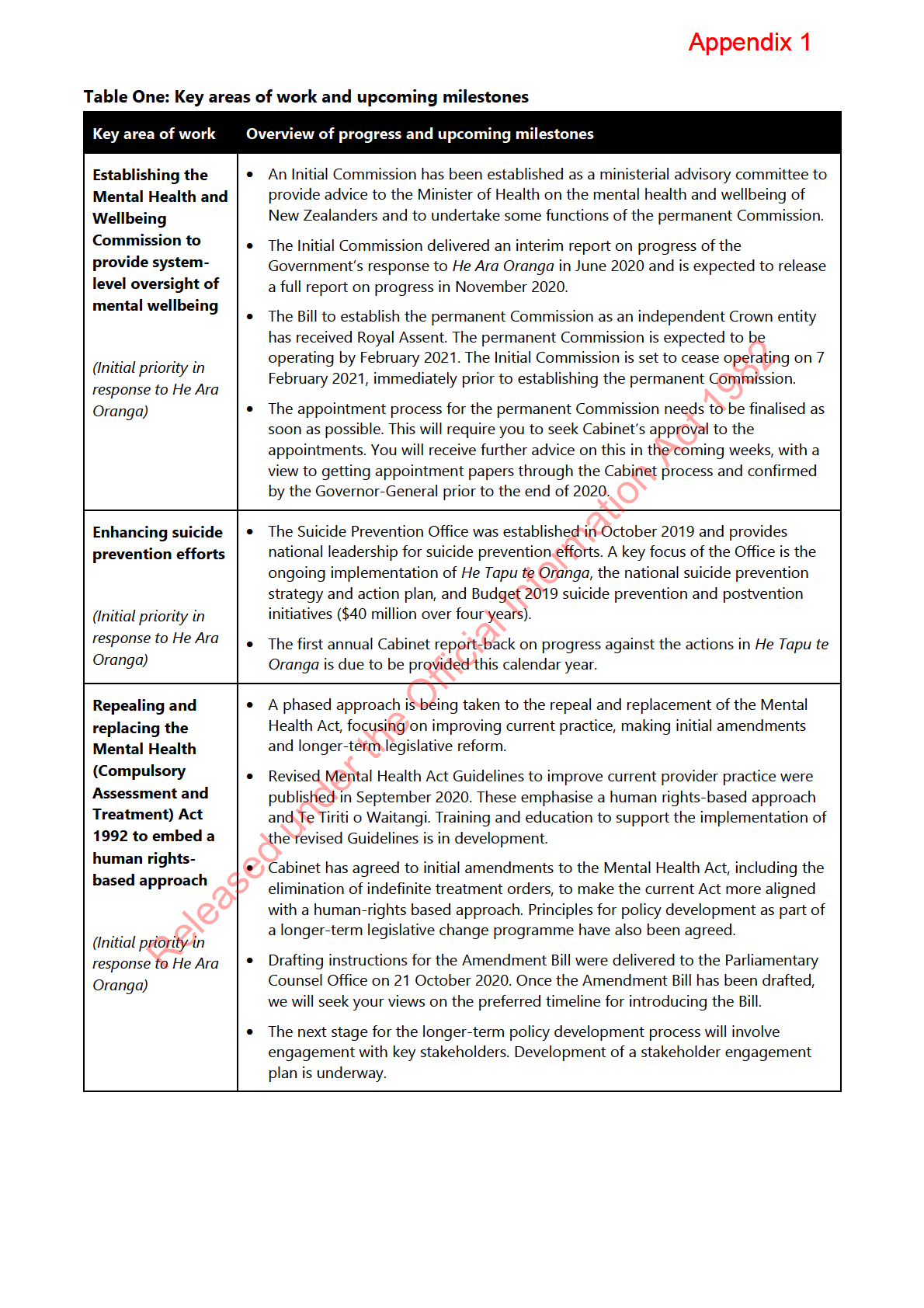 Note: This is an indicative overview of potential activities to implement priority areas of the Government’s response to He A ra Oranga and the confirmed investment in mental health and addiction. Some activities are unconfirmed and subject to future Ministerial or Cabinet decisions. This is not intended to pre-empt or advise on those decisions.