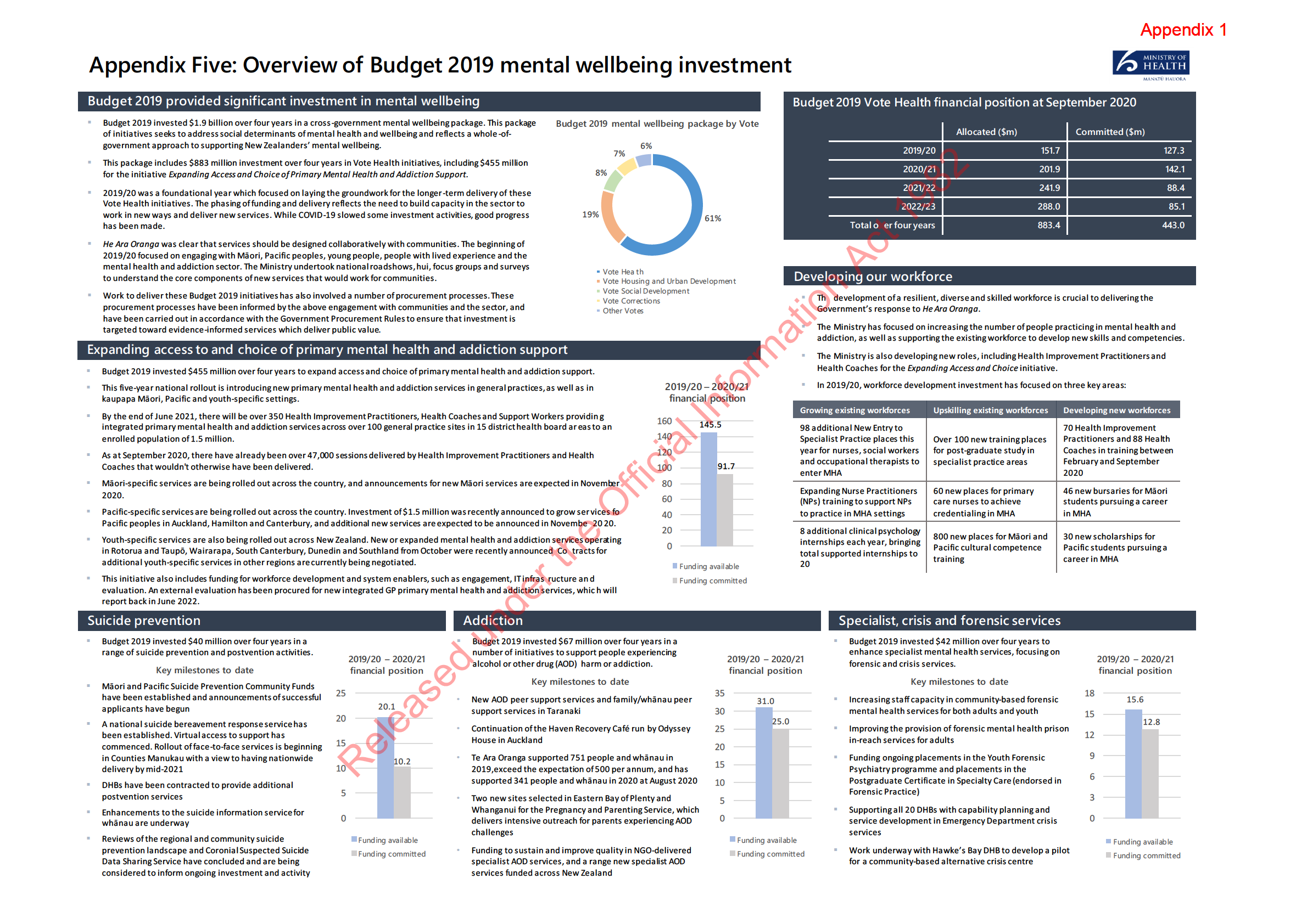 Budget 2019 investment of $1.9 billion in a cross-government mental wellbeing package.
