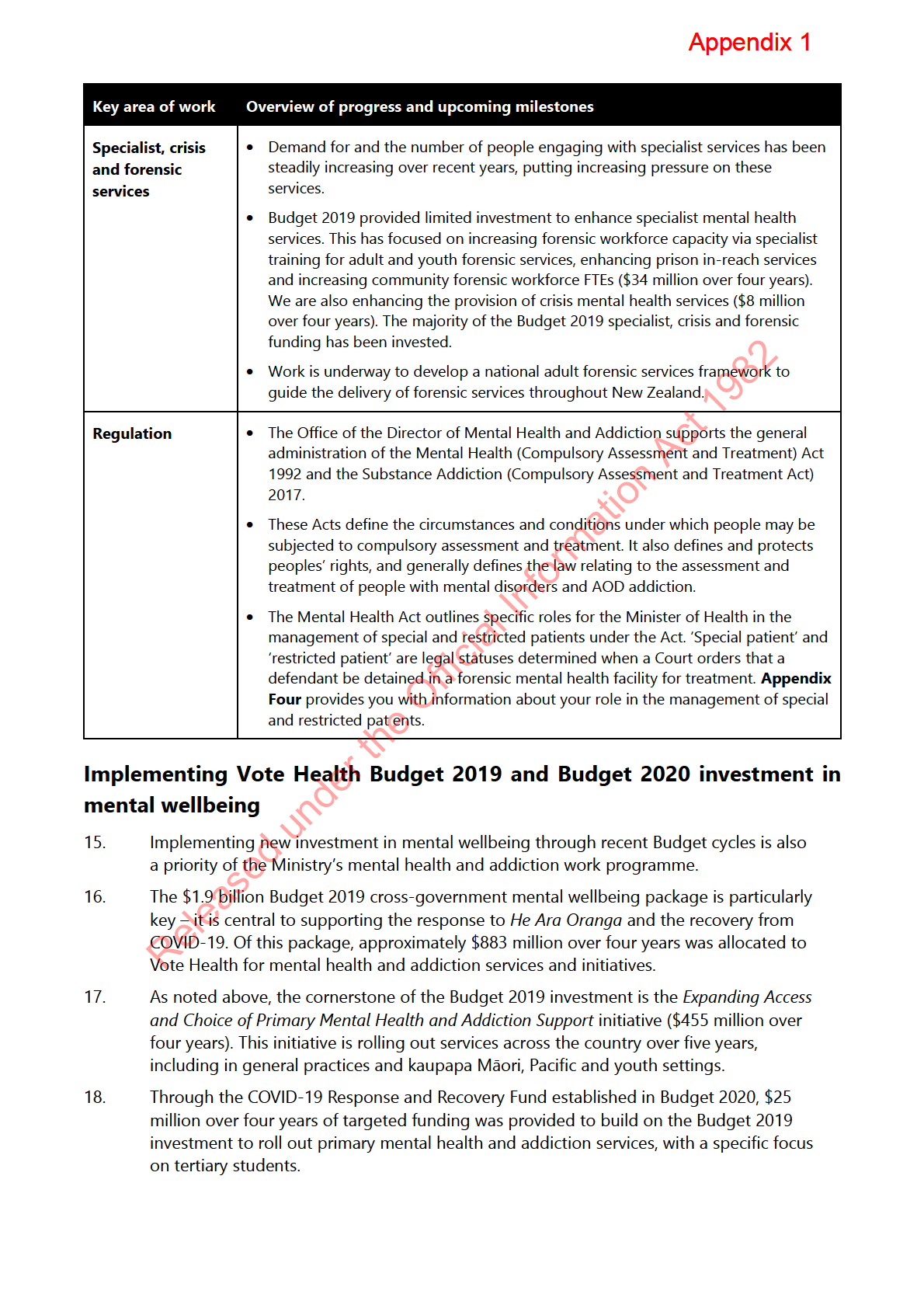 mental health and addiction work and your ministerial responsibilities under the Mental
