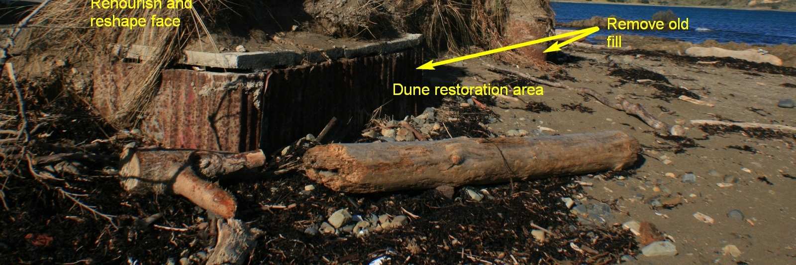 restoration. It may not be possible to establish a functional dune at this pinch point.