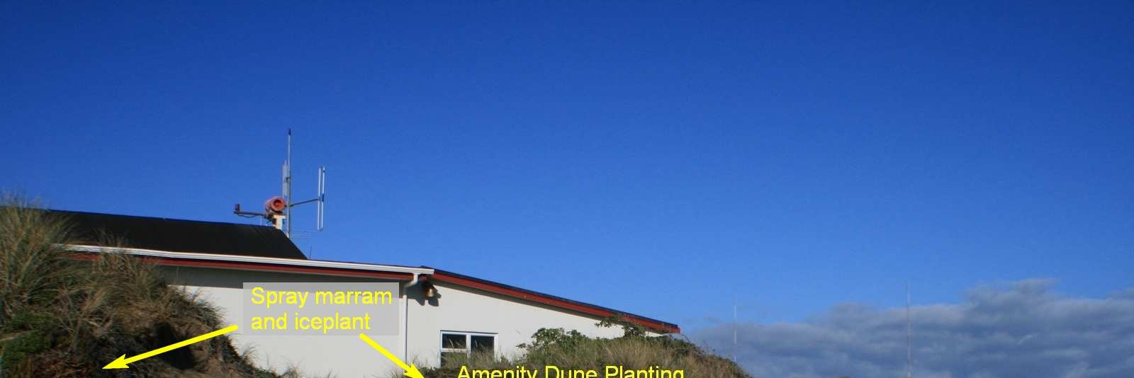 The dunes in front of the Plimmerton Fire Station have experienced ongoing erosion