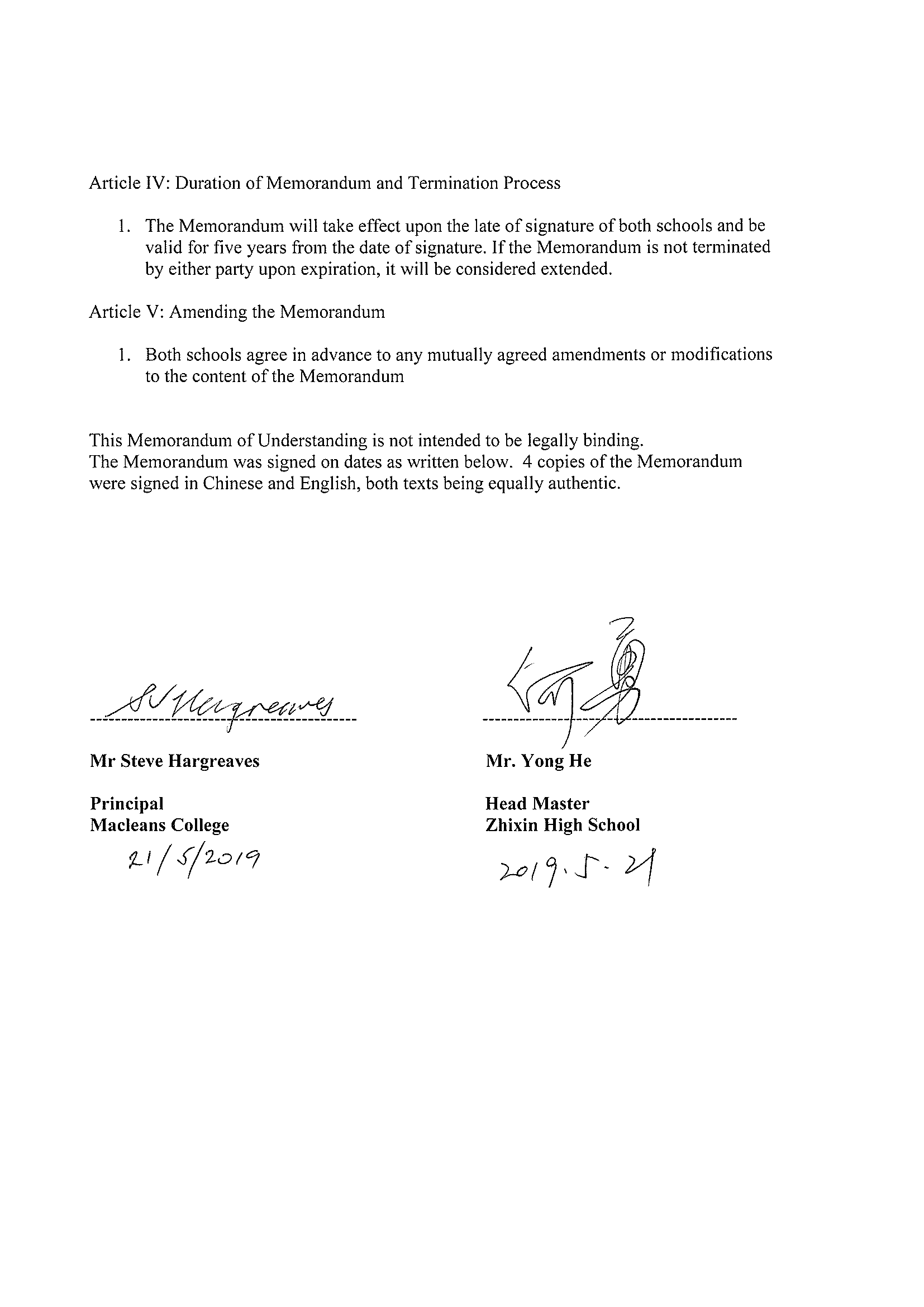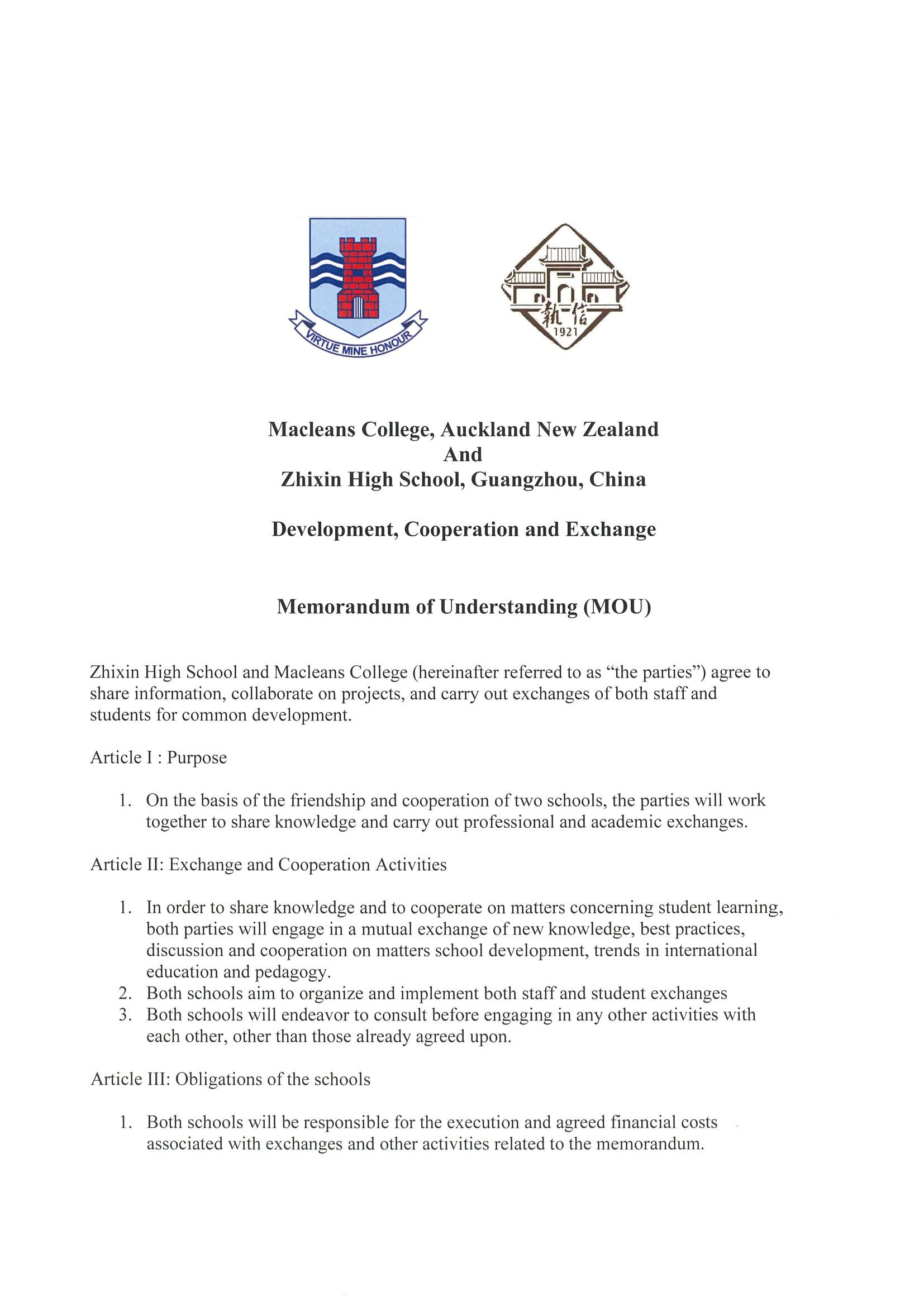 OIA act request Memorandum of Understanding signing ceremony between Zhixin High School