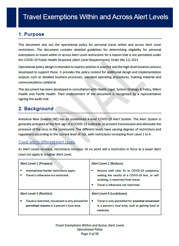 approved exemptions for travel across an Alert Level boundary. (as of Ministry of