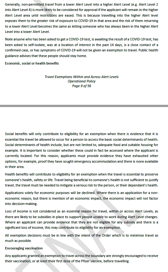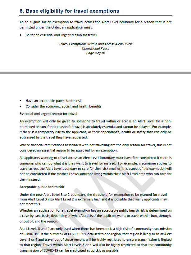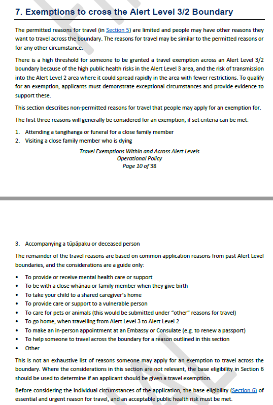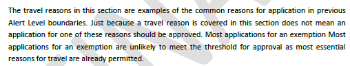 travel exemptions across the alert level boundary.
