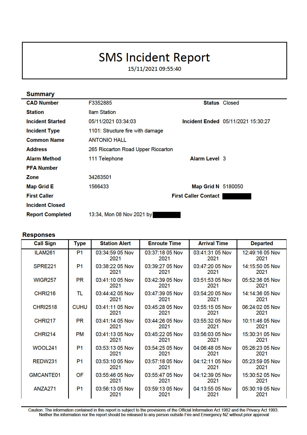 Neither the information nor the report should be released to any person outside Fire and Emergency NZ without prior approval