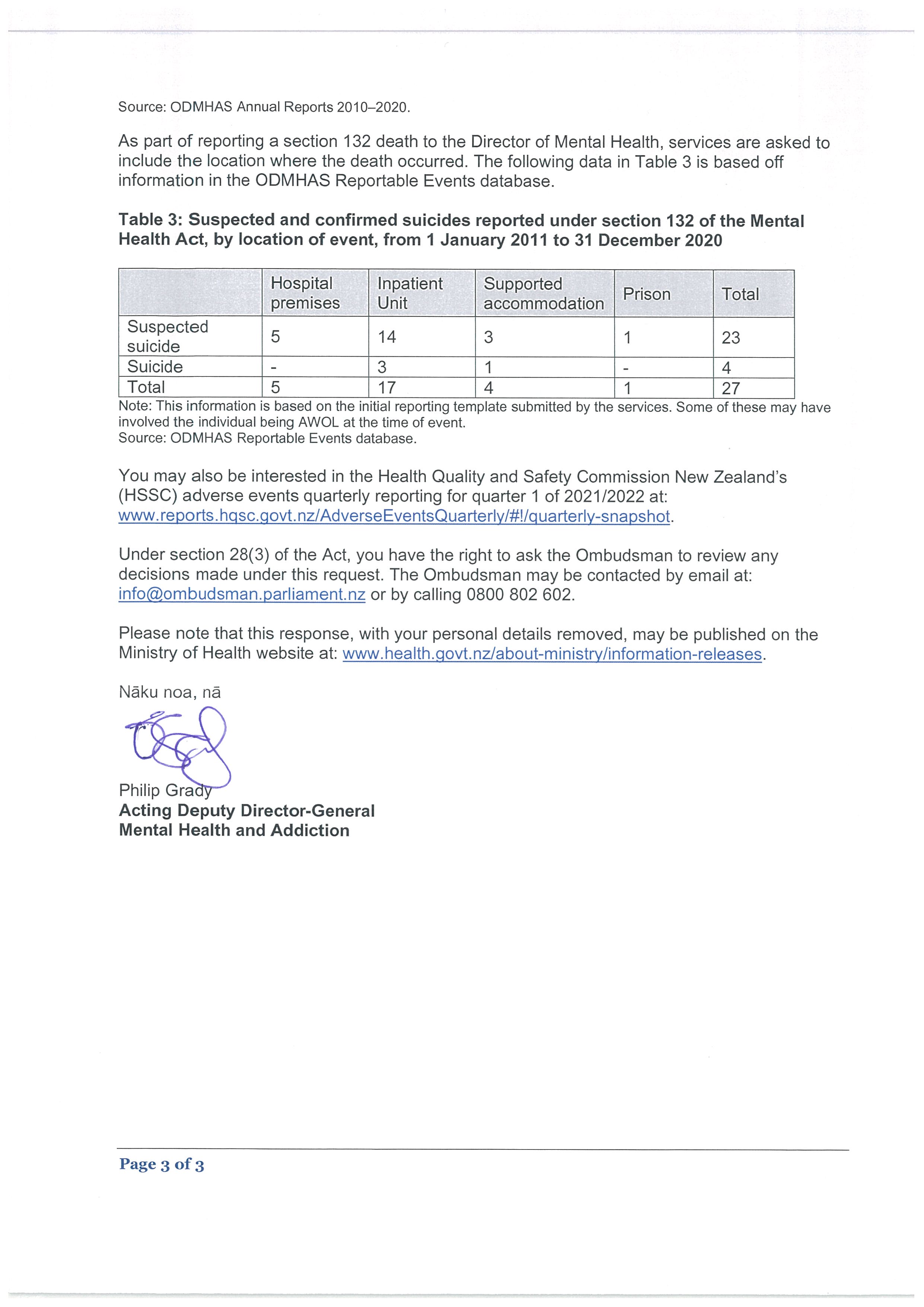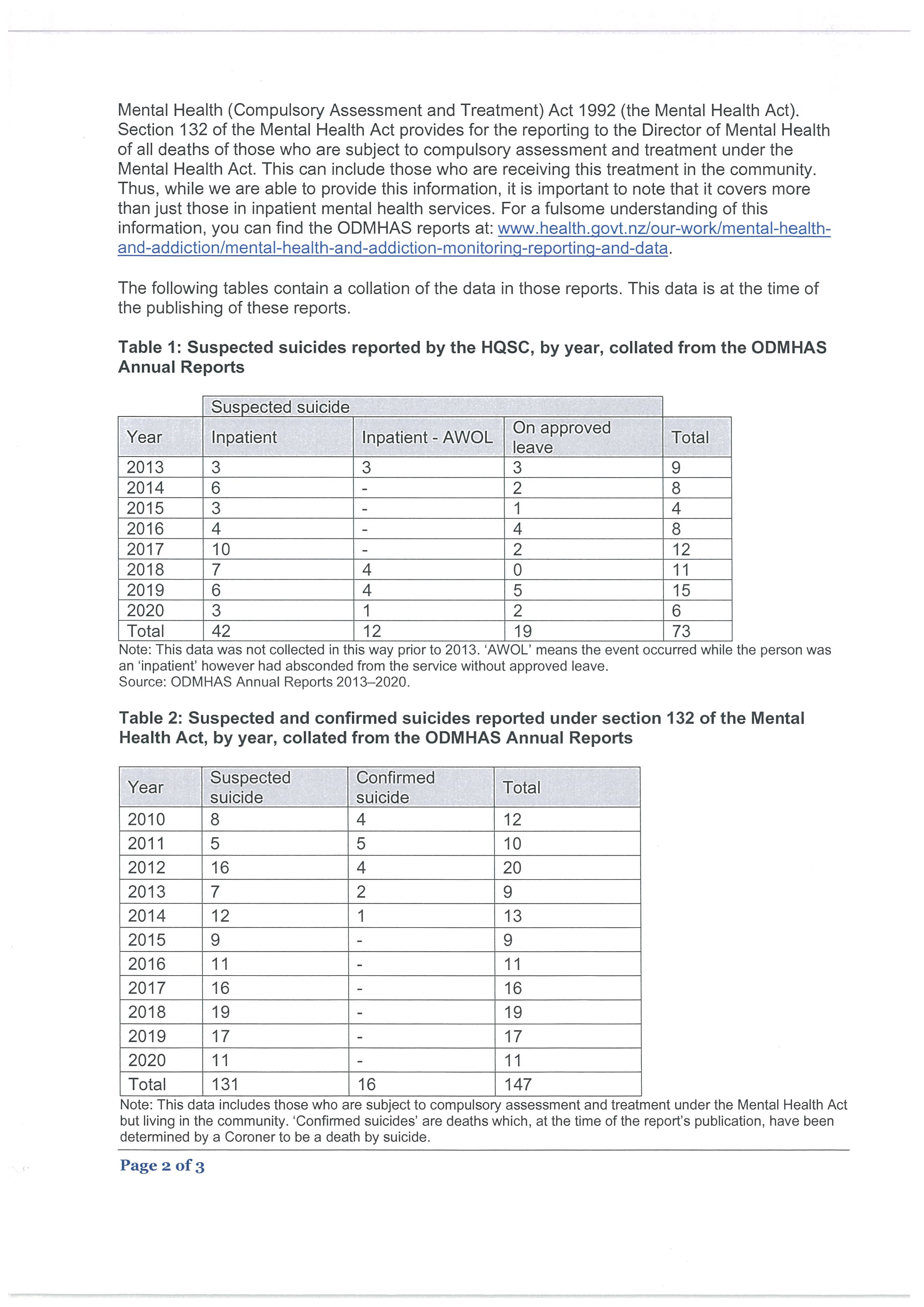 . information on the number of people who have died in New Zealand by suicide or