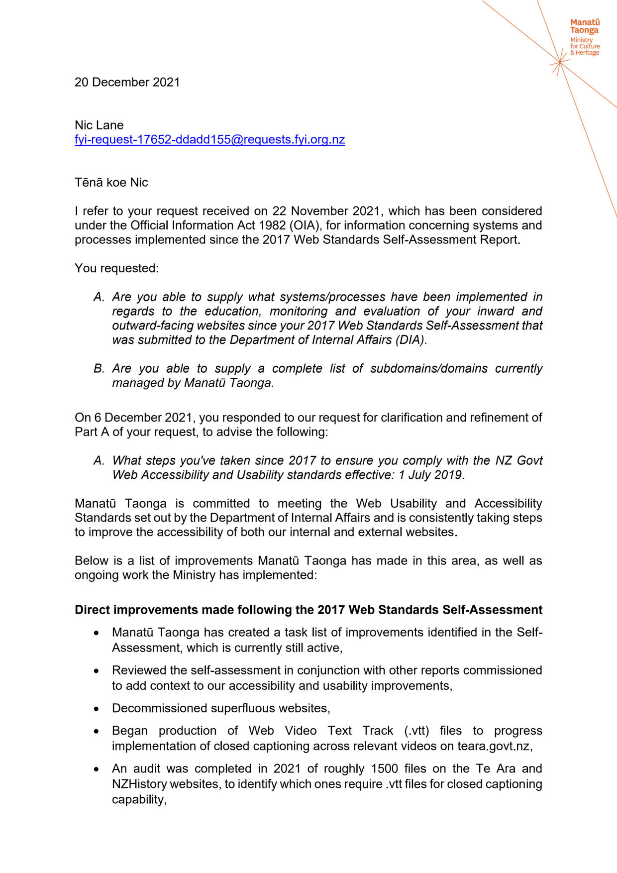 b) New video content uploaded onto Te Tai now have closed captioning,