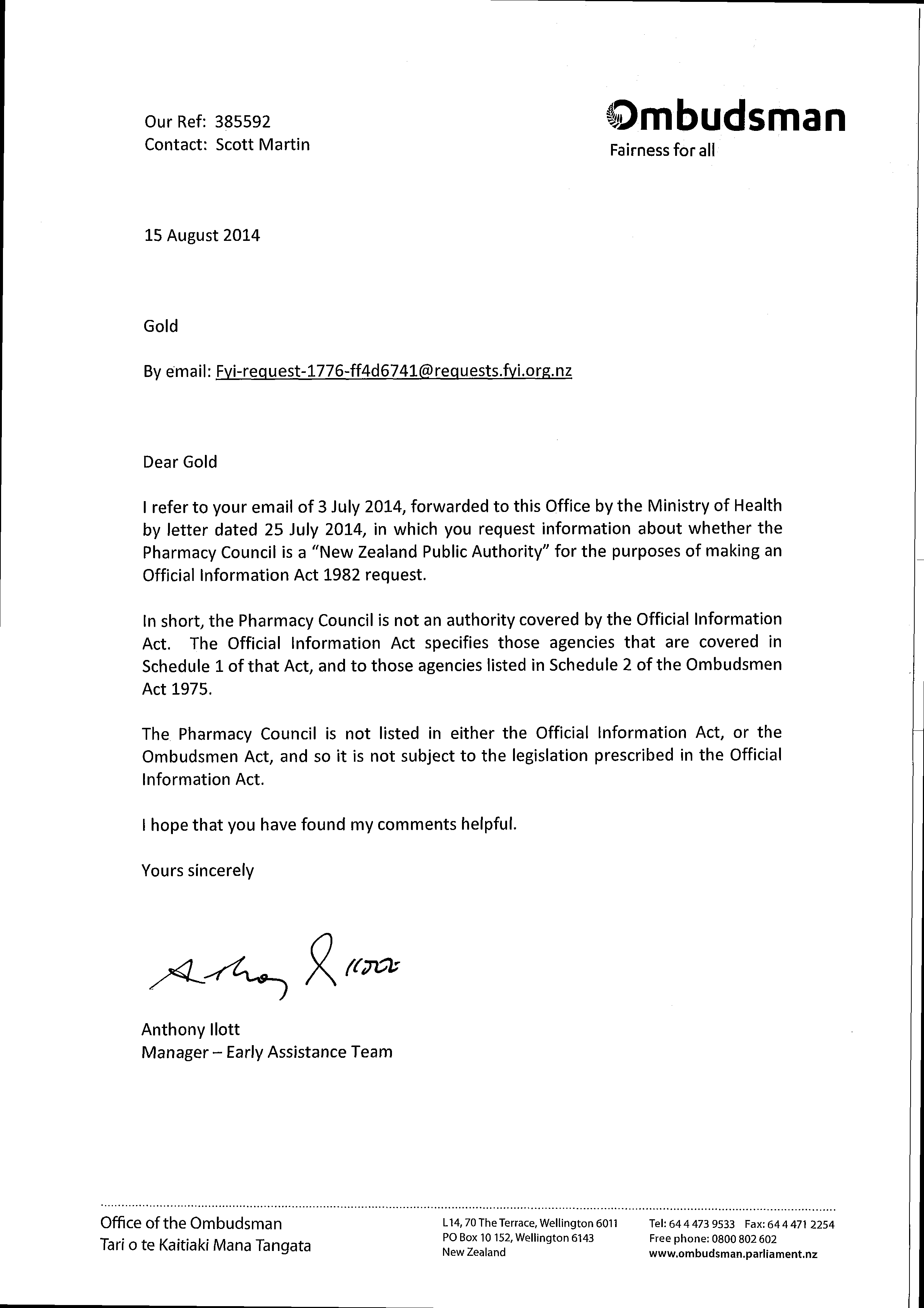 In short, the Pharmacy Council is not an authority covered by the Official Information