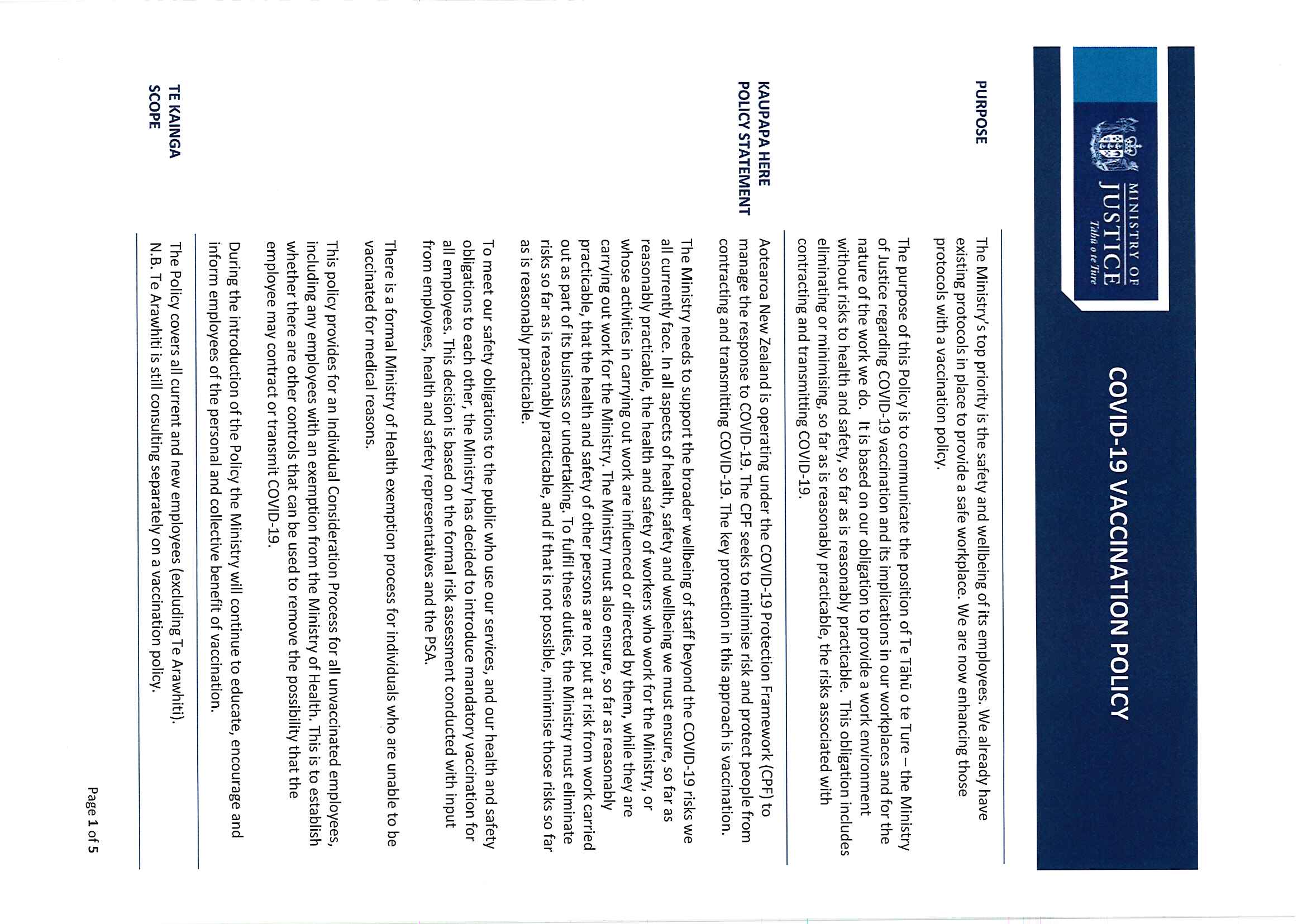 Enclosed with this letter, I am supplying you with the Ministry of Justice, COVID-19 Vaccination