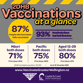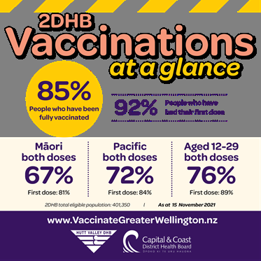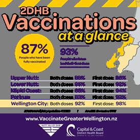 90% of eligible people in Upper Hutt, Kāpiti and Wel ington City are now ful y vaccinated, while 90% have had their first dose