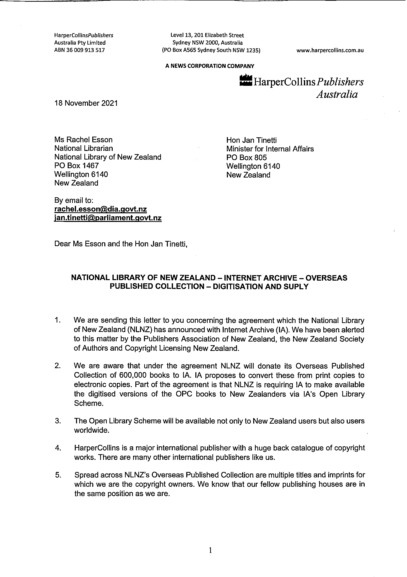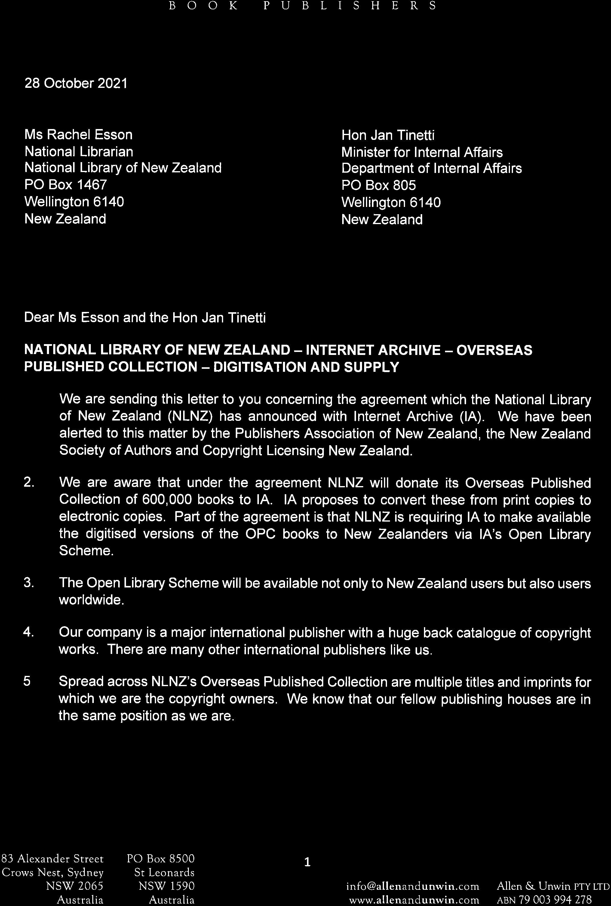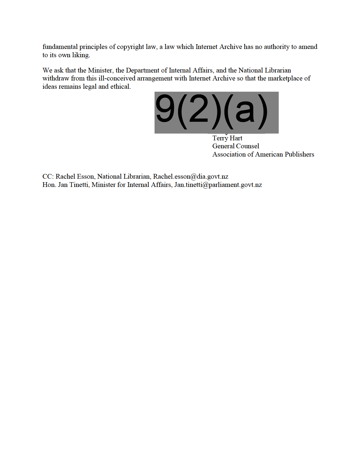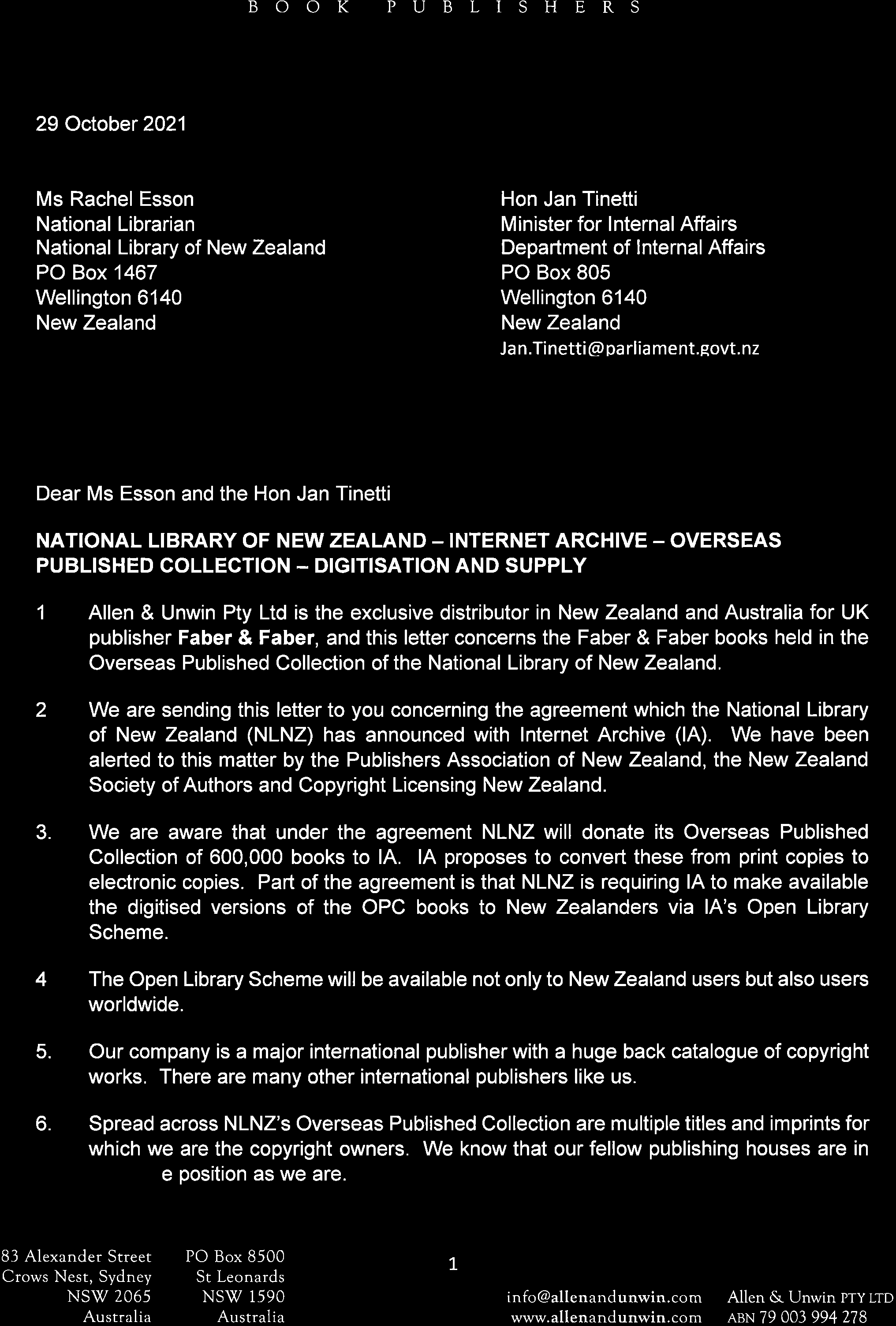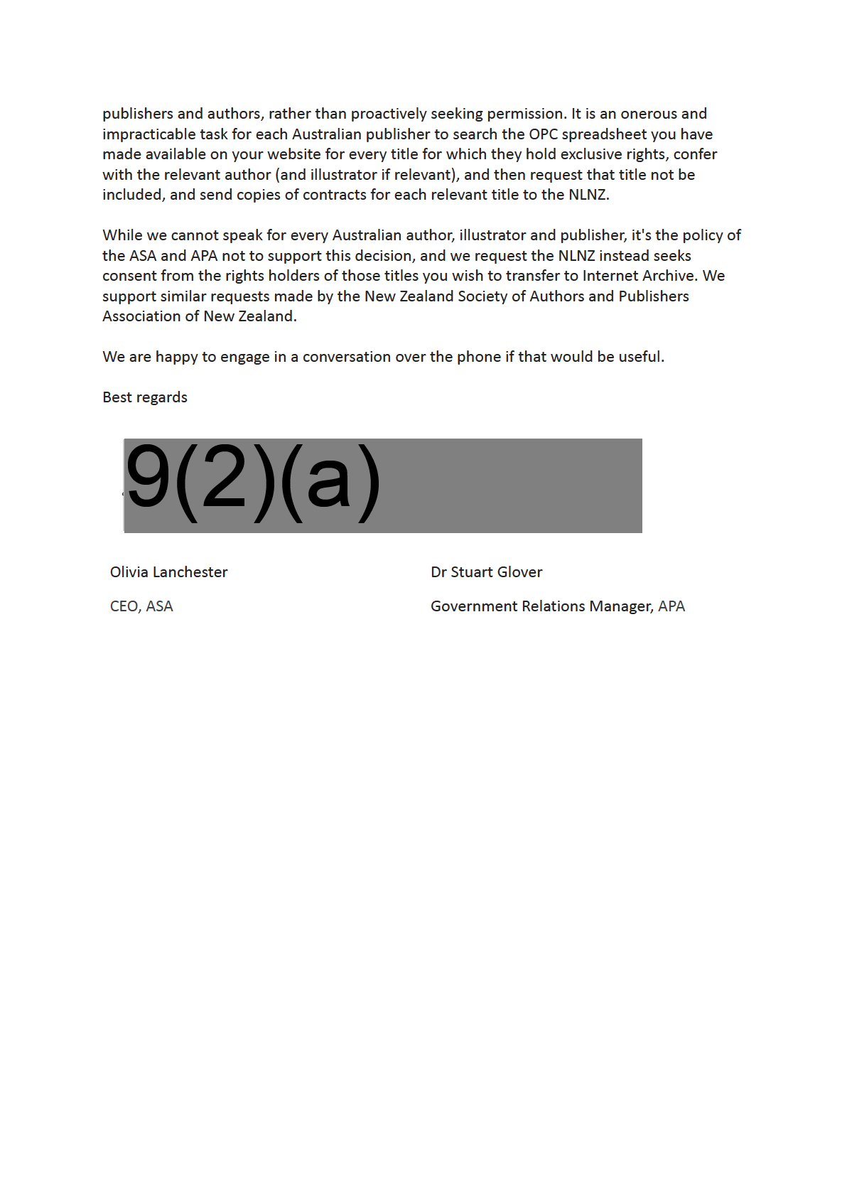 This letter is being sent on behalf of the Publishers Association of New Zealand, New