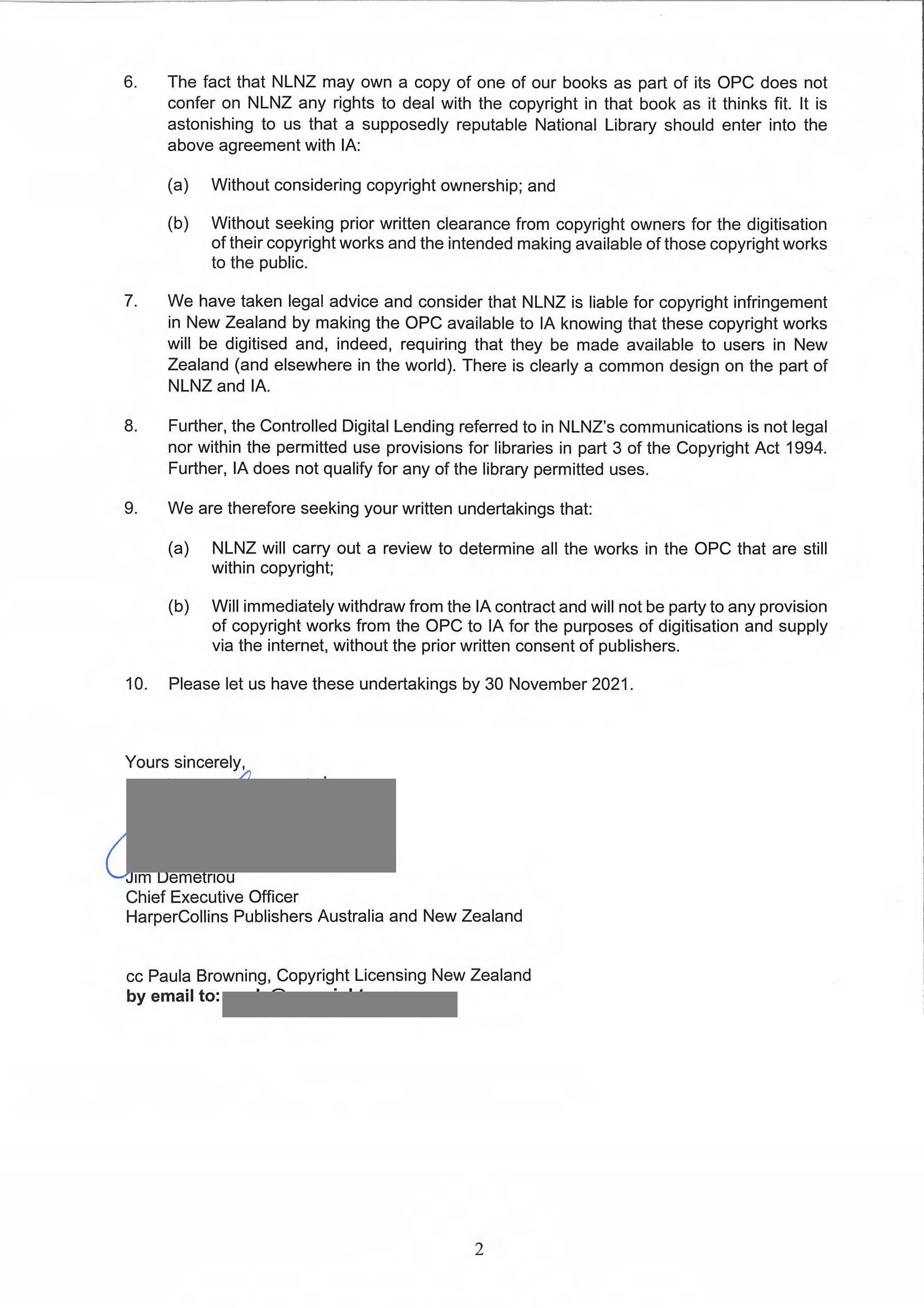 The fact that NLNZ may own a copy of one of our books as part of its OPC does not confer on