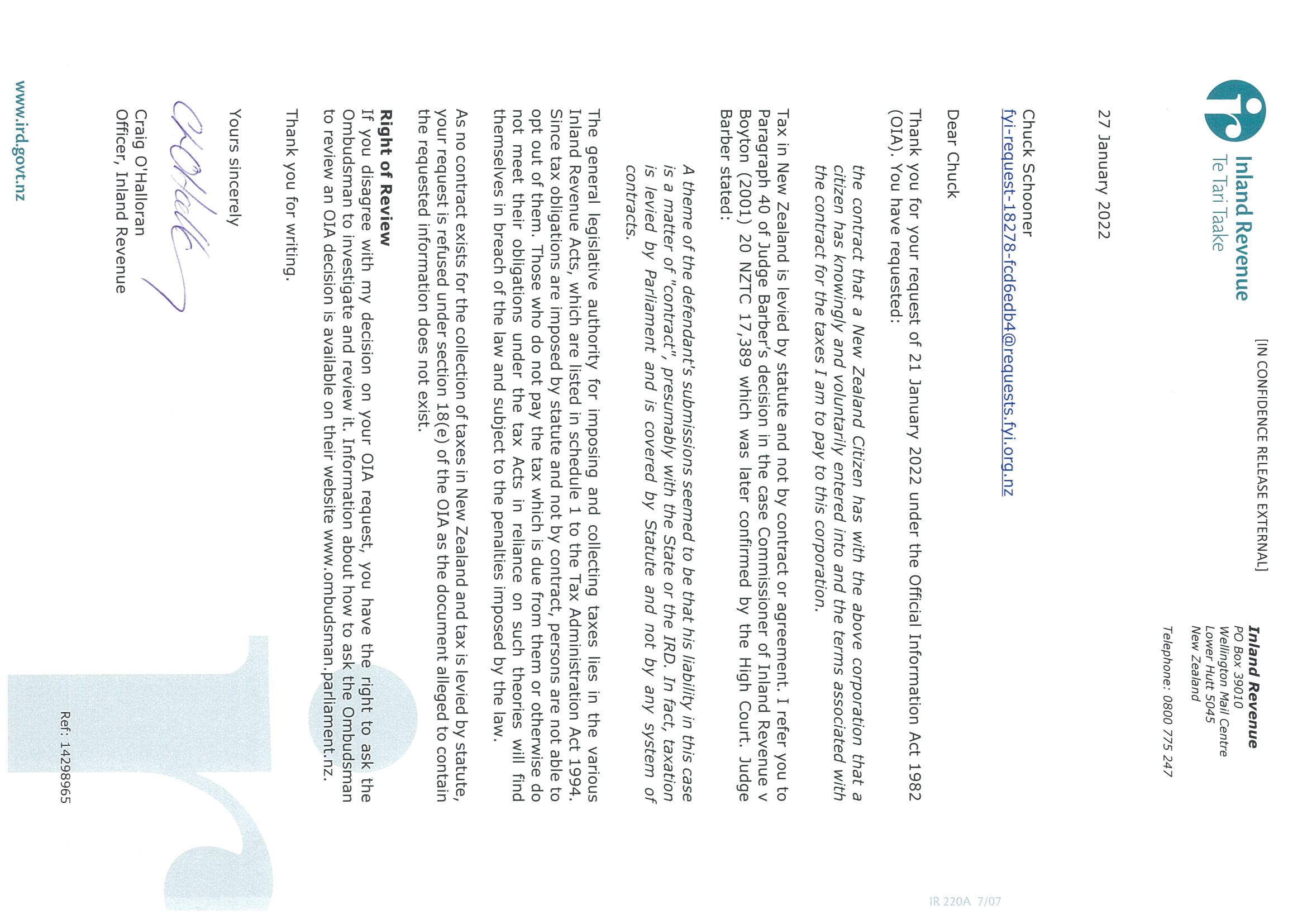 Contract to Pay Taxes with the New Zealand Corporation