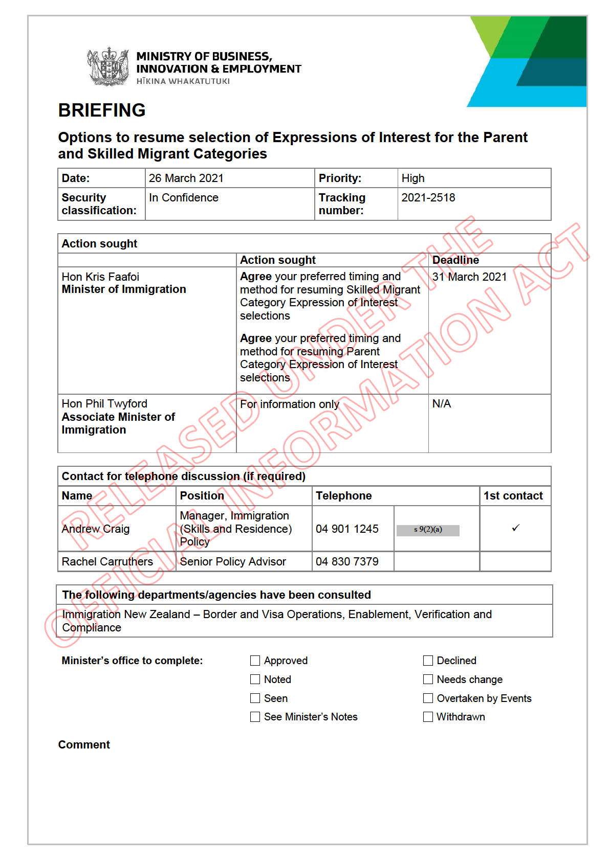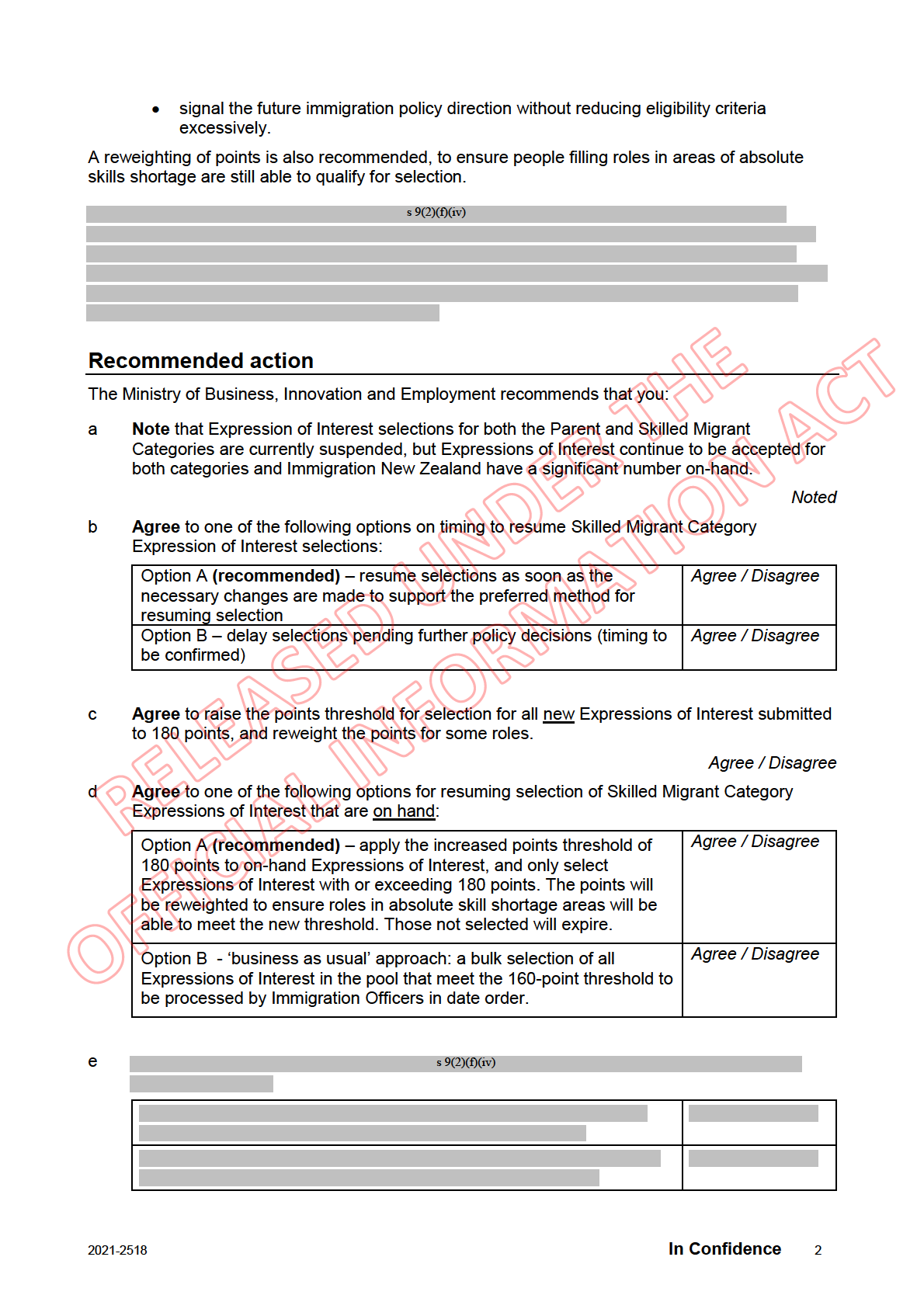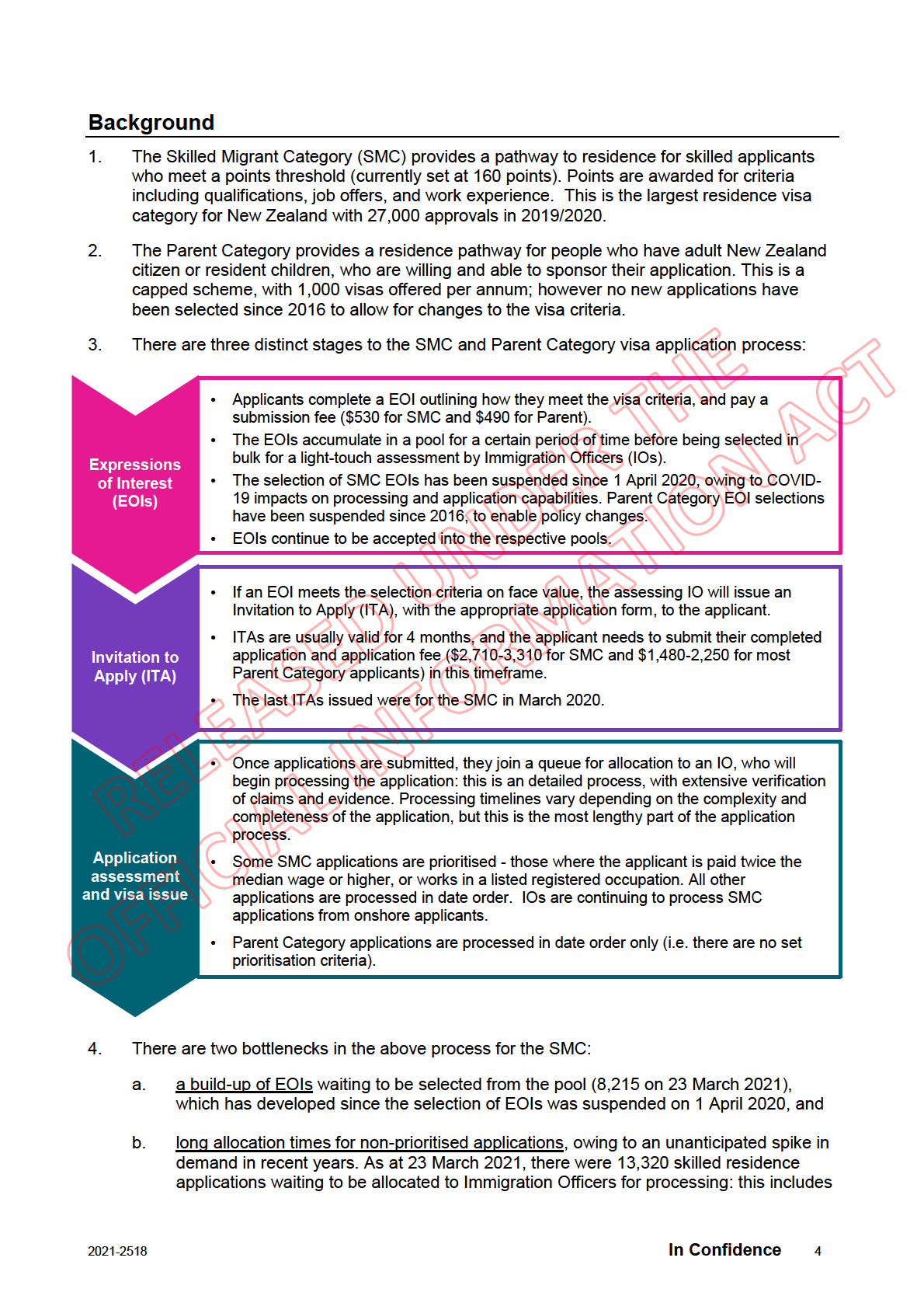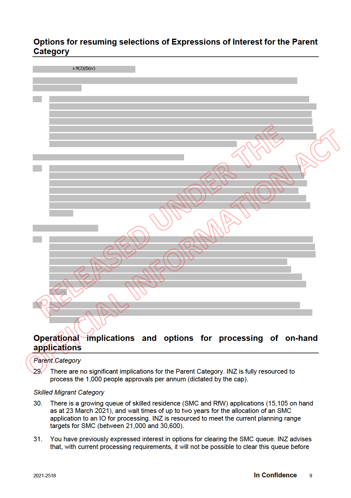 (EOIs) for the Parent and Skilled Migrant residence visa categories, which have been