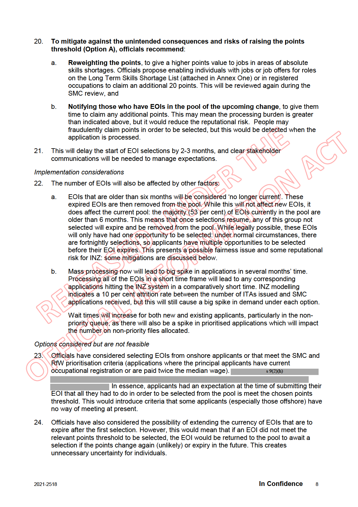 their points, INZ estimates that the number of EOIs selected at the higher threshold would decrease by