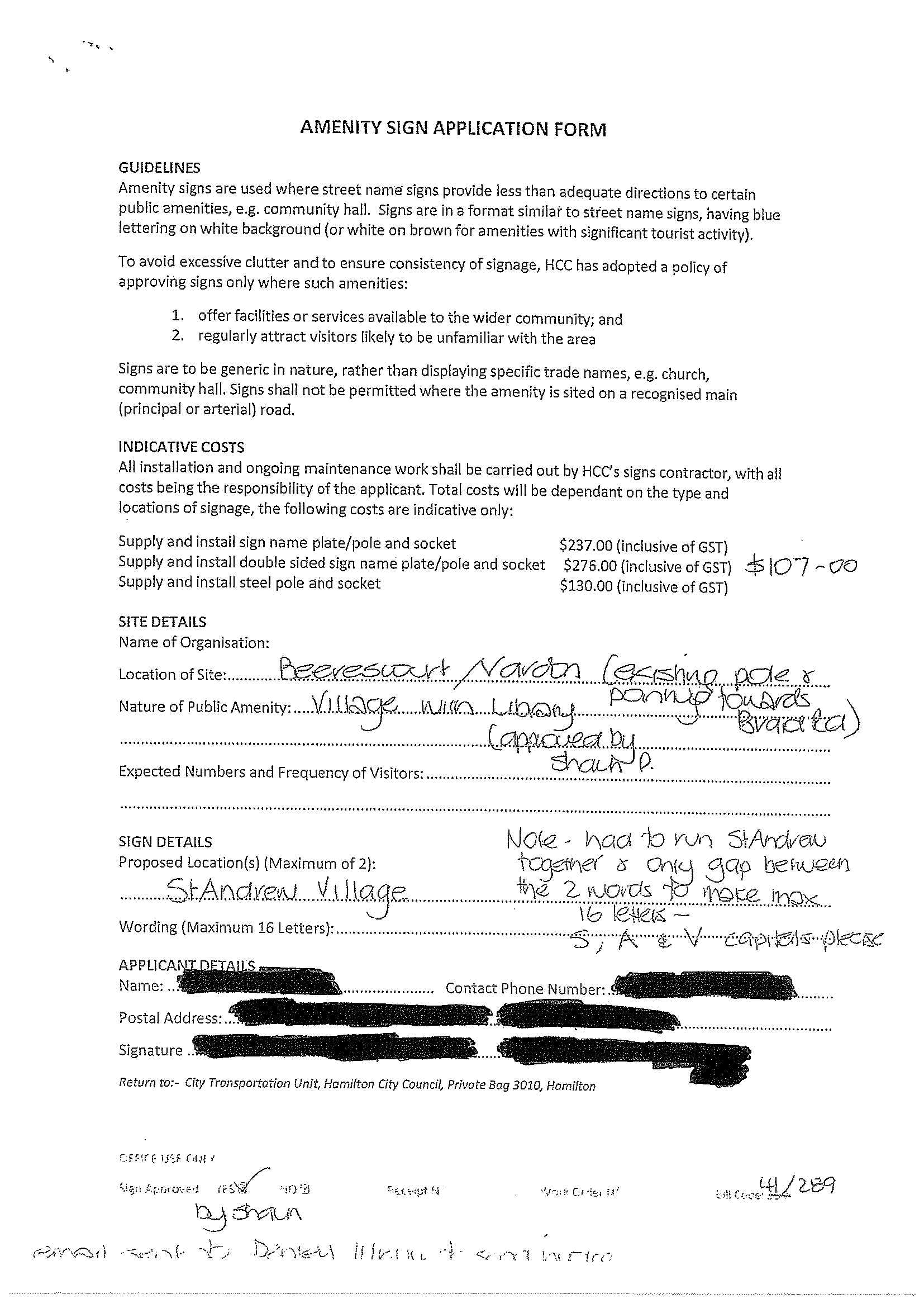 Amenity sign for "St. Andrew Village"