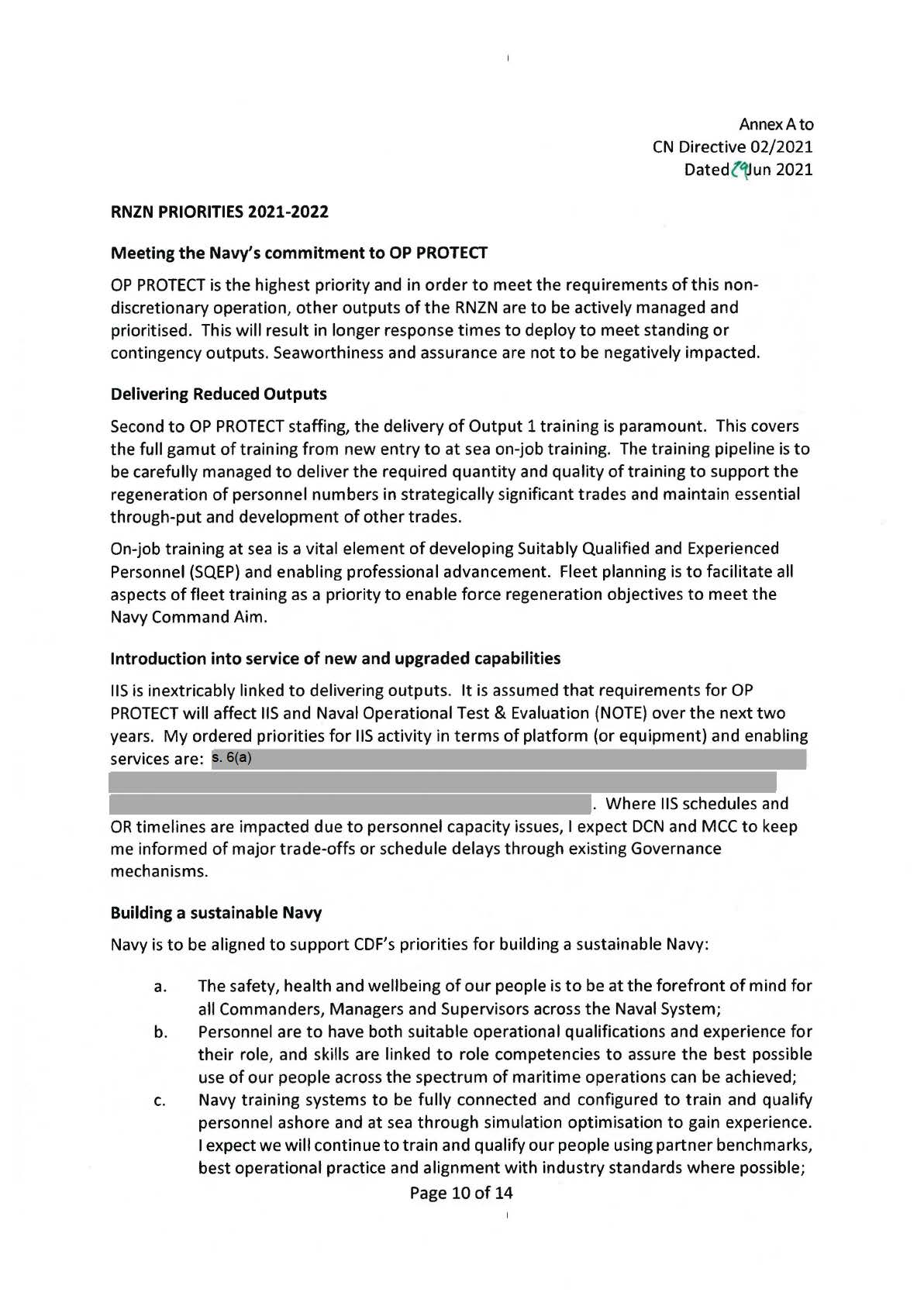 RELEASED UNDER THE OFFICIAL INFORMATION ACT 1982