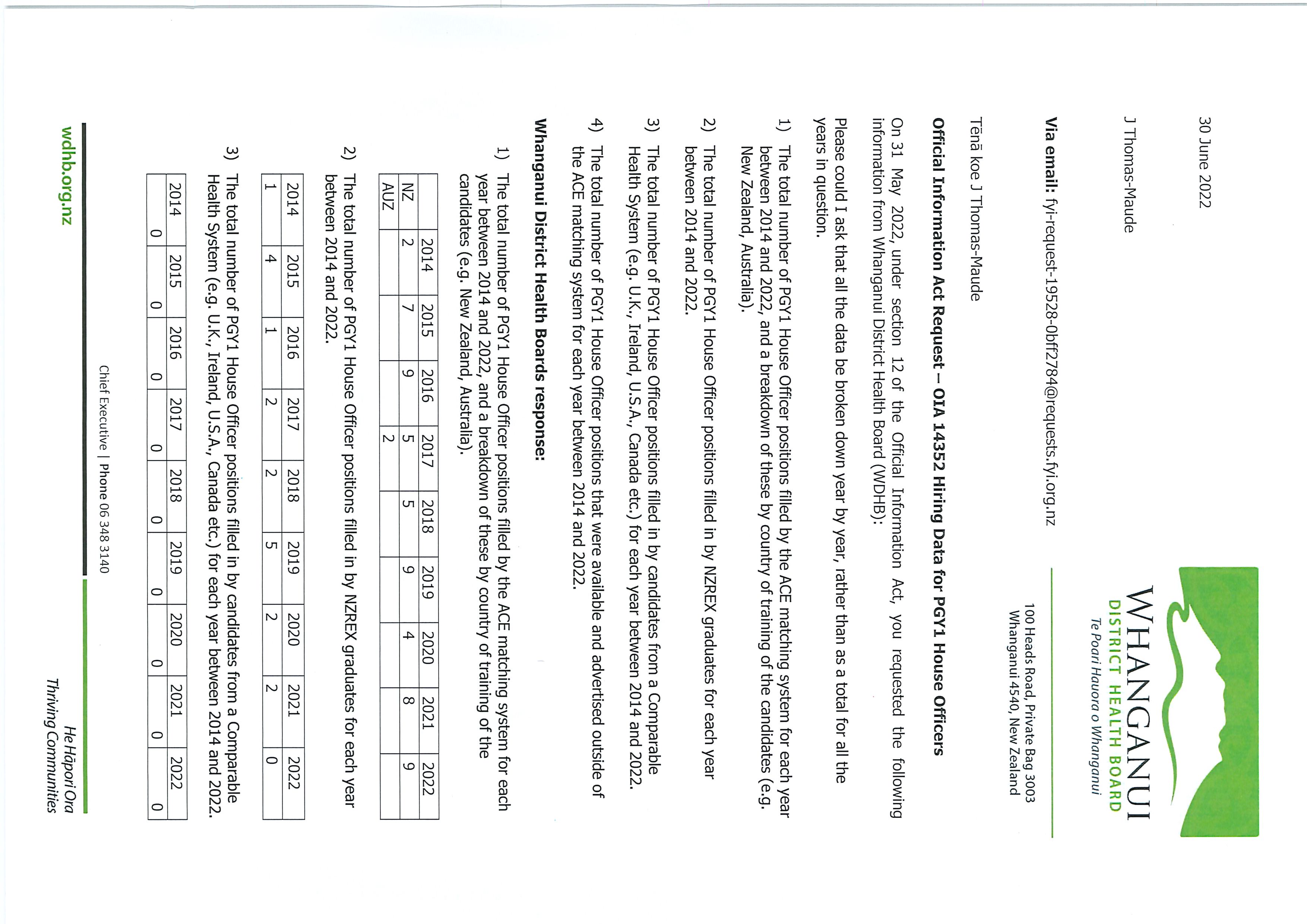Hiring data for PGY1 House Officers