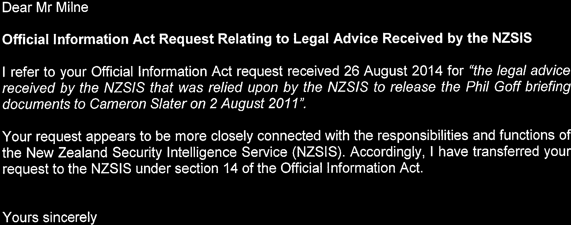Legal Advice relied upon to release Goff Briefing