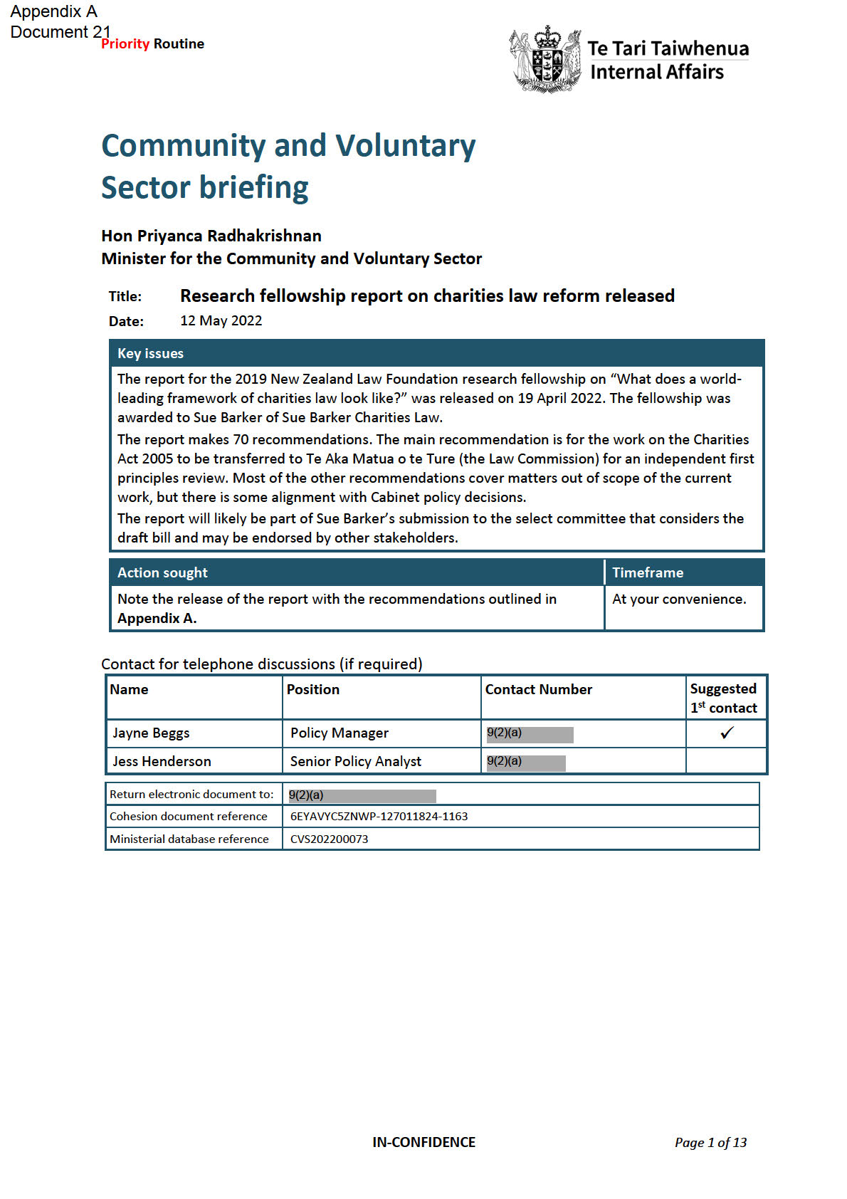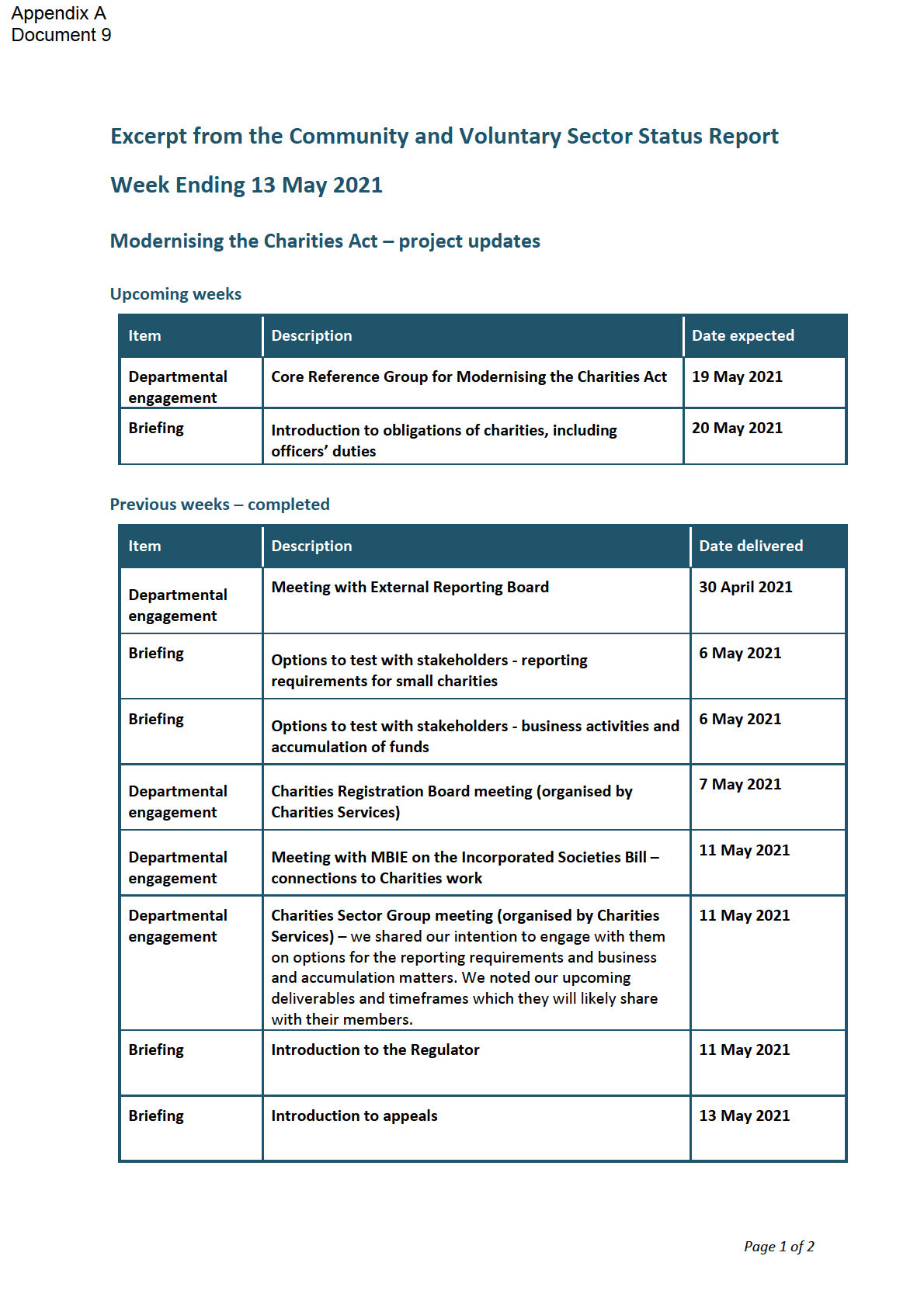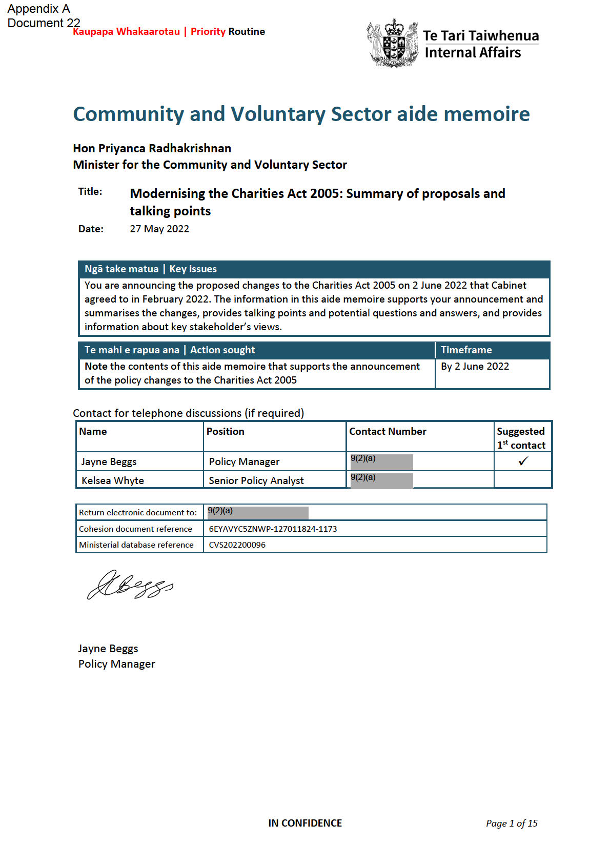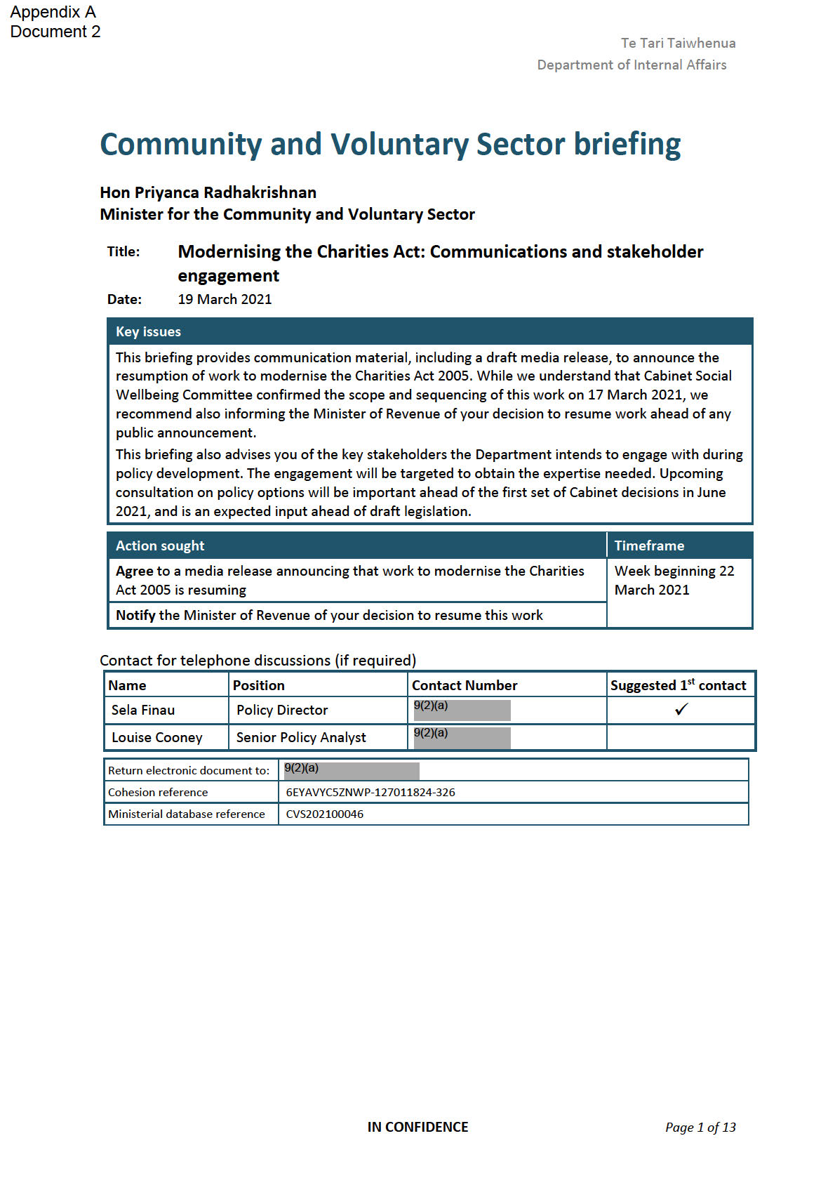 This aide memoire supports your oral item at the Cabinet Social Wellbeing Committee