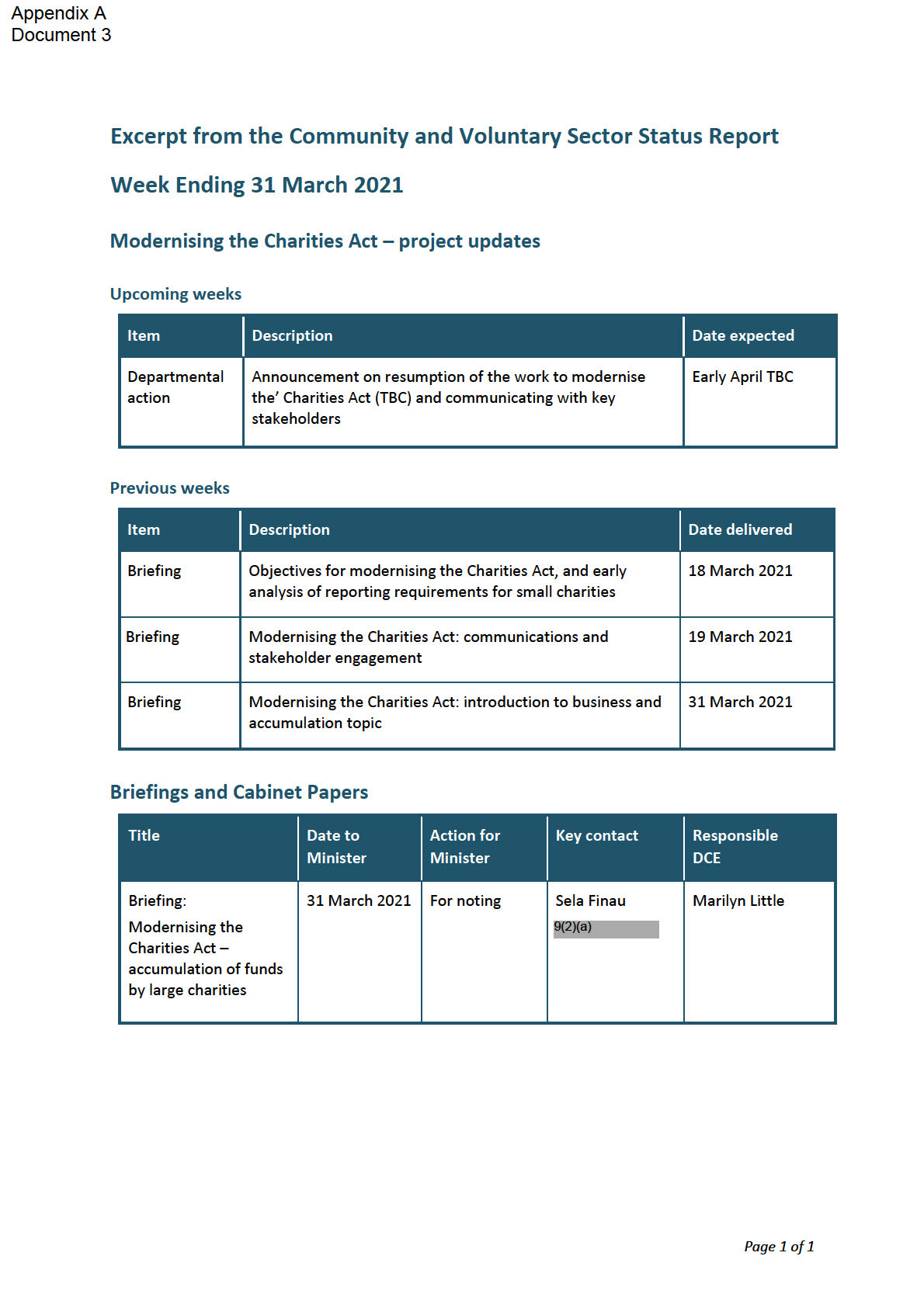 Appendix A: Oral item Cabinet Social Wellbeing Committee 17 March 2021 -