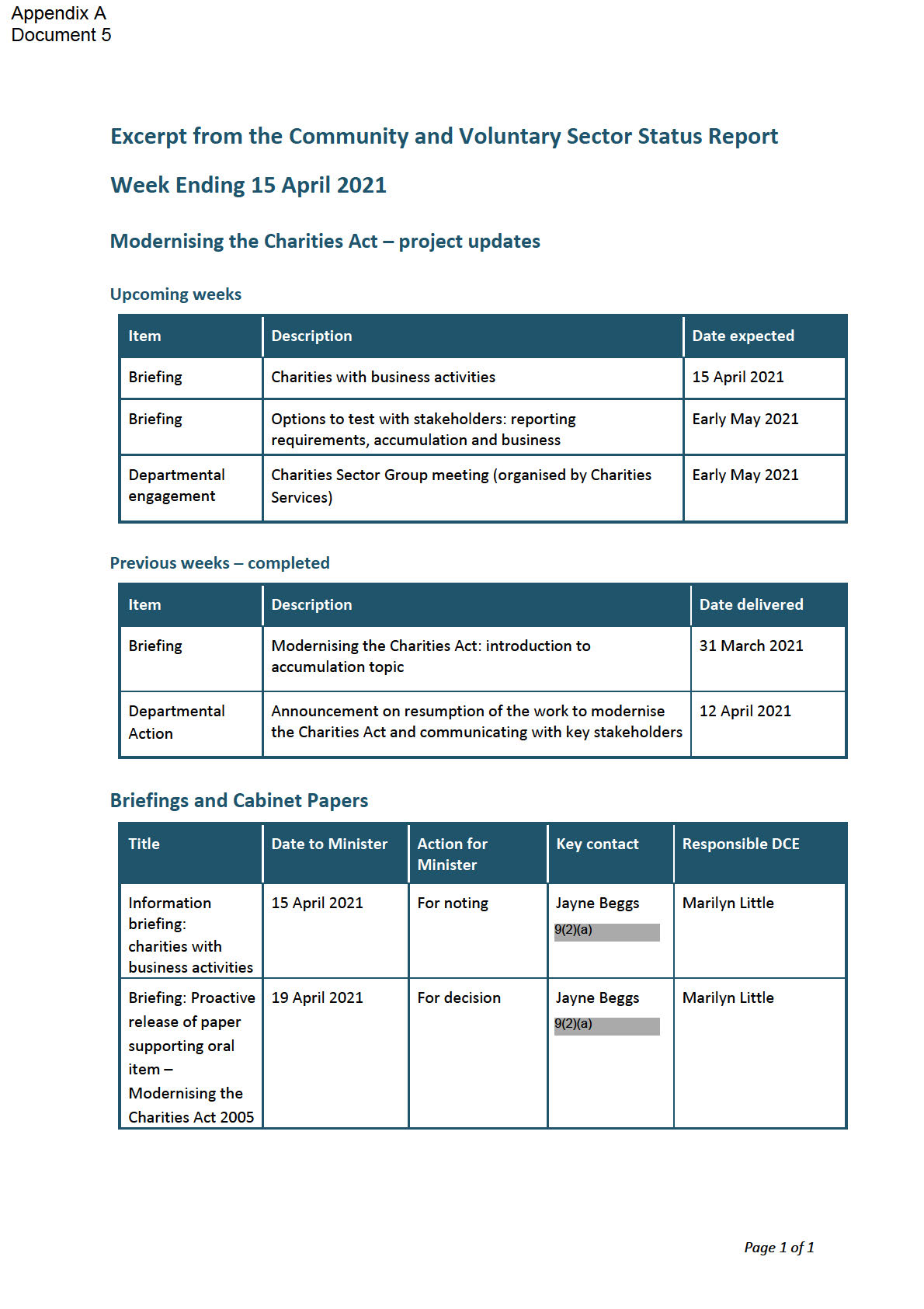 modernise the Charities Act 2005 (the Act). Attached is: