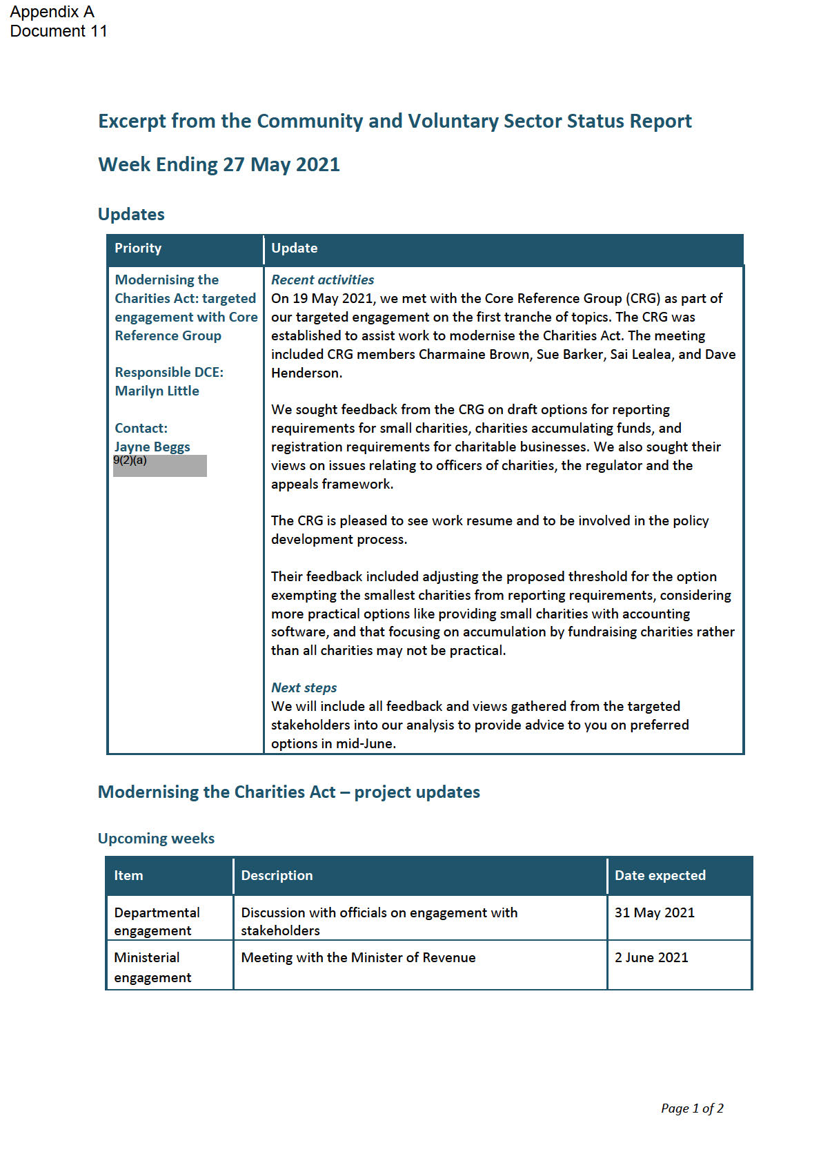 tax component of the work, we suggest you also update the Minister of Revenue on
