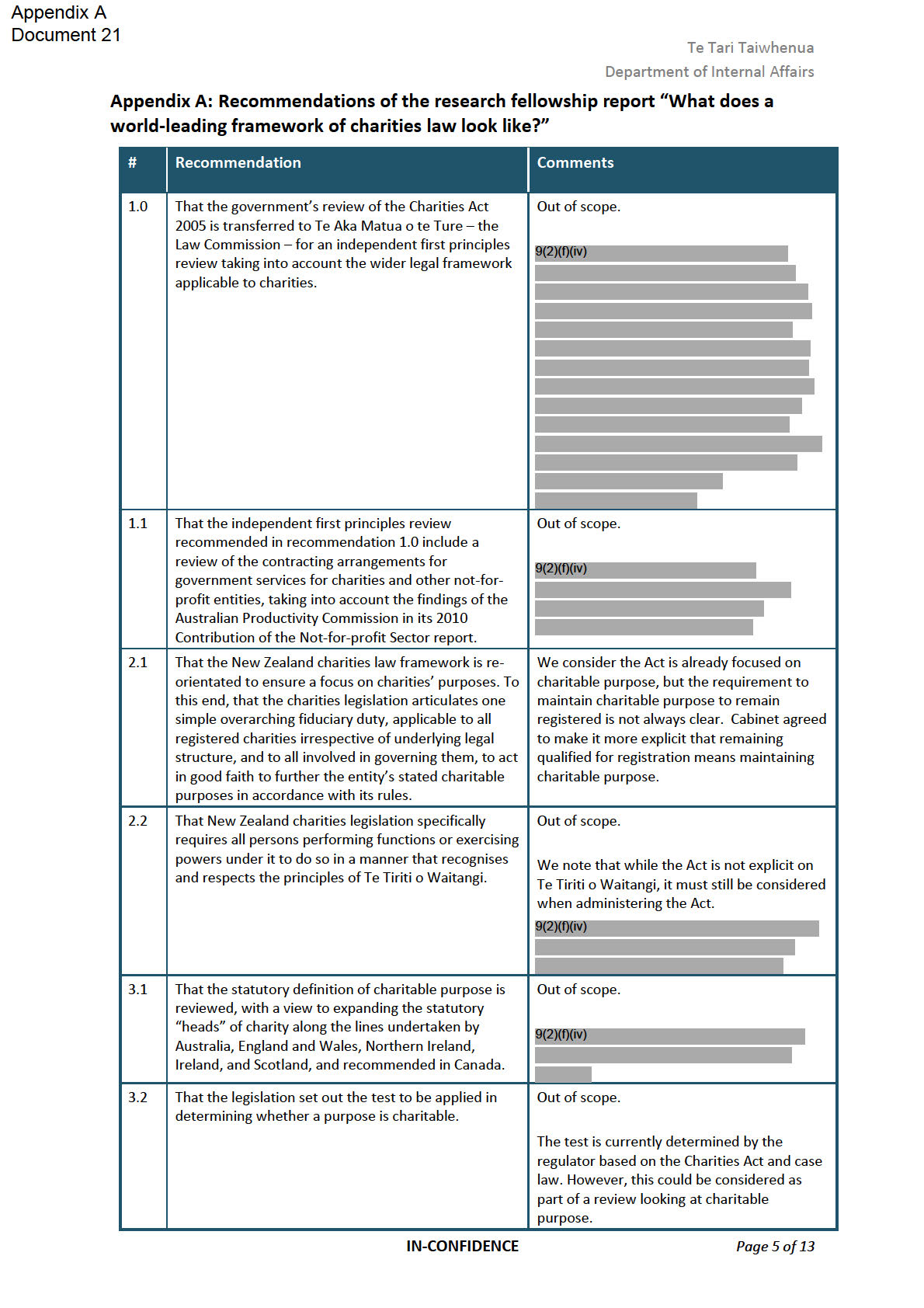 IN CONFIDENCE