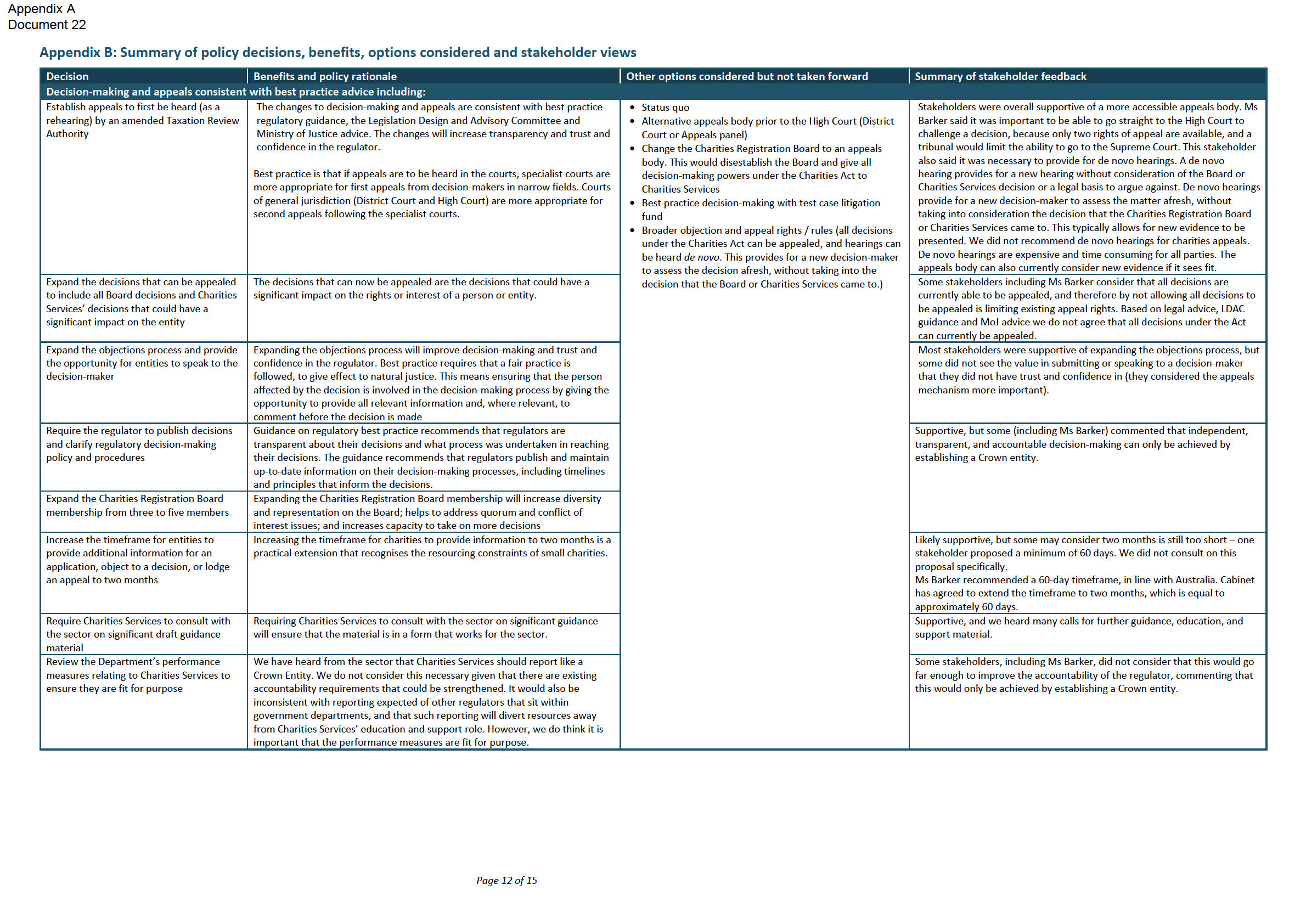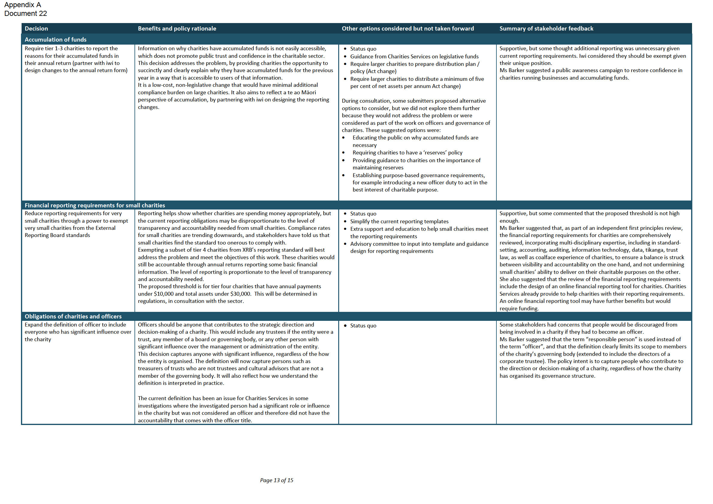 accessibility of appeals on decisions; and charities’ accumulation of funds and business
