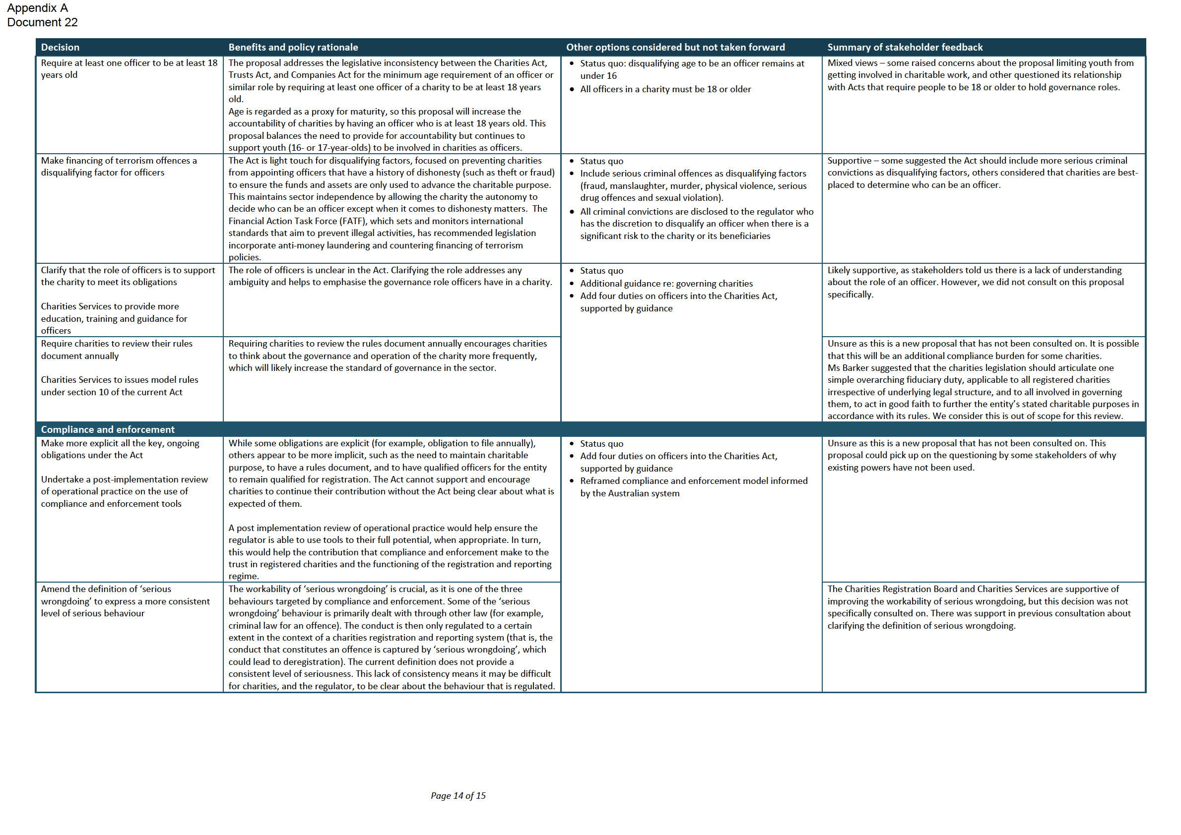 that you will seek policy decisions from Cabinet on reporting requirements for