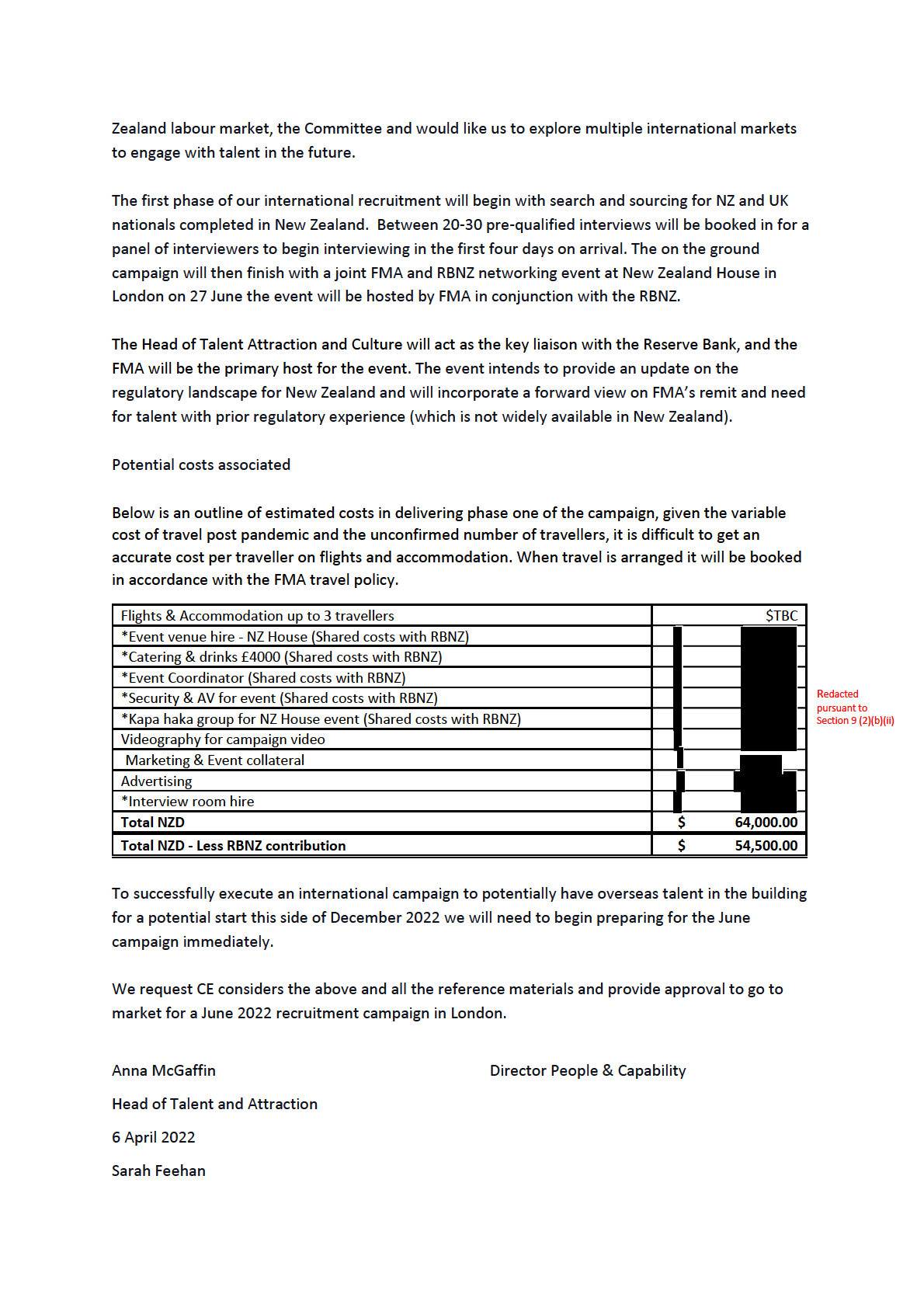 our New Zealand talent, with an international recruitment campaign, largely targeted to returning